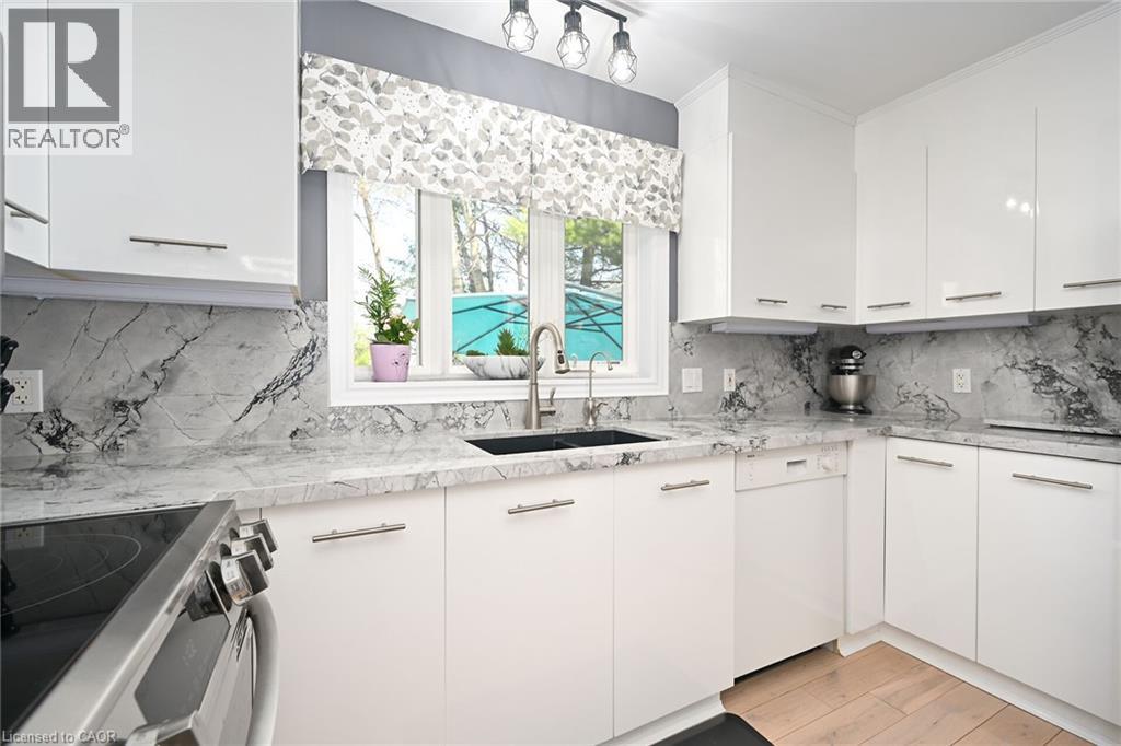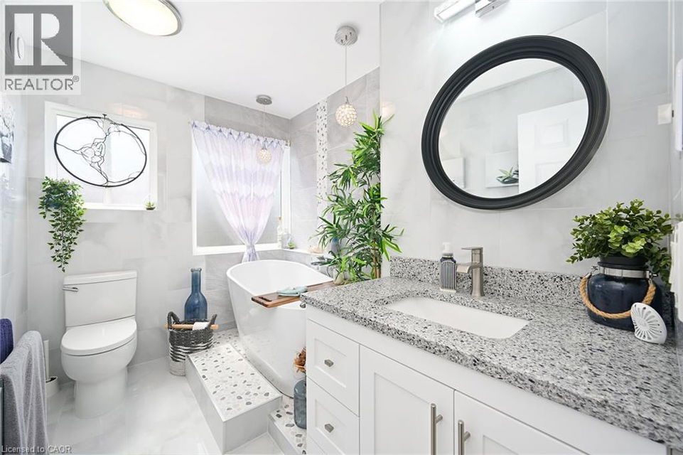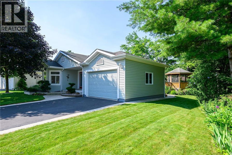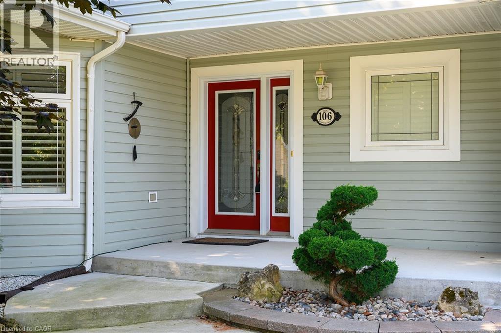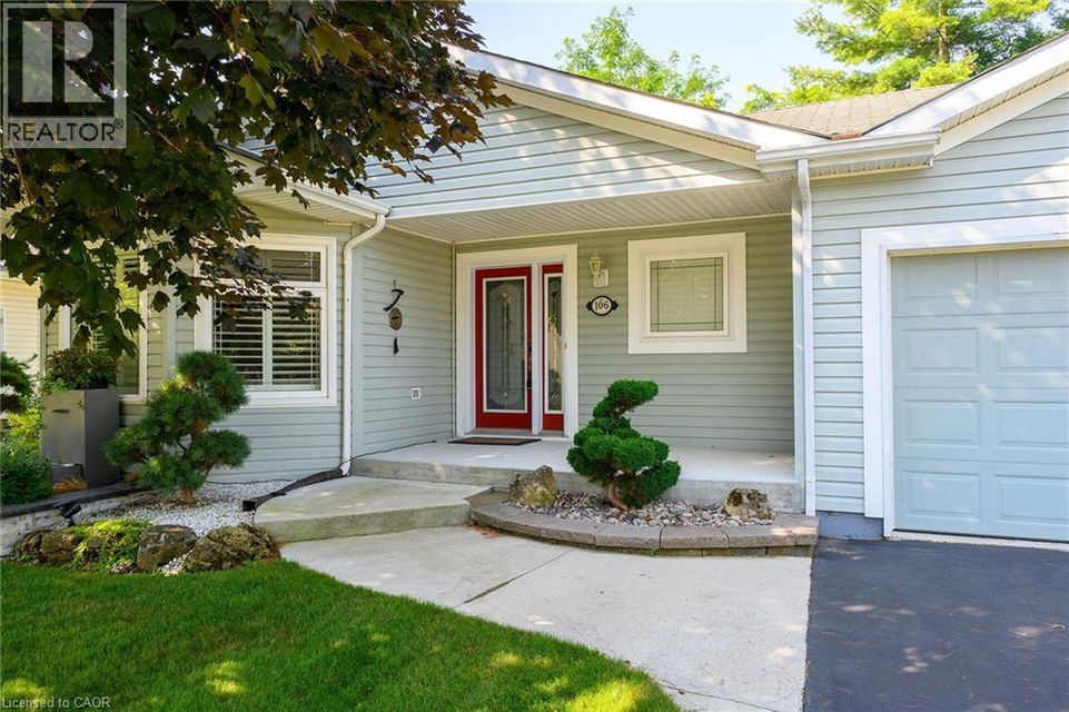 Welcome to 106 Bushmill, beautifully updated from top to bottom, located on the most coveted street in the desirable Antrim Glen Adult Community. Impeccably maintained home, offering ample main level living space and a professionally finished basement. This bright and open bungalow has gorgeous hand-scraped oak floors. The living and dining rooms flow seamlessly together, perfect for family gatherings. The updated kitchen is stunning with quartz counters, including a quartz waterfall island with seating, custom cabinetry, quality appliances and a view of your award winning gardens. The cozy family room overlooks the backyard and has a walk out to your very private composite deck with screened in gazebo and stone patio. The landscaping and gardens are breathtaking, the proud recipient of several awards! The curb appeal is 10+ with your charming front porch and cascading water-feature. An in-ground sprinkler system provides carefree maintenance. Back inside, the main level offers two spacious bedrooms, including a primary retreat with walk-in closet, and two full bathrooms including a dreamy soaker tub. The updated glass railing leads you to the finished basement, featuring new carpet, two large bedrooms, a recreation room, two piece bathroom (with space for a shower) and a utility room with lots of storage. The home has been freshly painted in neutral designer decor. Custom window coverings adorn the windows. Attached garage with access through the main floor laundry room as well as to the backyard. Antrim Glen is conveniently located between Waterdown, Cambridge and Guelph. Offering a vibrant lifestyle community with heated salt water pool, sauna, BBQ area, a lounge and kitchen for large gatherings, billiards, shuffleboard, library, craft room, horseshoes, private vegetable garden plots, and wooded walking trails. Move in ready, all you need to do is unpack, relax and enjoy! (id:17834)