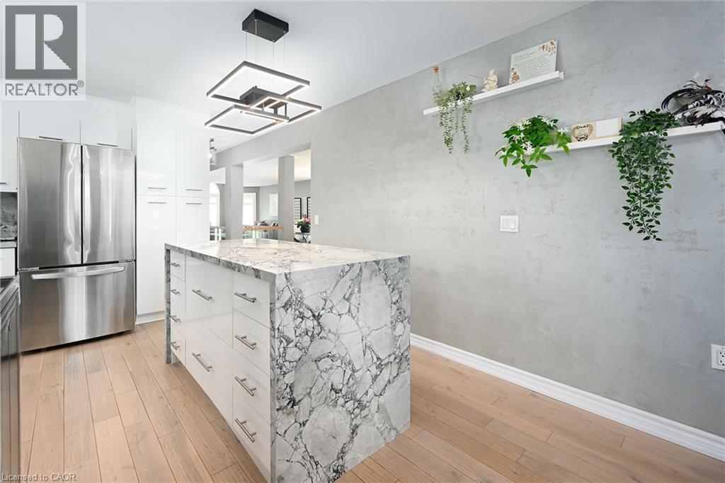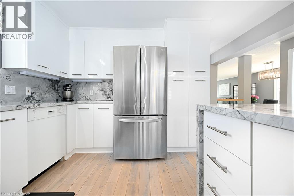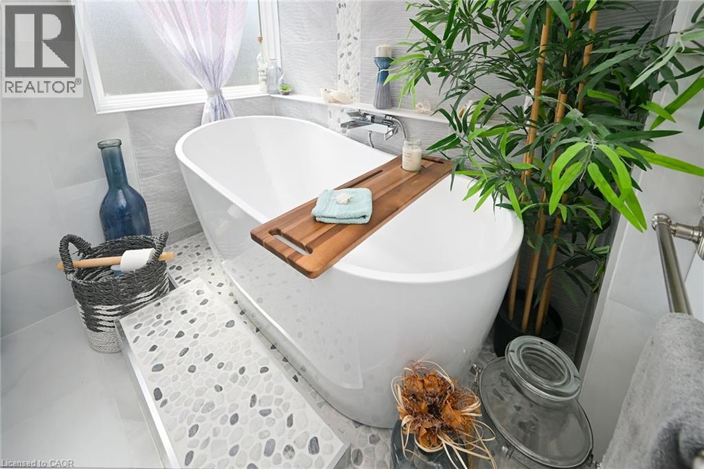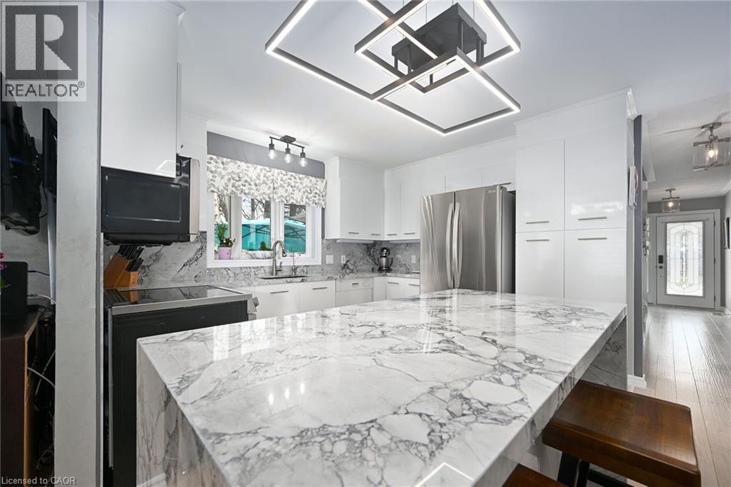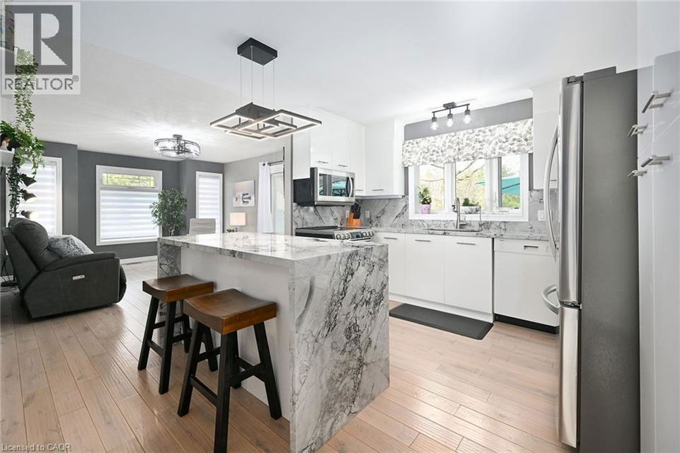 Welcome to 106 Bushmill, beautifully updated from top to bottom, located on the most coveted street in the desirable Antrim Glen Adult Community. Impeccably maintained home, offering ample main level living space and a professionally finished basement. This bright and open bungalow has gorgeous hand-scraped oak floors. The living and dining rooms flow seamlessly together, perfect for family gatherings. The updated kitchen is stunning with quartz counters, including a quartz waterfall island with seating, custom cabinetry, quality appliances and a view of your award winning gardens. The cozy family room overlooks the backyard and has a walk out to your very private composite deck with screened in gazebo and stone patio. The landscaping and gardens are breathtaking, the proud recipient of several awards! The curb appeal is 10+ with your charming front porch and cascading water-feature. An in-ground sprinkler system provides carefree maintenance. Back inside, the main level offers two spacious bedrooms, including a primary retreat with walk-in closet, and two full bathrooms including a dreamy soaker tub. The updated glass railing leads you to the finished basement, featuring new carpet, two large bedrooms, a recreation room, two piece bathroom (with space for a shower) and a utility room with lots of storage. The home has been freshly painted in neutral designer decor. Custom window coverings adorn the windows. Attached garage with access through the main floor laundry room as well as to the backyard. Antrim Glen is conveniently located between Waterdown, Cambridge and Guelph. Offering a vibrant lifestyle community with heated salt water pool, sauna, BBQ area, a lounge and kitchen for large gatherings, billiards, shuffleboard, library, craft room, horseshoes, private vegetable garden plots, and wooded walking trails. Move in ready, all you need to do is unpack, relax and enjoy! (id:17834)