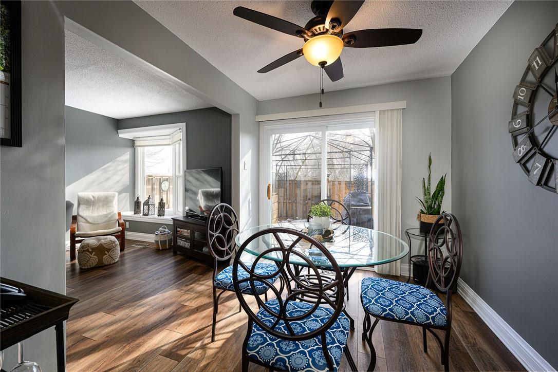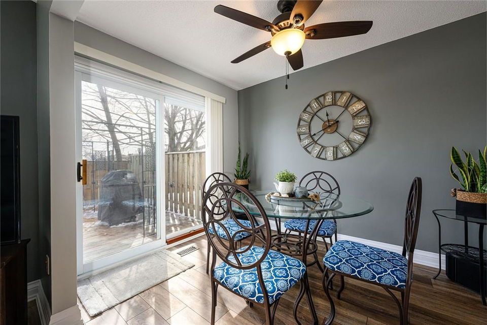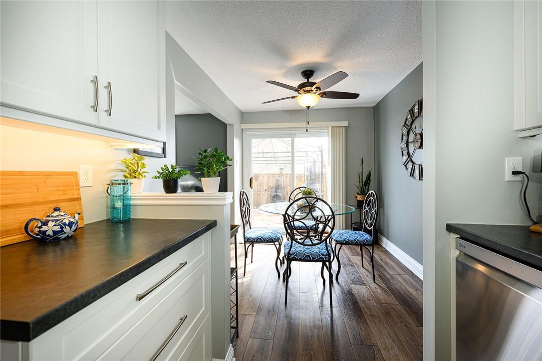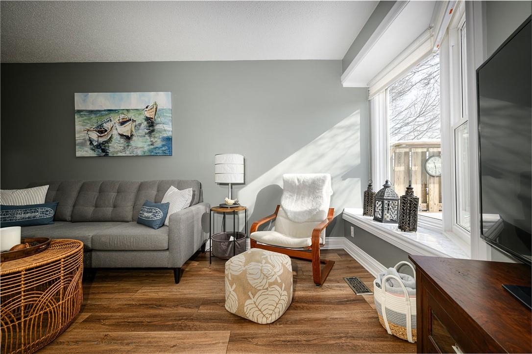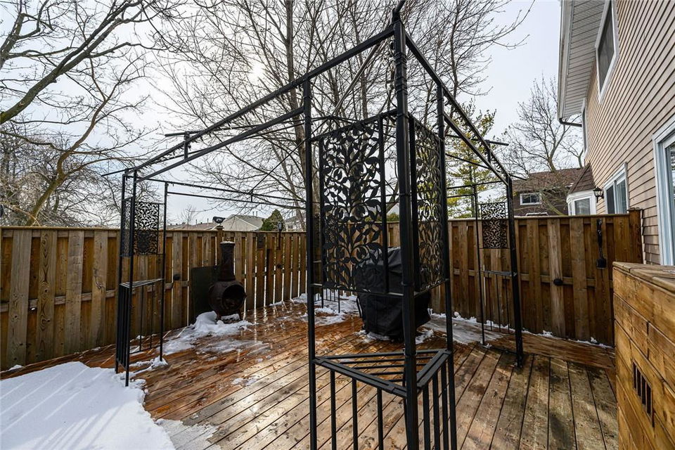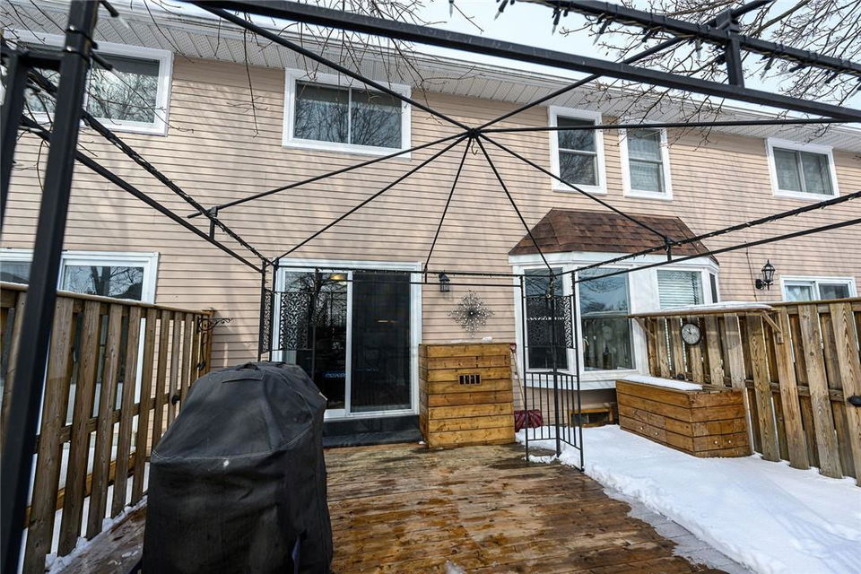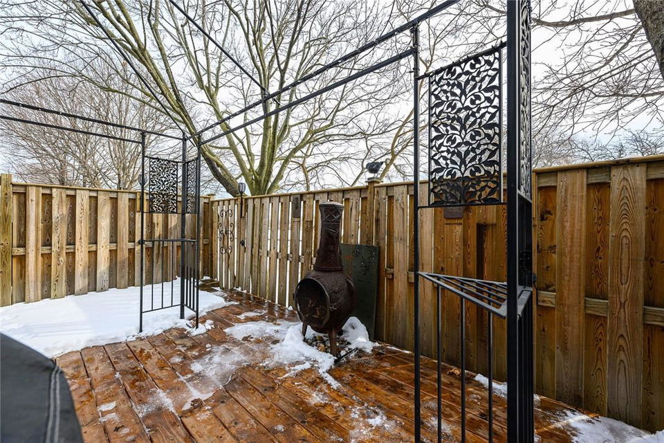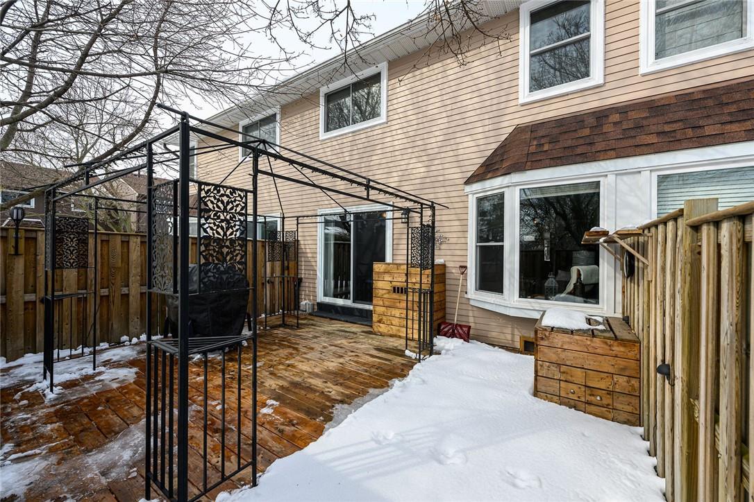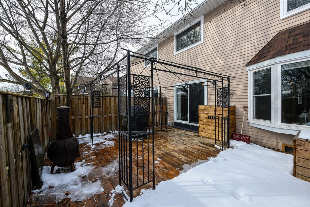 Welcome Home!! Stunning 3 Bedroom Townhome Backing onto a Park in Most Desirable Tyandaga. Gorgeous white kitchen with tile backsplash and premium stainless steel appliances, fully updated in 2020. New luxury vinyl plank flooring in the spacious living and dining rooms. Loads of natural light from the bay window which overlooks the beautiful private yard surrounded by mature trees. The large outdoor deck is fully fenced with gate access, has a covered gazebo and plenty of room for a bbq and patio set. Makes for the perfect spot to relax or entertain. Upstairs features three generous sized bedrooms and an updated 4 pc bathroom. Finished basement offers ample additional living space. Updated lighting throughout. Neural designer decor. New smoke detectors. Tons of storage space. Attached garage. Well maintained family friendly complex with lots of visitor parking. Windows and doors updated in 2020, roof in 2019. Walk to shops, restaurants and parks. 2 min drive to the Tyandaga Golf Course. Close proximity to schools, the QEW, 403, 407, public transit and GO Train. Move in ready. All you need to do is unpack! (id:17834)