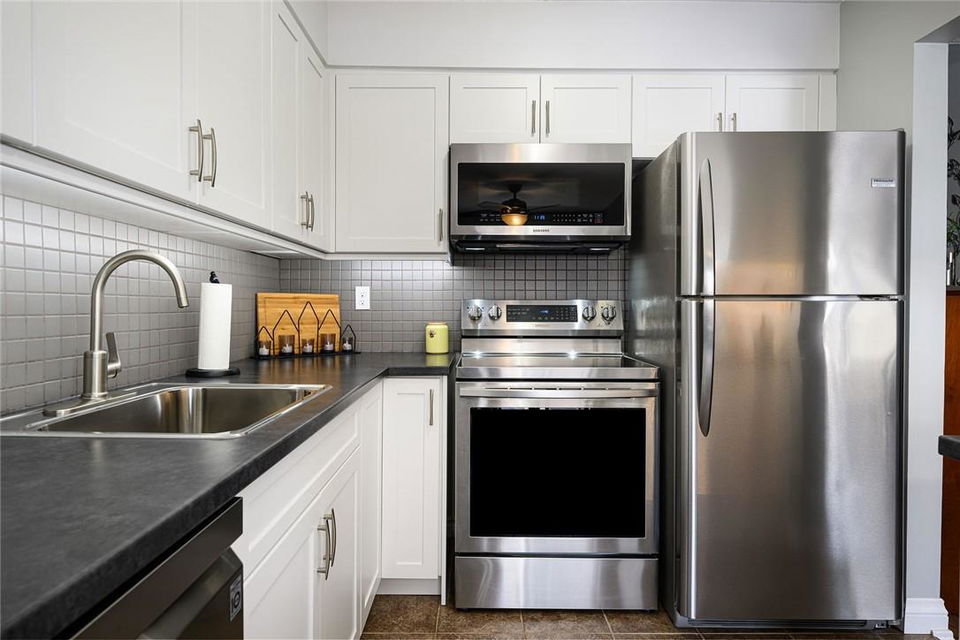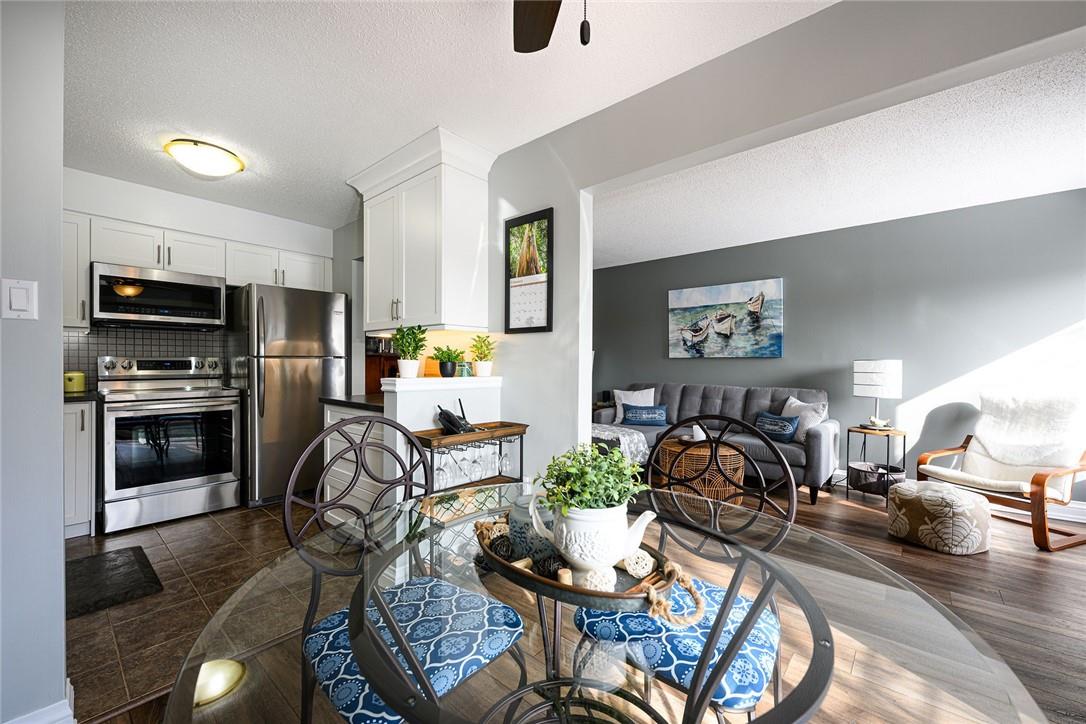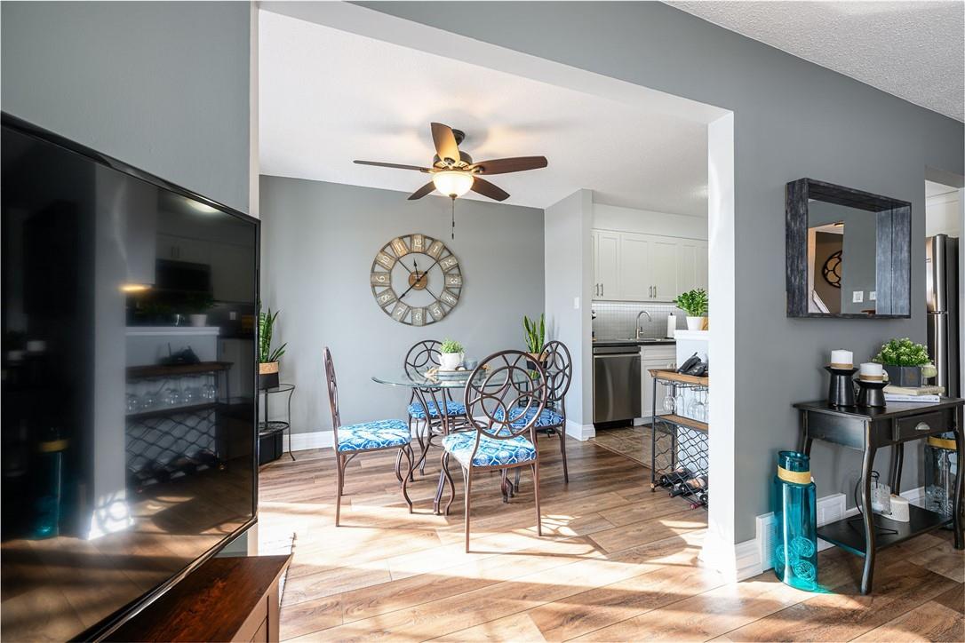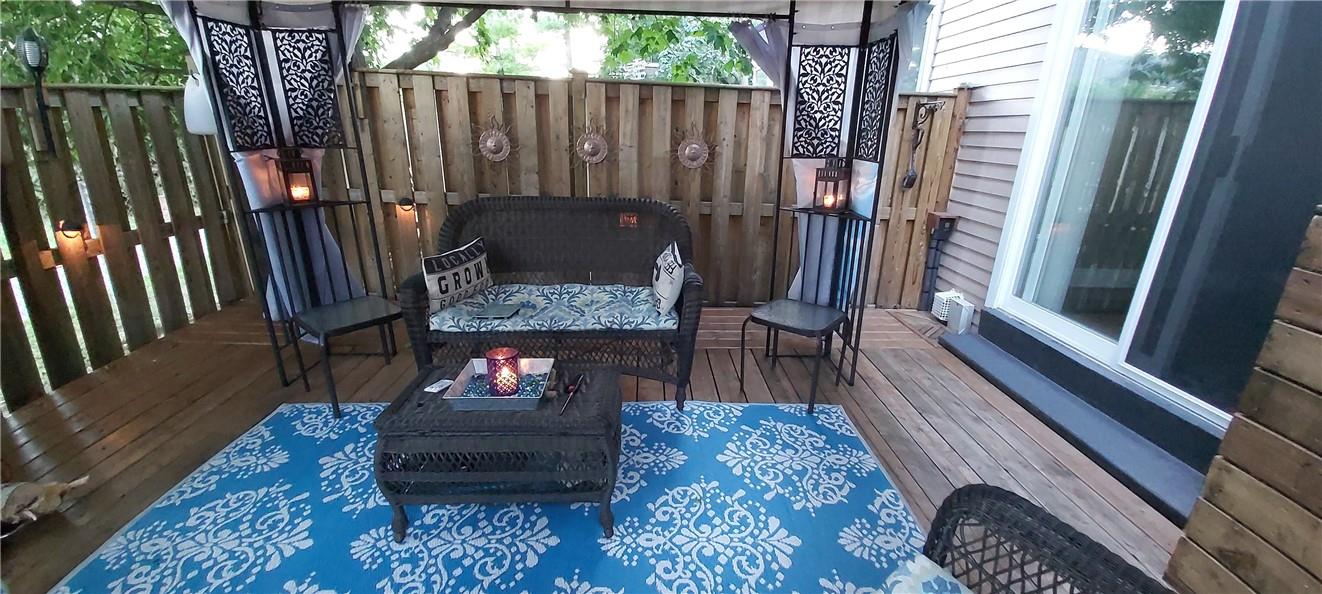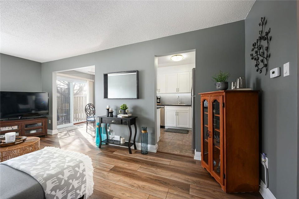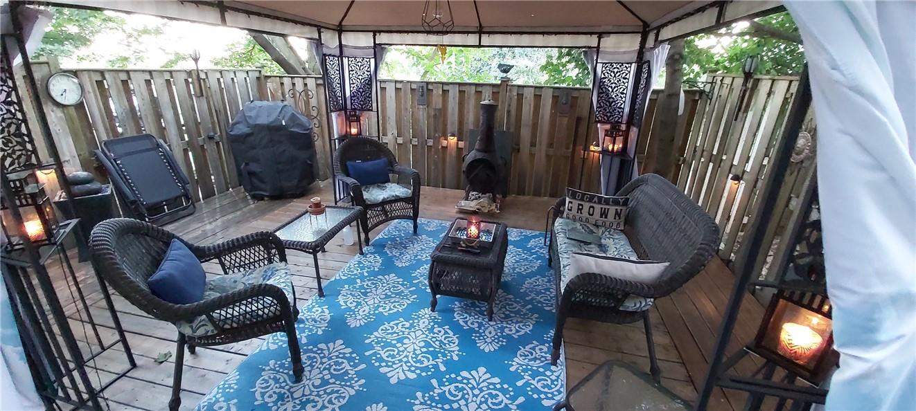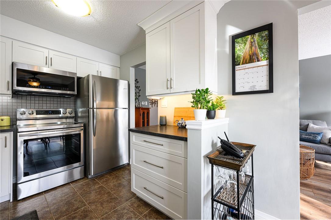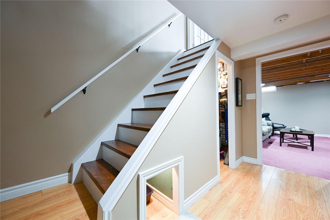 Welcome Home!! Stunning 3 Bedroom Townhome Backing onto a Park in Most Desirable Tyandaga. Gorgeous white kitchen with tile backsplash and premium stainless steel appliances, fully updated in 2020. New luxury vinyl plank flooring in the spacious living and dining rooms. Loads of natural light from the bay window which overlooks the beautiful private yard surrounded by mature trees. The large outdoor deck is fully fenced with gate access, has a covered gazebo and plenty of room for a bbq and patio set. Makes for the perfect spot to relax or entertain. Upstairs features three generous sized bedrooms and an updated 4 pc bathroom. Finished basement offers ample additional living space. Updated lighting throughout. Neural designer decor. New smoke detectors. Tons of storage space. Attached garage. Well maintained family friendly complex with lots of visitor parking. Windows and doors updated in 2020, roof in 2019. Walk to shops, restaurants and parks. 2 min drive to the Tyandaga Golf Course. Close proximity to schools, the QEW, 403, 407, public transit and GO Train. Move in ready. All you need to do is unpack! (id:17834)