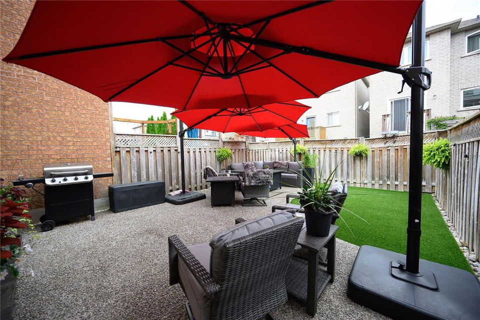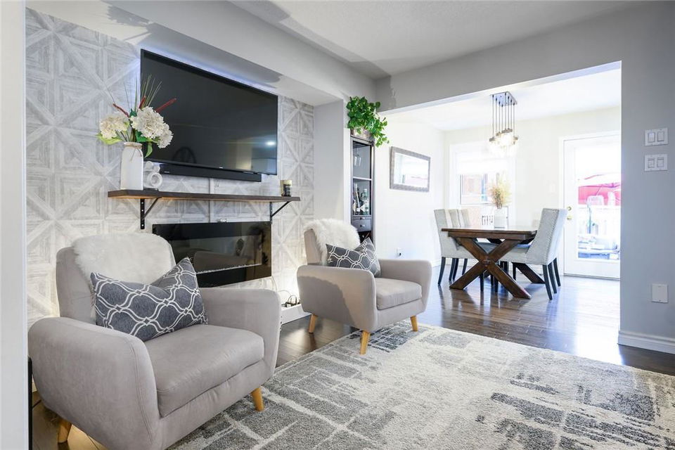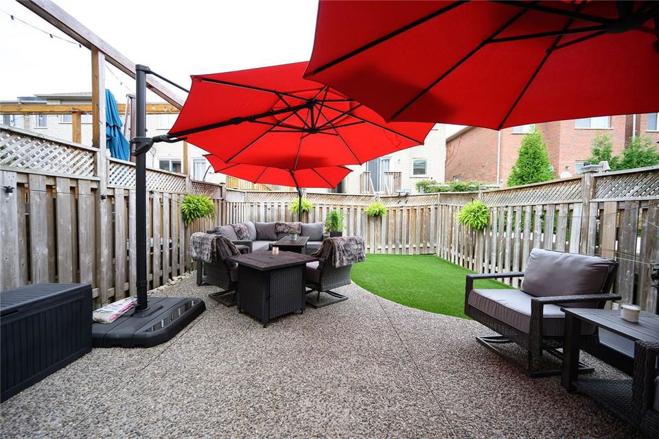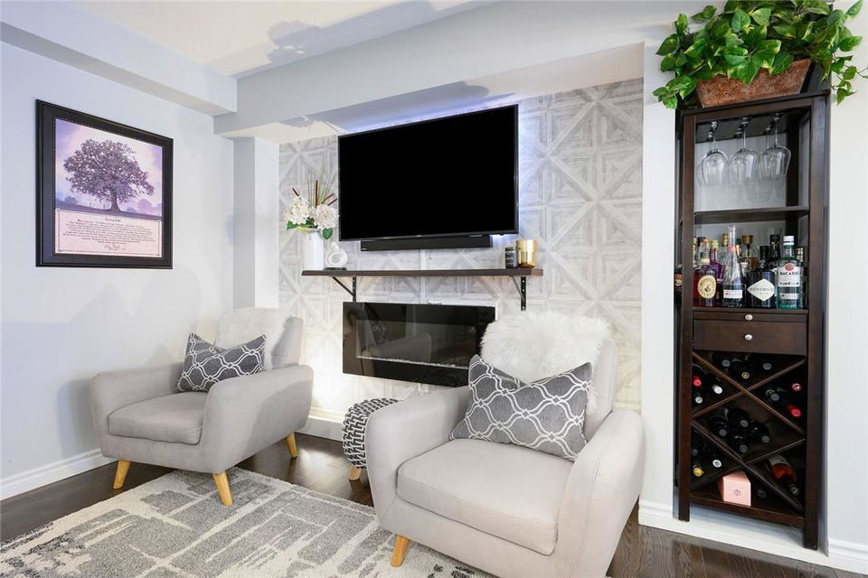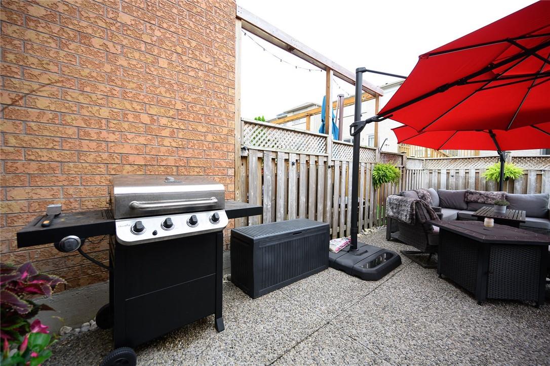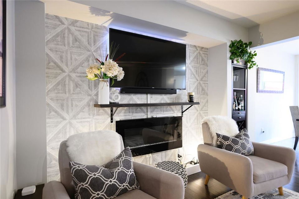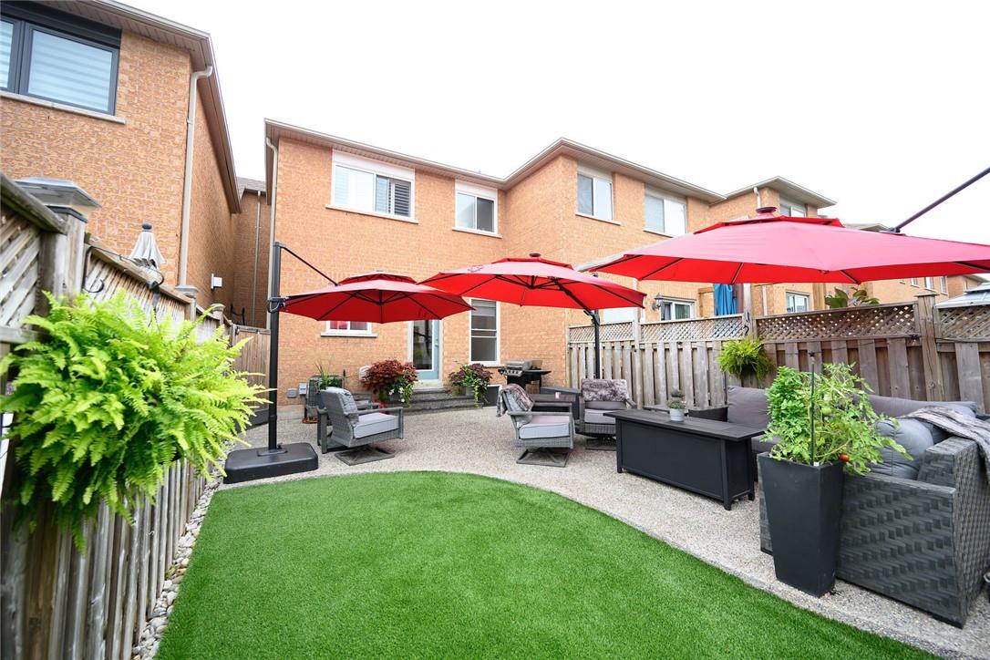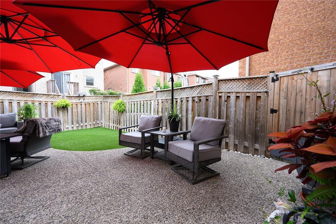 Say Yes to This Address!! Absolutely Stunning Freehold Townhome in Most Desirable Appleby Neighbourhood. Updated from top to bottom. Gorgeous eat-in kitchen with pristine white cabinetry, quartz counters, tile backsplash and stainless steel appliances. Spacious living room with hardwood flooring and linear electric fireplace. Upstairs features a huge primary retreat with walk-in closet and beautifully updated 4 pc bathroom. Two additional generously sized bedrooms and 4 pc bath complete the upper level. Professionally finished basement offers a rec room, office nook, large bedroom with upgraded egress window and 3 piece ensuite bathroom. Lower level laundry room and lots of storage space. New backyard oasis is low maintenance and perfect for relaxing or entertaining with exposed aggregate patio and high grade turf. Attached garage with inside access and mud room area. Park two cars in the newly widened driveway. Brand new windows throughout (2022). Updates within the last 5 years include kitchen and appliances, roof shingles, hardwood flooring, backyard, basement and bathroom. Walk to schools, parks, shops, restaurants and public transit. Close proximity to GO Train, QEW, 403 and 407. Nothing to do but unpack and enjoy! (id:17834)