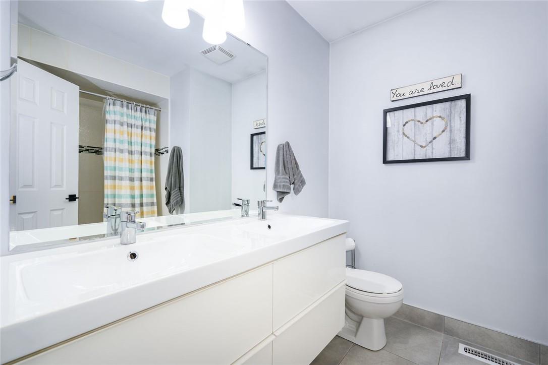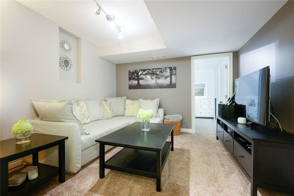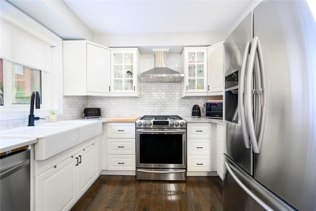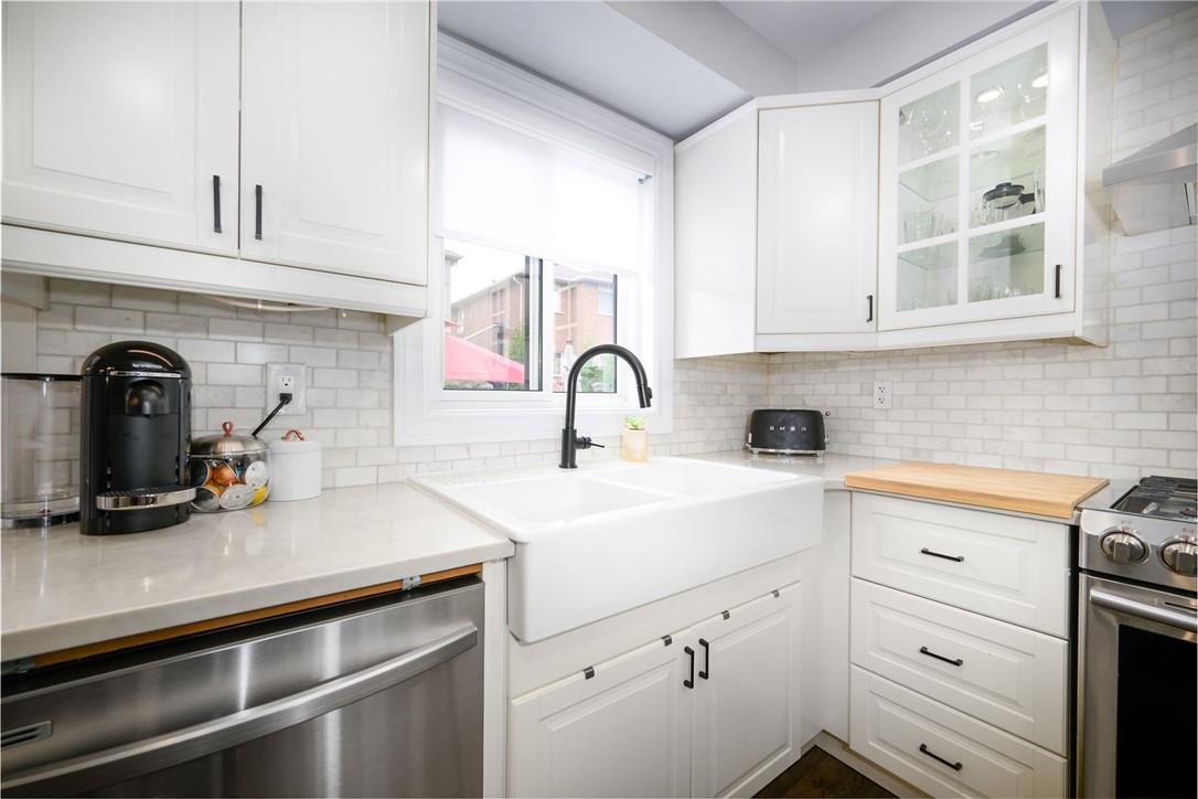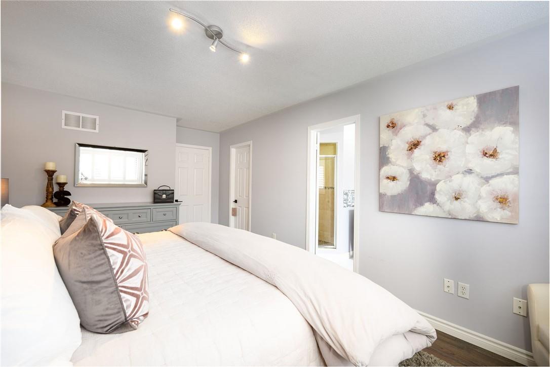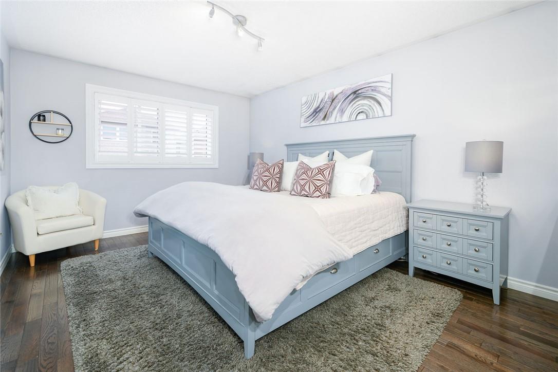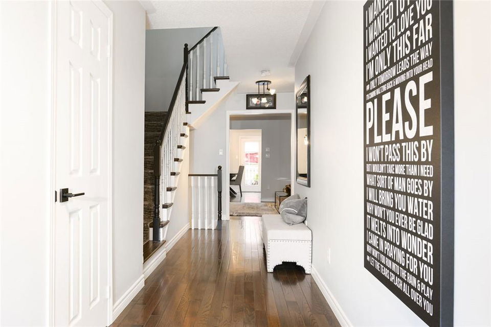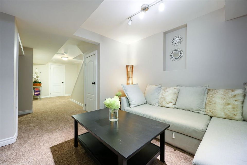 Say Yes to This Address!! Absolutely Stunning Freehold Townhome in Most Desirable Appleby Neighbourhood. Updated from top to bottom. Gorgeous eat-in kitchen with pristine white cabinetry, quartz counters, tile backsplash and stainless steel appliances. Spacious living room with hardwood flooring and linear electric fireplace. Upstairs features a huge primary retreat with walk-in closet and beautifully updated 4 pc bathroom. Two additional generously sized bedrooms and 4 pc bath complete the upper level. Professionally finished basement offers a rec room, office nook, large bedroom with upgraded egress window and 3 piece ensuite bathroom. Lower level laundry room and lots of storage space. New backyard oasis is low maintenance and perfect for relaxing or entertaining with exposed aggregate patio and high grade turf. Attached garage with inside access and mud room area. Park two cars in the newly widened driveway. Brand new windows throughout (2022). Updates within the last 5 years include kitchen and appliances, roof shingles, hardwood flooring, backyard, basement and bathroom. Walk to schools, parks, shops, restaurants and public transit. Close proximity to GO Train, QEW, 403 and 407. Nothing to do but unpack and enjoy! (id:17834)