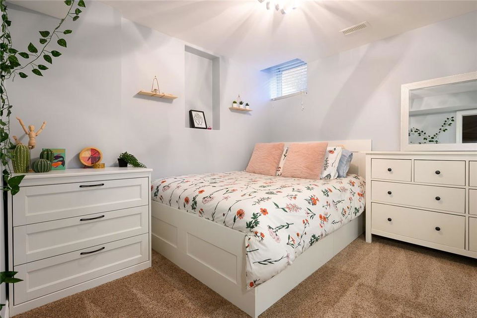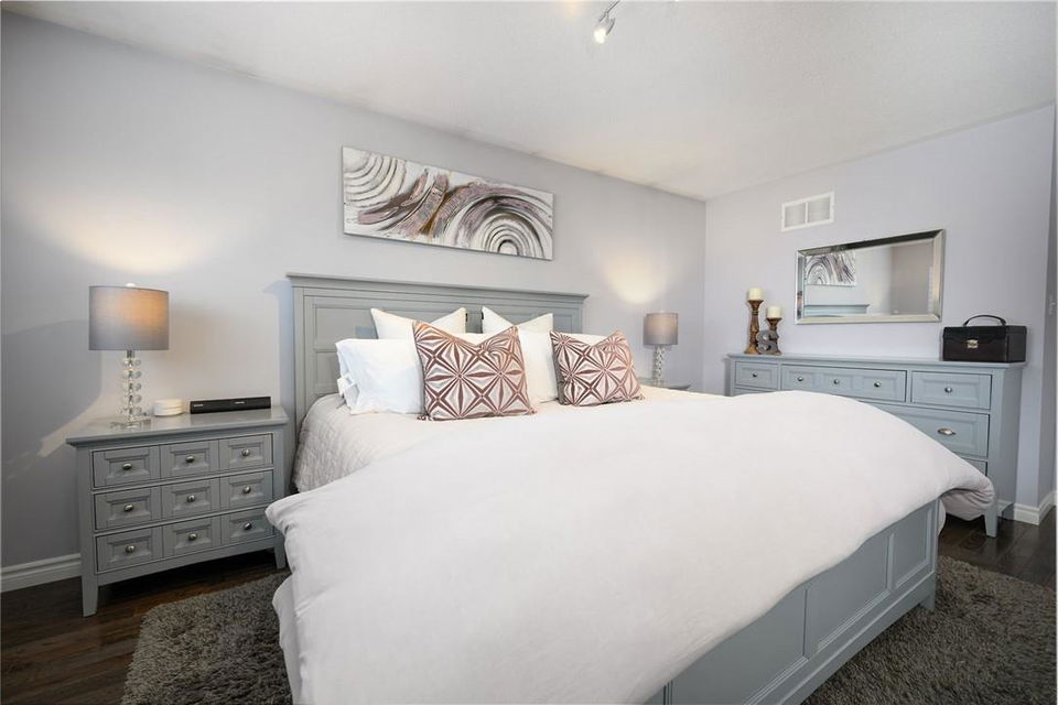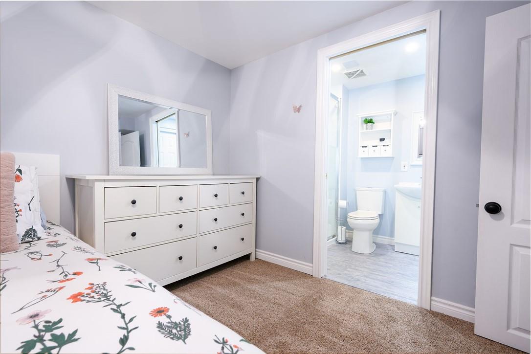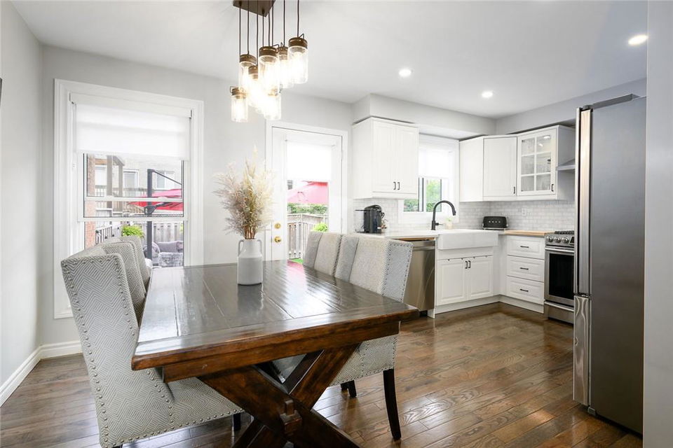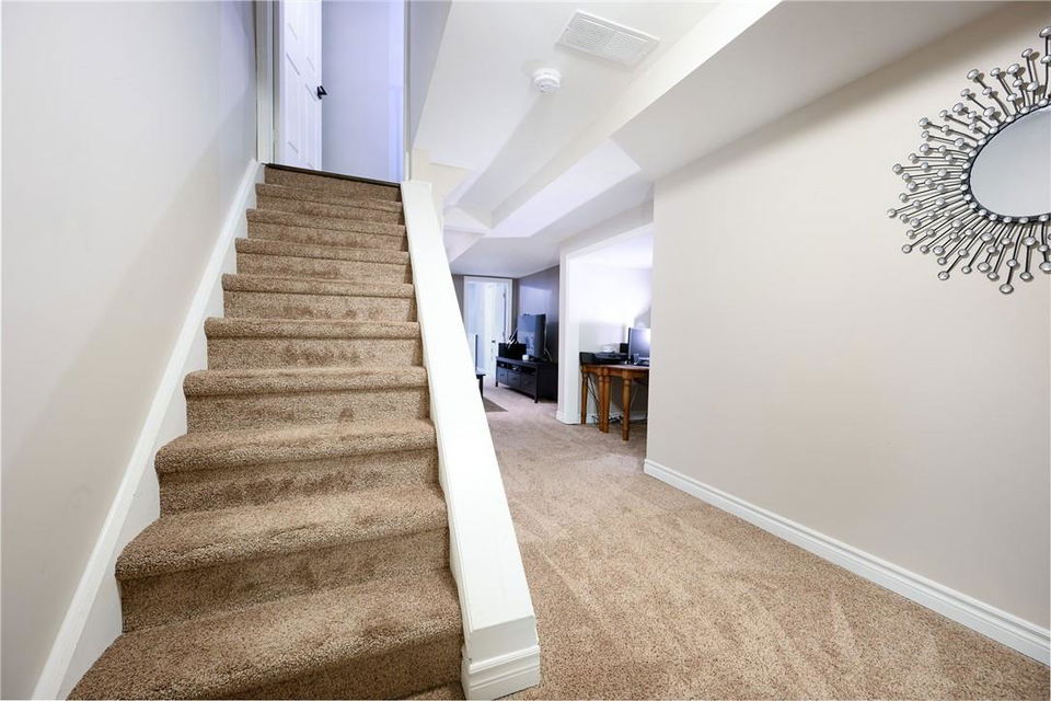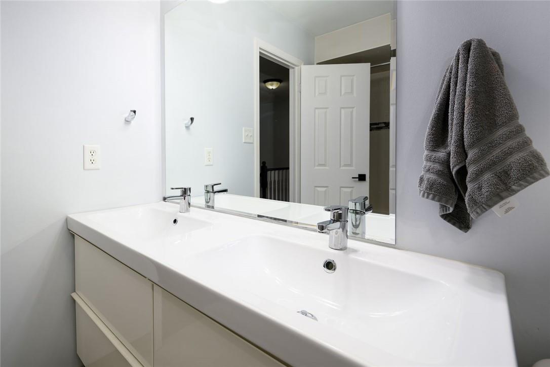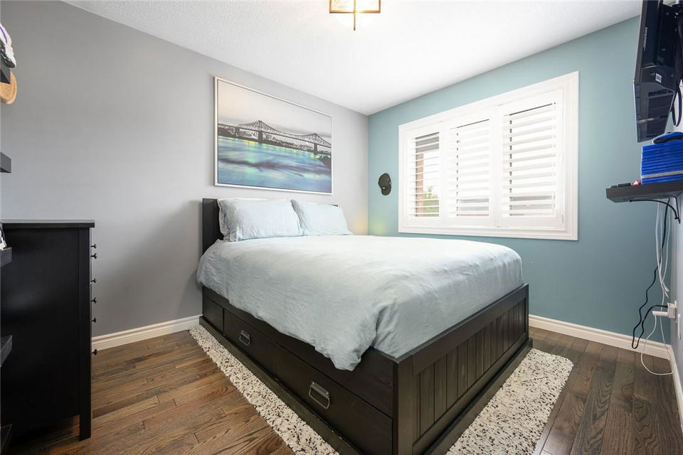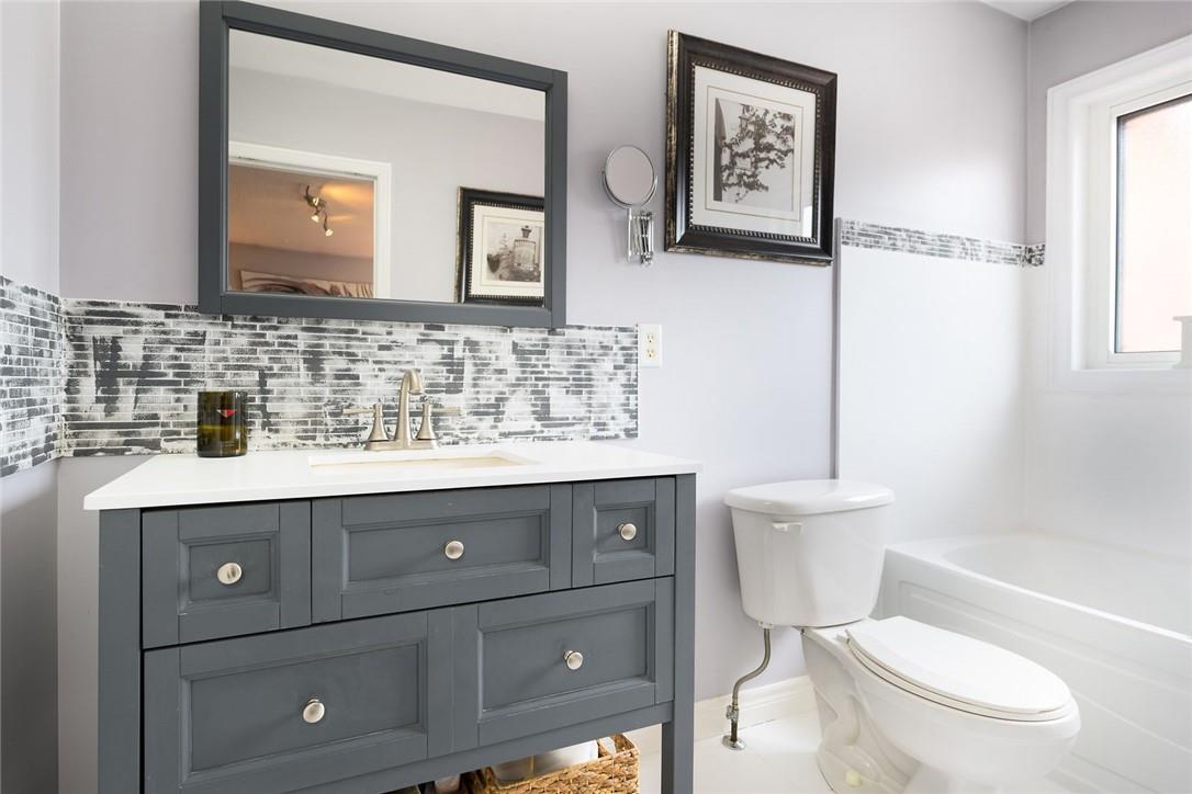 Say Yes to This Address!! Absolutely Stunning Freehold Townhome in Most Desirable Appleby Neighbourhood. Updated from top to bottom. Gorgeous eat-in kitchen with pristine white cabinetry, quartz counters, tile backsplash and stainless steel appliances. Spacious living room with hardwood flooring and linear electric fireplace. Upstairs features a huge primary retreat with walk-in closet and beautifully updated 4 pc bathroom. Two additional generously sized bedrooms and 4 pc bath complete the upper level. Professionally finished basement offers a rec room, office nook, large bedroom with upgraded egress window and 3 piece ensuite bathroom. Lower level laundry room and lots of storage space. New backyard oasis is low maintenance and perfect for relaxing or entertaining with exposed aggregate patio and high grade turf. Attached garage with inside access and mud room area. Park two cars in the newly widened driveway. Brand new windows throughout (2022). Updates within the last 5 years include kitchen and appliances, roof shingles, hardwood flooring, backyard, basement and bathroom. Walk to schools, parks, shops, restaurants and public transit. Close proximity to GO Train, QEW, 403 and 407. Nothing to do but unpack and enjoy! (id:17834)