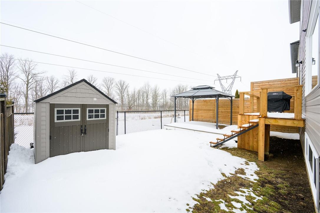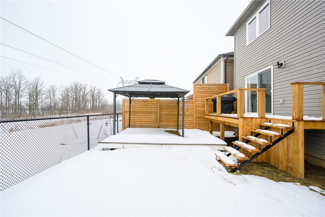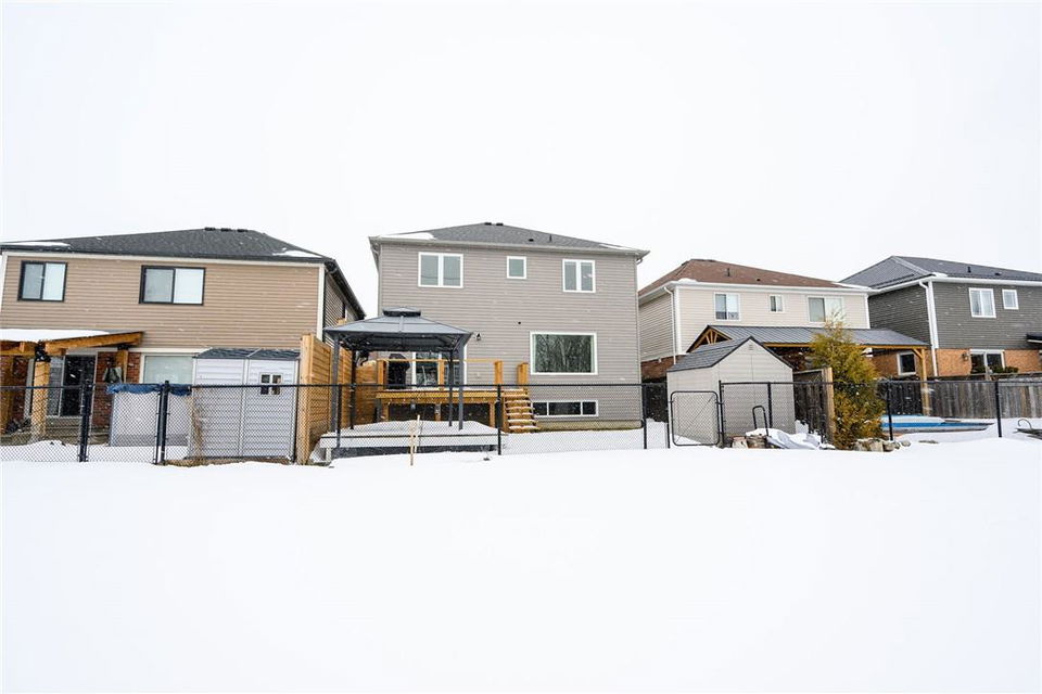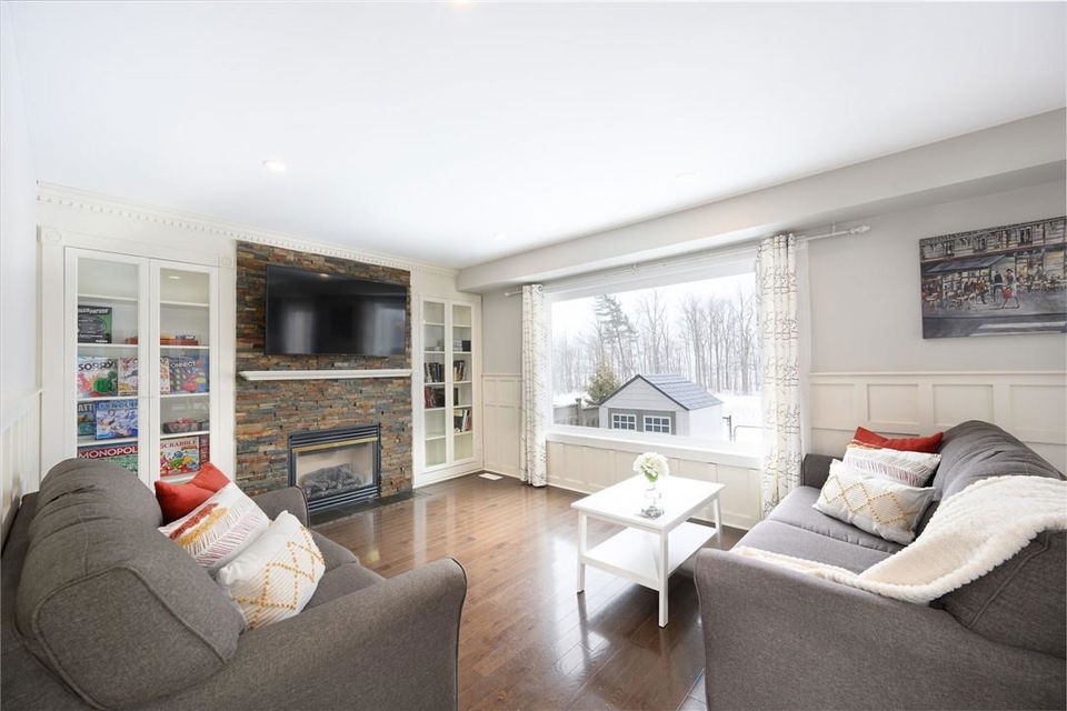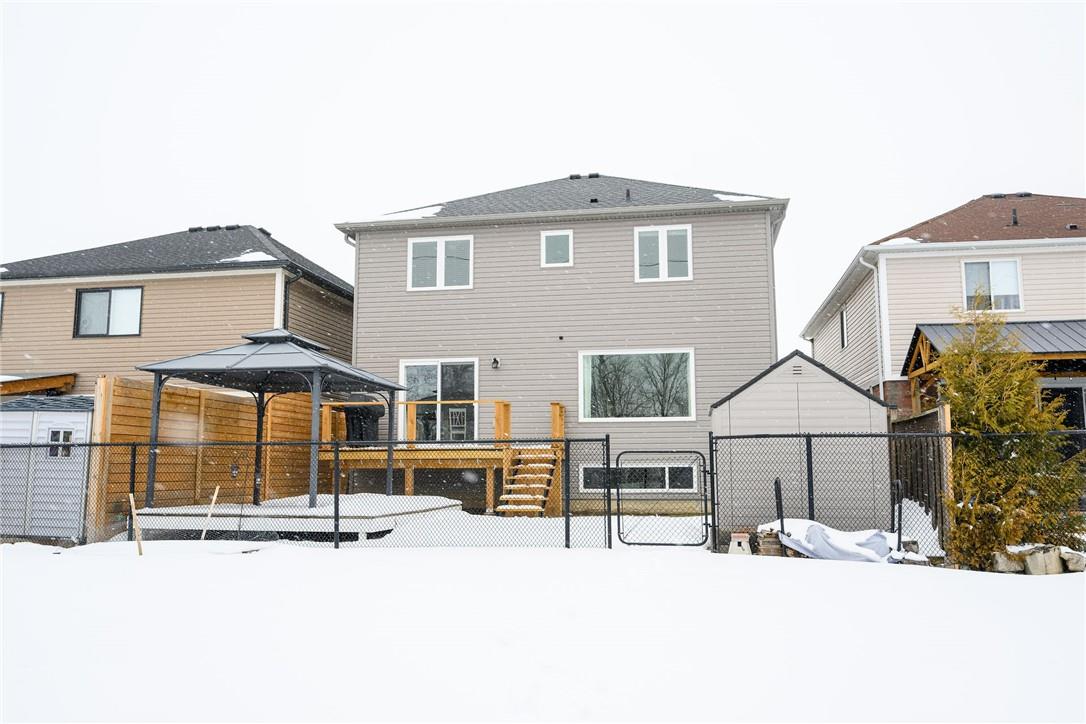 Welcome to your stunning 2-story abode, boasting 5 spacious bedrooms & 3.5 baths in a peaceful location that backs onto greenspace. The exterior is attention-grabbing with new board & batten vinyl siding, new windows, new roof & a double garage. Step inside the grand entry way with slate floor, built-in storage & bench seating. The open concept kitchen is a chef’s dream with quartz counters, ss appliances, plenty of cabinets & spacious eat-in area. The living room features a gas f/p, lots of natural light from the oversized windows & a view of the picturesque greenspace. Main floor den could function as a dining room. In-between the main & upper level you’ll find the great room with built-in entertainment centre, electric fireplace & wall to wall windows. Upstairs, you’ll discover a spacious primary retreat with an ensuite & walk-in closet. Plus 3 more sizeable bedrooms & laundry. The finished basement offers a large family room, bedroom with egress window & full bath. This could be set up as an in-law suite with laundry hook up, plumbing for a kitchen & separate entrance through the garage all in place. The private fenced yard provides ample space and gate access to the greenspace with fire pit. The new deck is perfect for enjoying the serene surroundings. Located in a family-friendly neighbourhood. Walk to schools. Close to all amenities. Updates within 2 yrs include windows, roof, siding, AC, deck, painting++. Don’t miss your chance to make this beautiful house your haven! (id:17834)