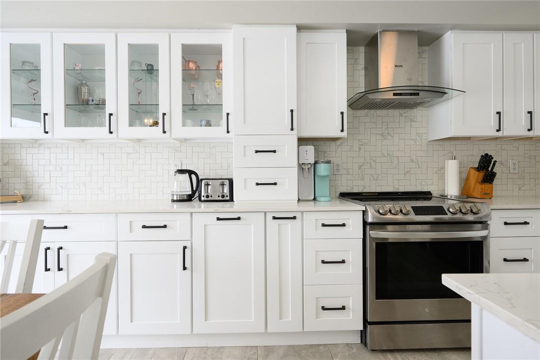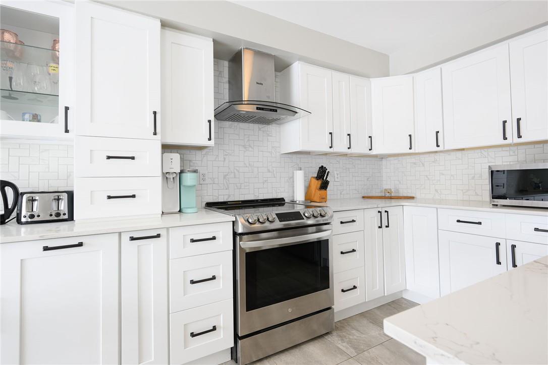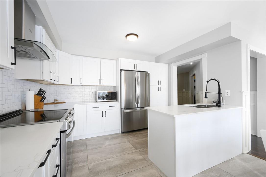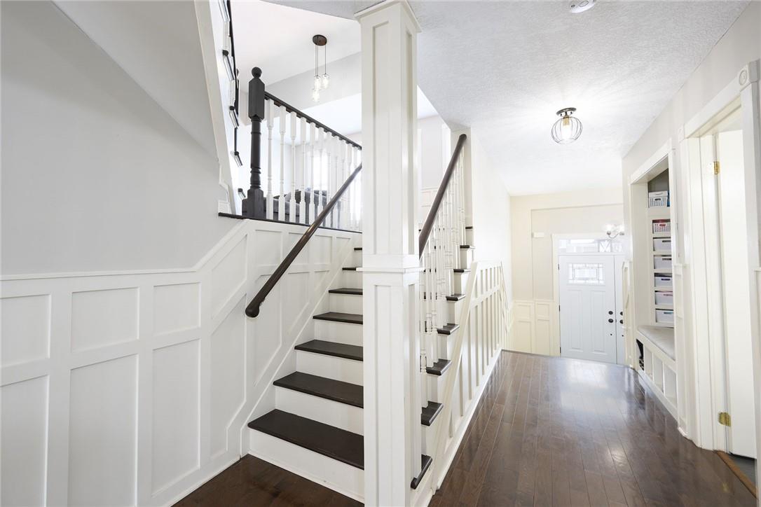 Welcome to your stunning 2-story abode, boasting 5 spacious bedrooms & 3.5 baths in a peaceful location that backs onto greenspace. The exterior is attention-grabbing with new board & batten vinyl siding, new windows, new roof & a double garage. Step inside the grand entry way with slate floor, built-in storage & bench seating. The open concept kitchen is a chef’s dream with quartz counters, ss appliances, plenty of cabinets & spacious eat-in area. The living room features a gas f/p, lots of natural light from the oversized windows & a view of the picturesque greenspace. Main floor den could function as a dining room. In-between the main & upper level you’ll find the great room with built-in entertainment centre, electric fireplace & wall to wall windows. Upstairs, you’ll discover a spacious primary retreat with an ensuite & walk-in closet. Plus 3 more sizeable bedrooms & laundry. The finished basement offers a large family room, bedroom with egress window & full bath. This could be set up as an in-law suite with laundry hook up, plumbing for a kitchen & separate entrance through the garage all in place. The private fenced yard provides ample space and gate access to the greenspace with fire pit. The new deck is perfect for enjoying the serene surroundings. Located in a family-friendly neighbourhood. Walk to schools. Close to all amenities. Updates within 2 yrs include windows, roof, siding, AC, deck, painting++. Don’t miss your chance to make this beautiful house your haven! (id:17834)