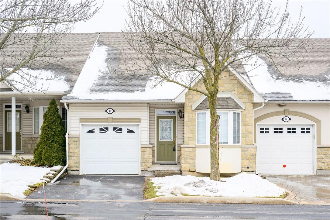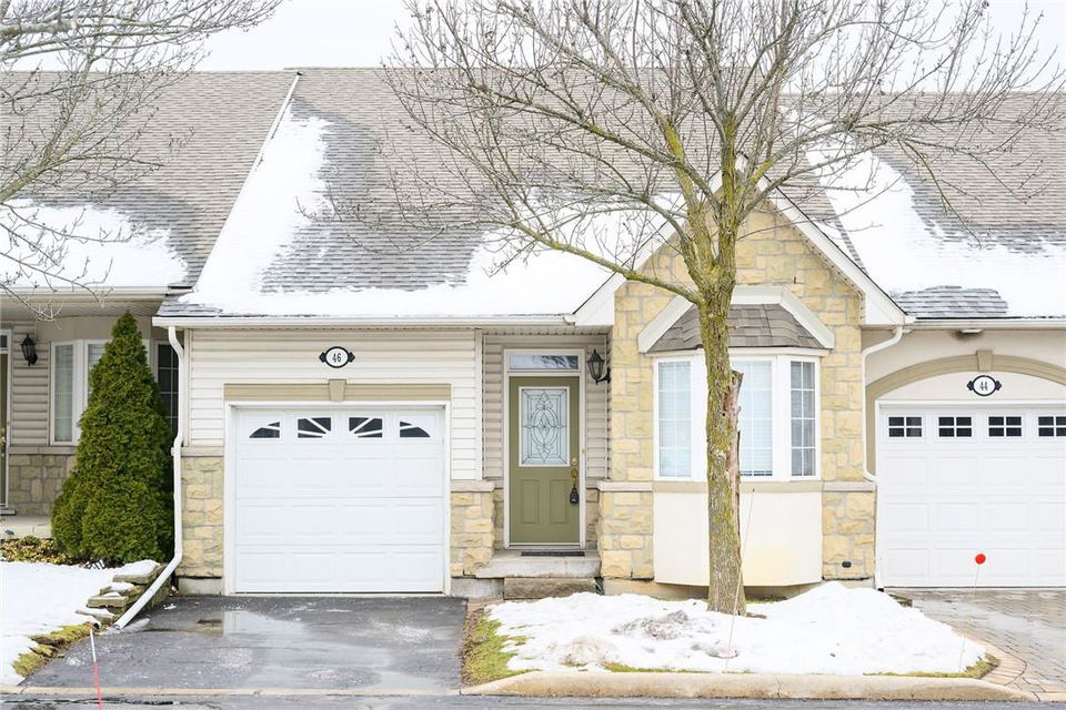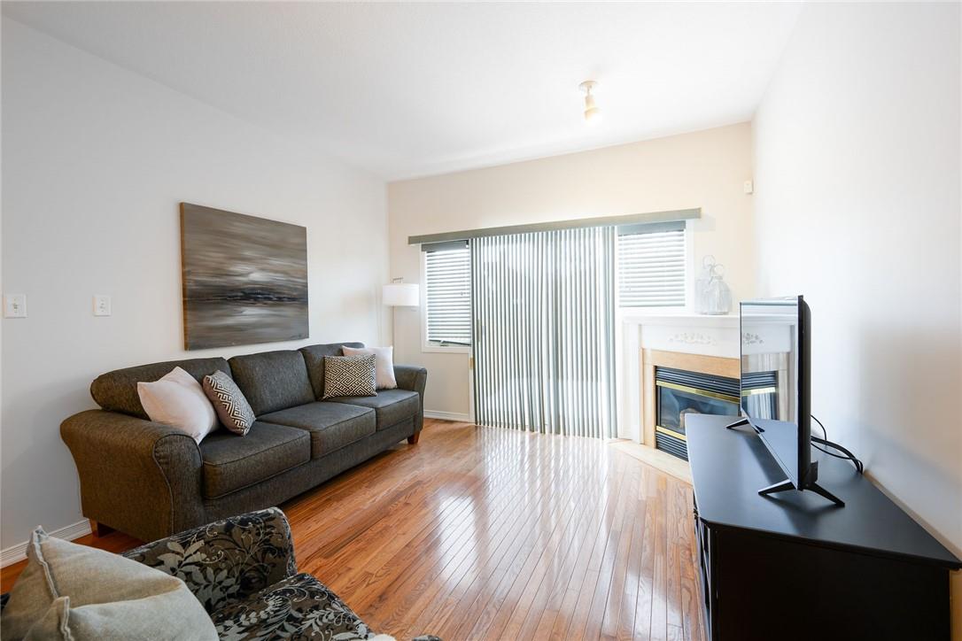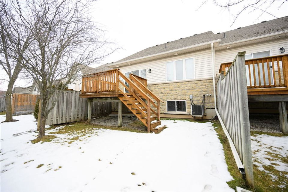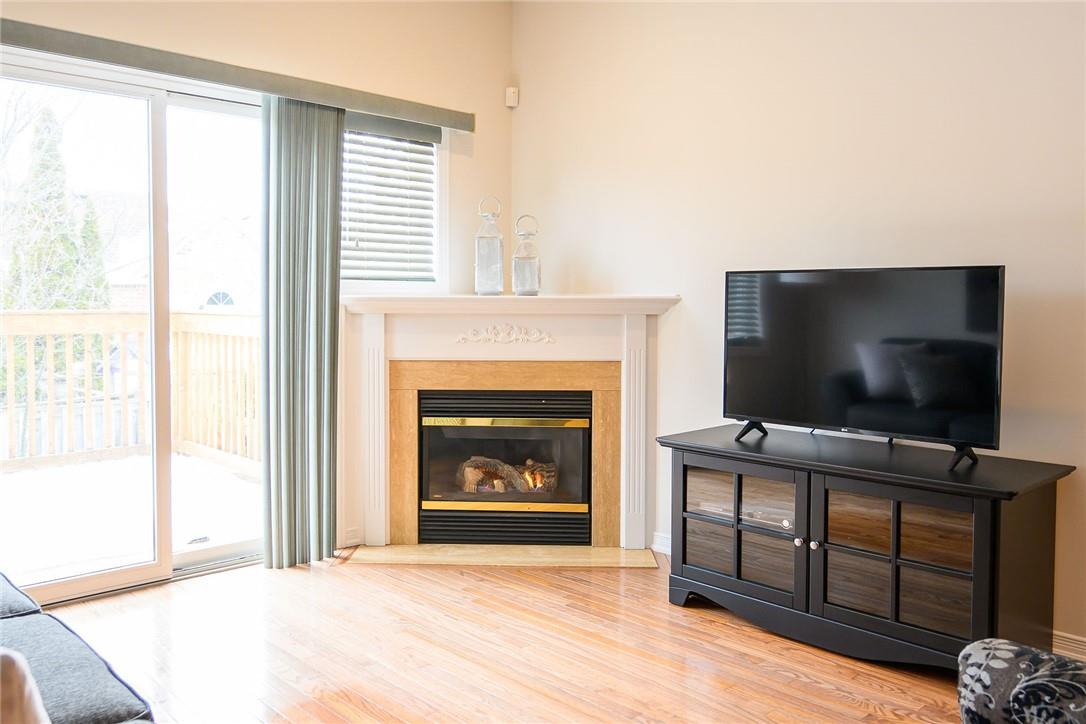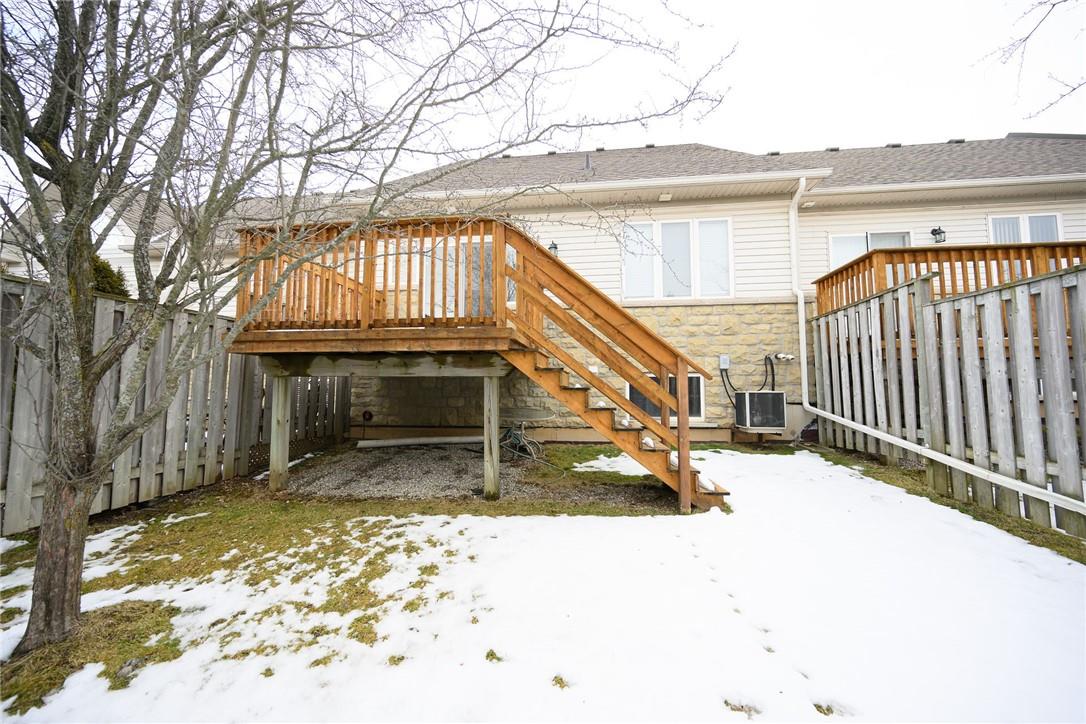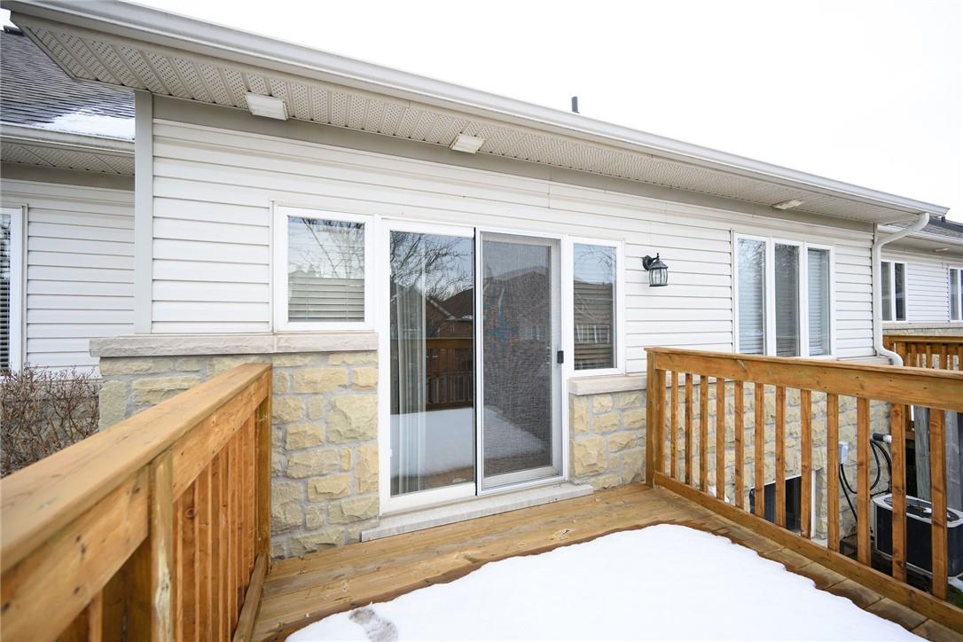 Meticulously Maintained Bungalow Townhome. Located in a very desirable Ancaster neighbourhood. Freshly painted throughout. One bedroom plus a large den. Den could easily be converted to a second bedroom. Spacious open concept kitchen with breakfast bar overlooks the beautiful dining and living room with gas fireplace. Walk out from the living area to the custom deck, perfect for barbecuing, relaxing or entertaining. Grand primary retreat features double closets and ensuite bathroom with walk-in shower, soaker tub and lots of counter and cabinet space. Huge unspoiled basement with endless possibilities. Main floor laundry room. Gleaming hardwood floors. Neutral designer decor. Loads of natural light. Private driveway and attached garage with inside entry. Low condo fees in a well managed property. Original owners. Minutes to Meadowlands shopping centre, highways and all amenities. Across from Meadowland Community Park. Move in ready. All you need to do is unpack! (id:17834)