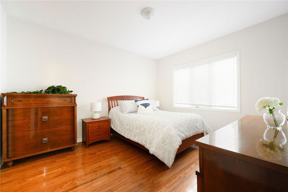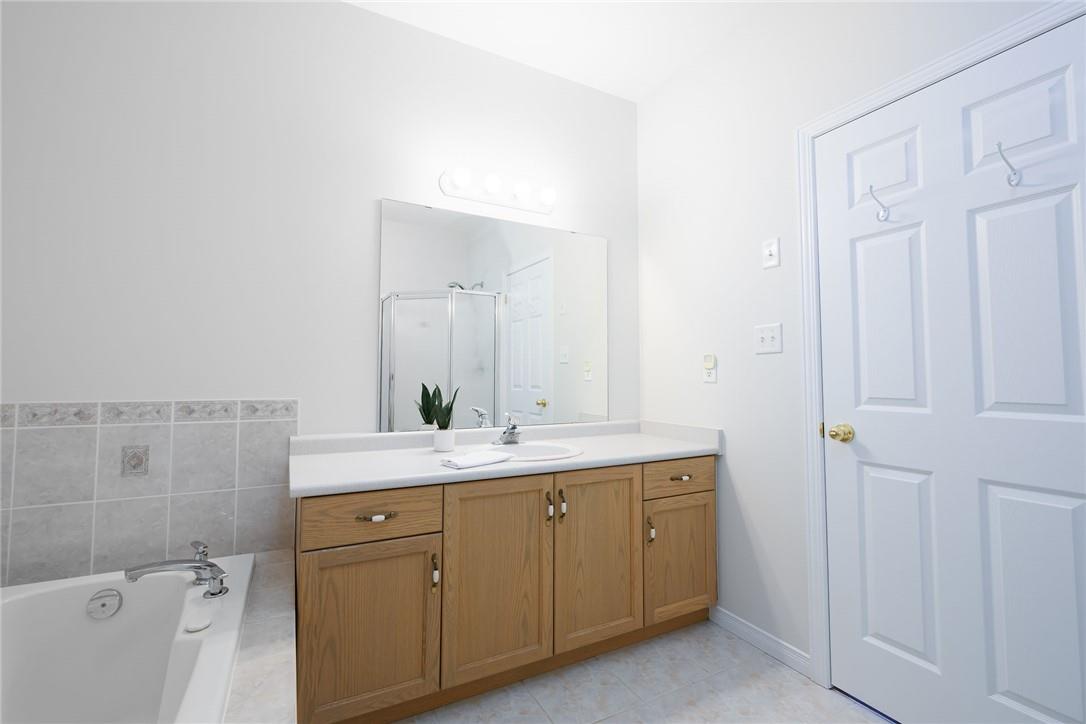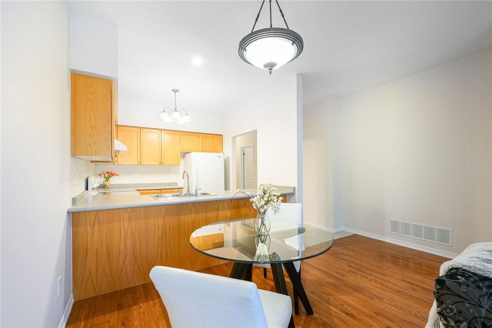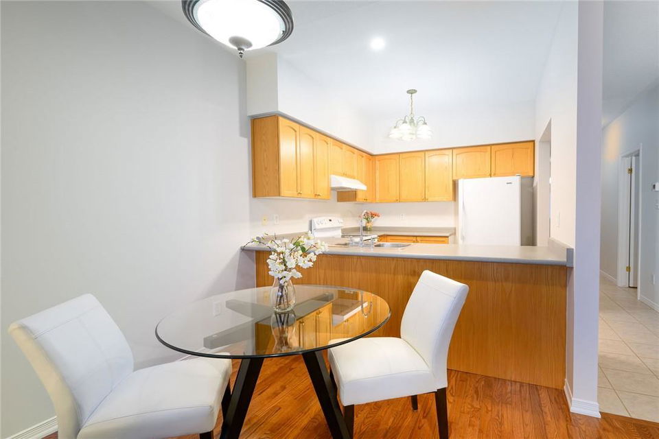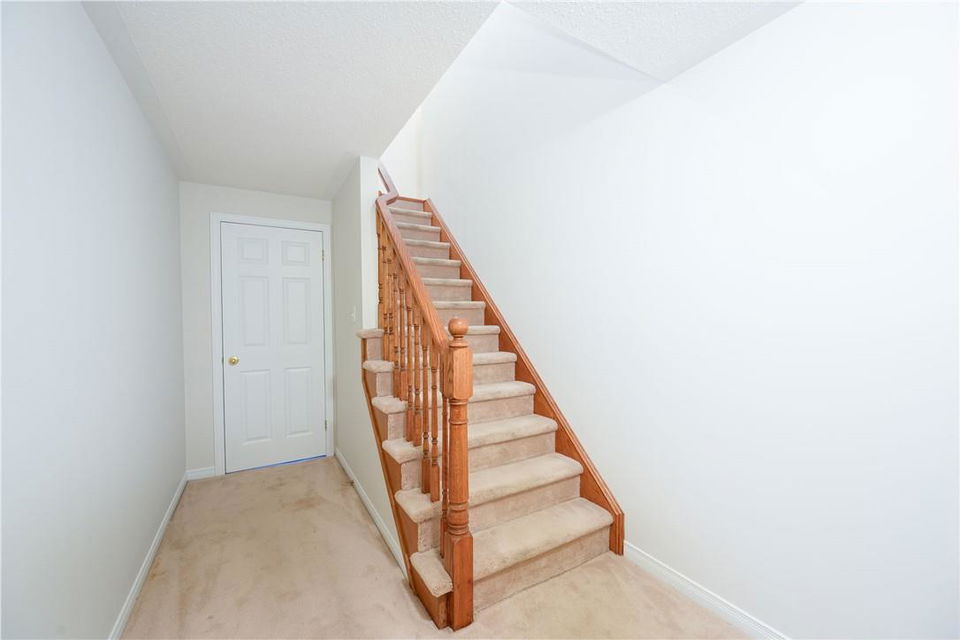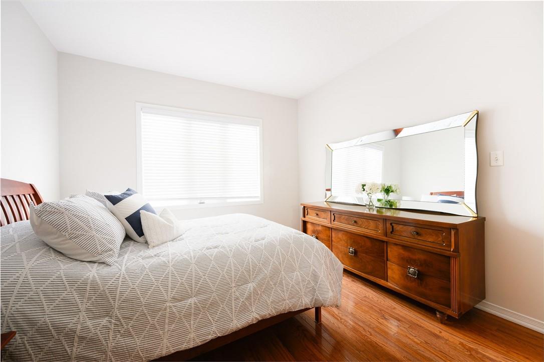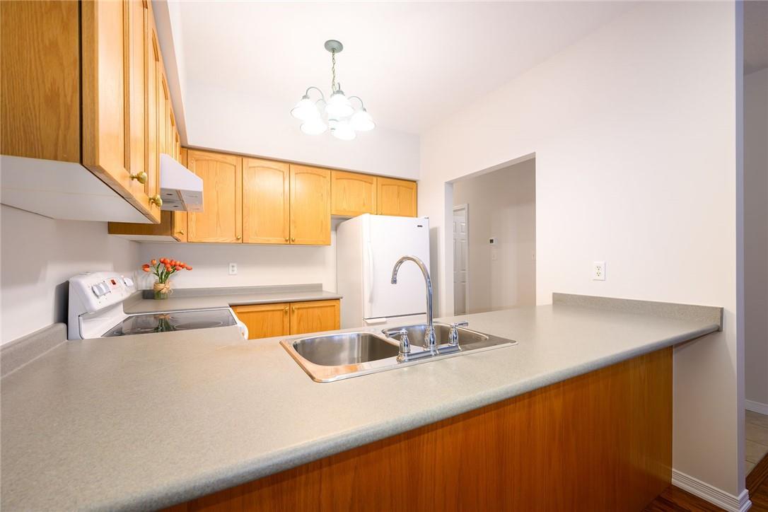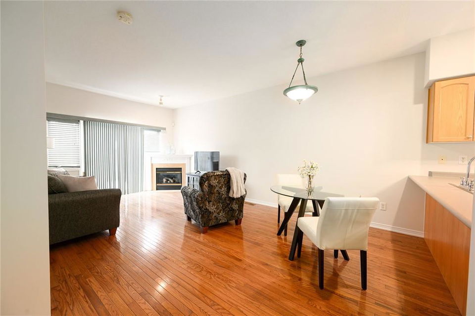 Meticulously Maintained Bungalow Townhome. Located in a very desirable Ancaster neighbourhood. Freshly painted throughout. One bedroom plus a large den. Den could easily be converted to a second bedroom. Spacious open concept kitchen with breakfast bar overlooks the beautiful dining and living room with gas fireplace. Walk out from the living area to the custom deck, perfect for barbecuing, relaxing or entertaining. Grand primary retreat features double closets and ensuite bathroom with walk-in shower, soaker tub and lots of counter and cabinet space. Huge unspoiled basement with endless possibilities. Main floor laundry room. Gleaming hardwood floors. Neutral designer decor. Loads of natural light. Private driveway and attached garage with inside entry. Low condo fees in a well managed property. Original owners. Minutes to Meadowlands shopping centre, highways and all amenities. Across from Meadowland Community Park. Move in ready. All you need to do is unpack! (id:17834)