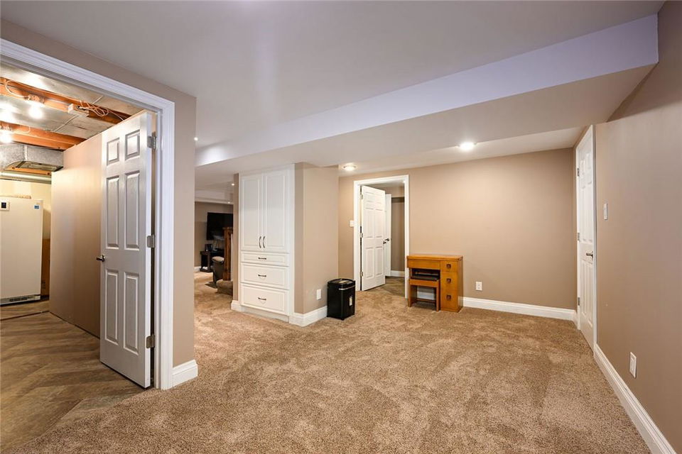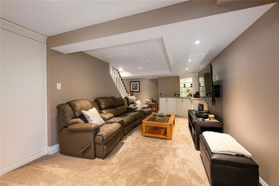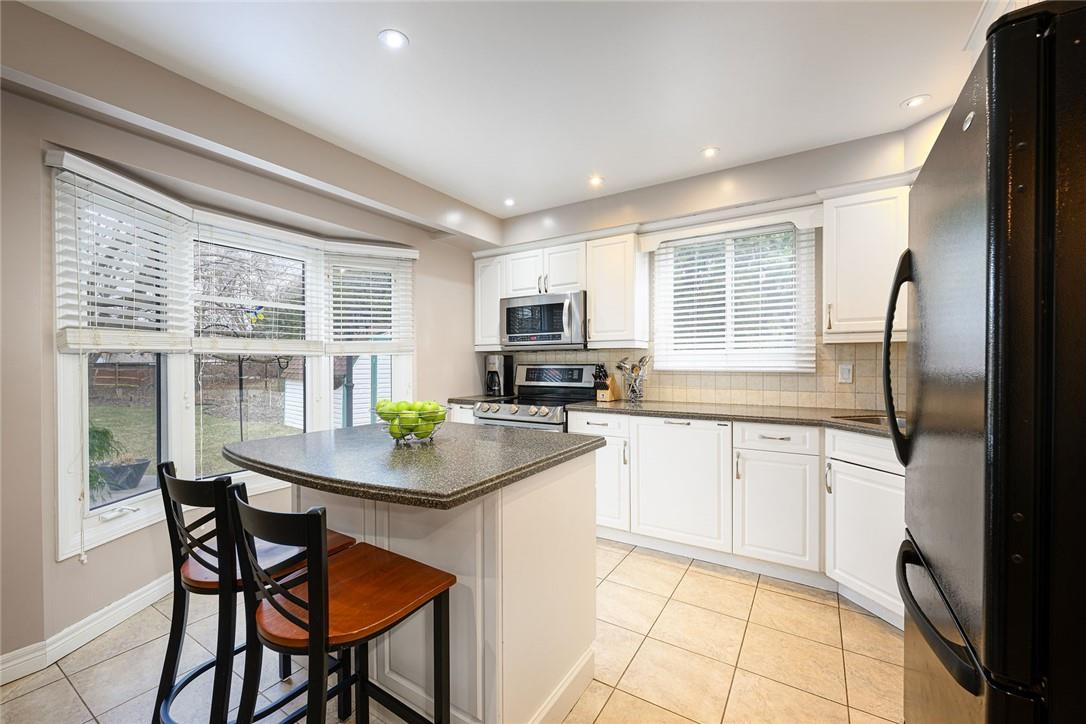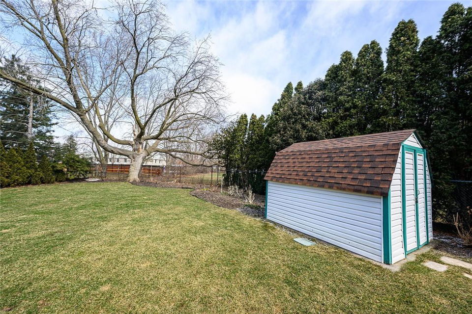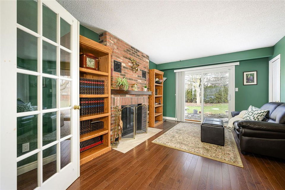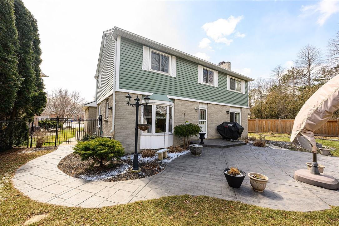 THE PERFECT FAMILY HOME!! Located on a Quiet Cul-de-Sac in Central Burlington with 4 Bedrooms, 3.5 Bathrooms & a Huge Pie Shaped Lot. Impeccably maintained. Over 3200 sq ft of living space. Eat-in kitchen overlooks the spectacular yard. Kitchen features Corian counters, a centre island, Miele dishwasher, built in table, pot lights & pristine white cabinetry with tons of storage space. Walk out from the kitchen & family room to the stamped concrete patio, surrounded by mature trees & an 8×10 custom shed. Spacious family room features a cozy gas fireplace. Large living room & separate dining room are perfect for entertaining. The upper level features a grand primary retreat including walk-in closet with built-in organizers & 3 pc ensuite bathroom. Three additional generous sized bedrooms & updated 4 pc bathroom complete the second level. Lower level is professionally finished with a rec room, den, 3 pc bathroom, electric fireplace & loads of built-in custom cabinetry & storage. Miele washer & dryer. Lots of updates throughout including hardwood flooring on the main and upper levels. Concrete double driveway fits 4 cars. Double garage with inside entry. Front & backyard irrigation system. Spectacular location near downtown Burlington. Walk to the GO station, schools, shopping, restaurants & parks. Close to QEW, 403 and 407. Move in ready. All you need to do is unpack!! (id:17834)