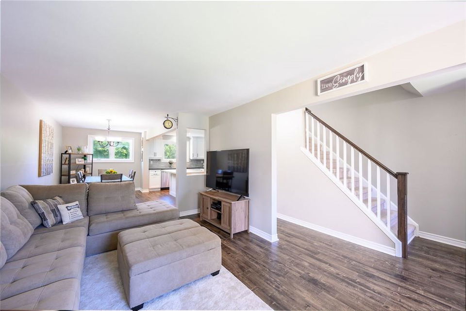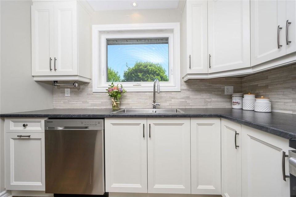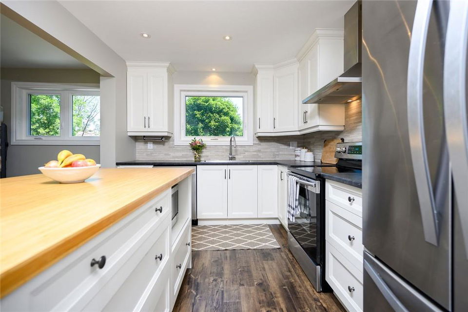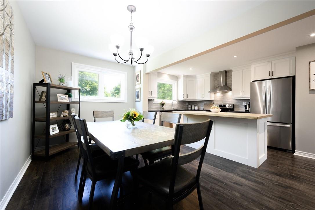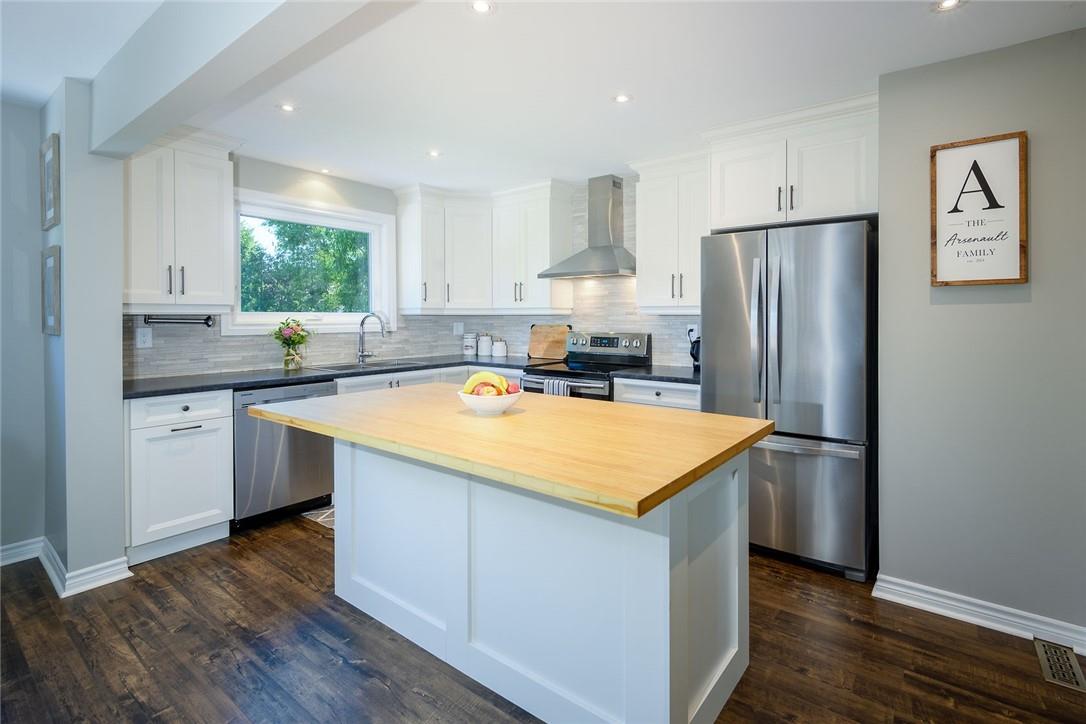 STUNNING Semi-Detached Home Located on a Family Friendly Crescent in Most Desirable Burlington Neighbourhood. Beautifully updated from top to bottom. Open concept main level. Updated kitchen with white cabinets, stainless steel appliances and custom island with breakfast bar. Kitchen and dining room overlook the huge mature backyard. Upper level features a large master bedroom with walk-in closet, two additional spacious bedrooms and an updated 4 pc bathroom. Fully finished, fully updated lower level with in-law suite and separate entrance plus walk out to the backyard. In-law suite has lots of natural light, a full size kitchen, 3 pc bathroom with walk-in shower and open concept living area. Basement ceiling is insulated for sound. Professionally landscaped to accommodate 3 vehicles. 120 ft deep lot with private backyard is the ideal retreat, perfect for relaxing and entertaining. Conveniently located near schools, parks, highways & all other amenities. Neutral designer decor throughout. Updates Include: Furnace (2016), AC (2016), Electrical Panel (2016), Appliances (2016), Exterior Doors (2016), New Windows (2020), Front Window (2016), Shingles (2014), Fence (2018). Updated Flooring Throughout. 2 sheds (one brand new) provide ample storage. All you need to do is unpack!! (id:17834)