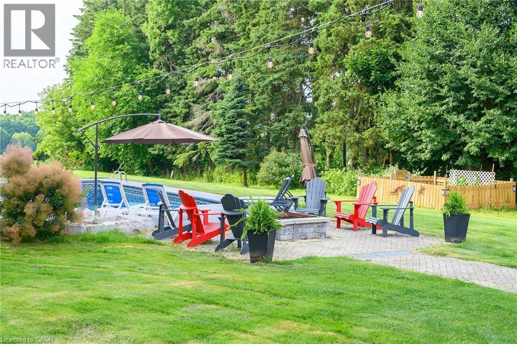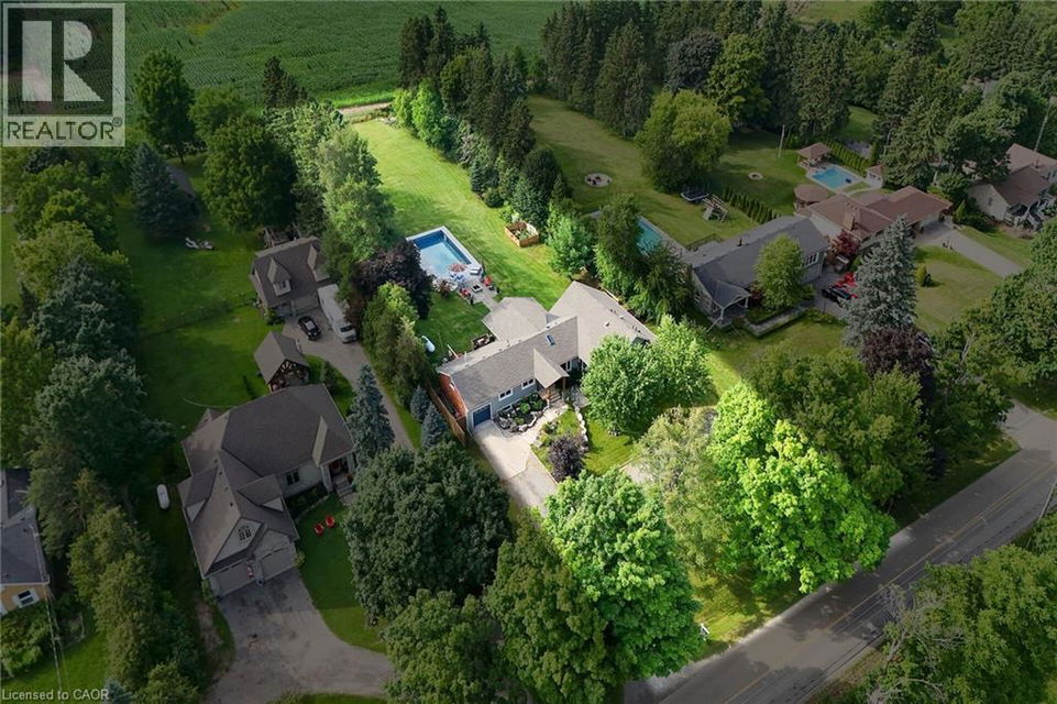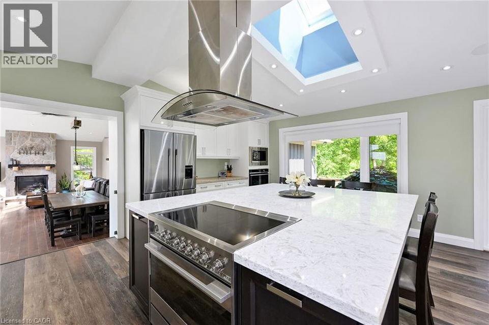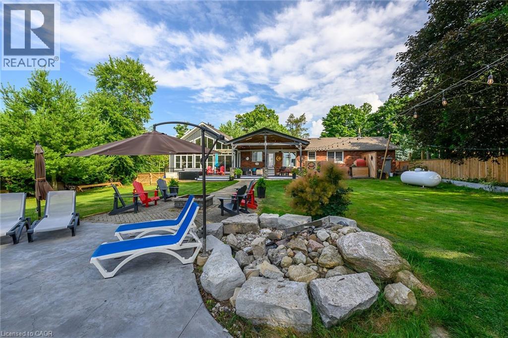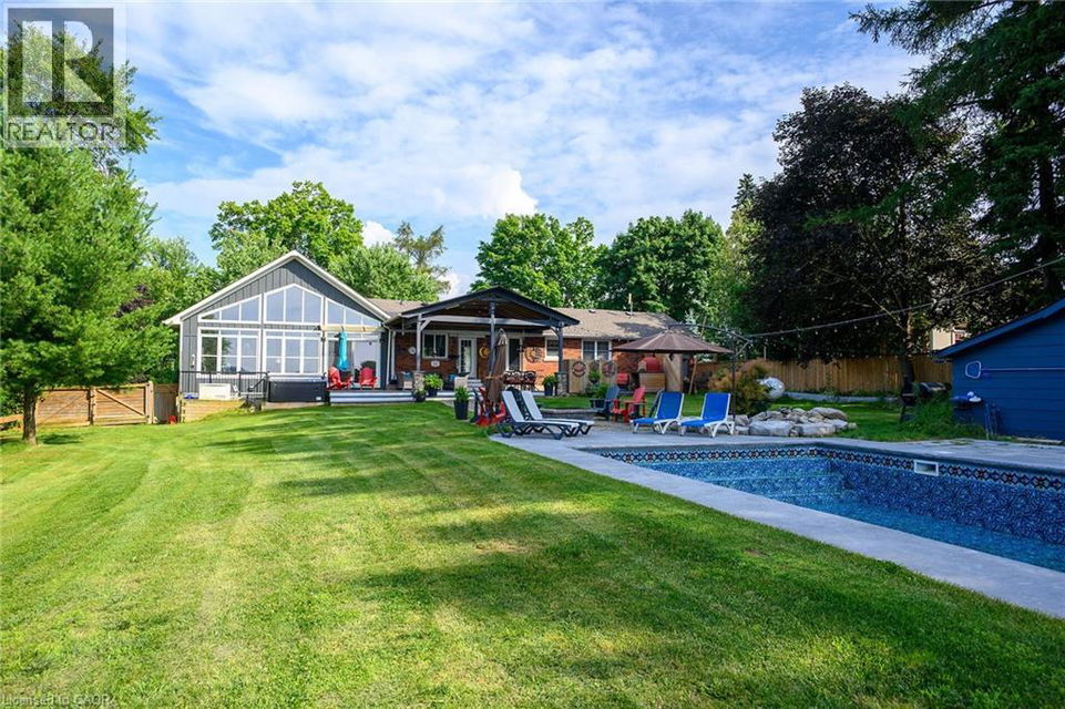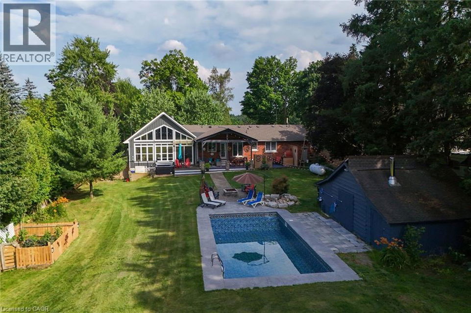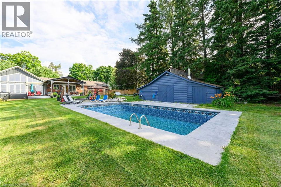 Discover the perfect blend of luxury & tranquility. Privately situated on a one acre lot in charming Carlisle, this 2150 sq ft bungalow was completely reimagined just 4 years ago. Seamlessly expanded to create an extraordinary space where every detail has been thoughtfully curated. Built with the innovative SIP (Structural Insulated Panel) system, this home is a harmonious blend of energy efficiency & beauty. The heart of the home is the gourmet kitchen, designed for both culinary enthusiasts & entertaining. It features a grand center island, professional Fisher & Paykel appliances (induction range, wall oven & quad fridge/freezer), a quiet Bosch dishwasher, wall-mounted microwave, & secondary refrigerator. Prepare to be captivated by the great room, where soaring vaulted ceilings meet floor-to-ceiling windows, offering panoramic views of your private retreat. The striking fireplace anchors this magnificent space, finished with Muskoka Granite & wooden mantel sourced from a tree on the property. Step outside & embrace the ultimate outdoor experience with a covered living area, an authentic clay pizza wood-oven, hot tub, & an inviting inground salt water pool. As twilight descends, gather around one of 2 fire-pits to witness the most incredible sunsets & bask under the stars. Back inside, the primary retreat, loft area & spa like bath are located at one end of the home, along with a home office. At the other end of the home, there are 2 additional bedrooms (one with a dressing room) & a 3 pc bath. The lower level offers a family room with a stone fireplace, additional bedroom, & 3-piece bath. Potential for an in-law or nanny suite, with separate entrance & egress windows. Another outstanding feature is the commercial UV water purification system for impeccable water quality. Updates in the past 4 years are extensive including a new septic, a full detailed list is available. This property isn’t just a home; it’s a lifestyle. You truly must experience it to believe it! (id:17834)