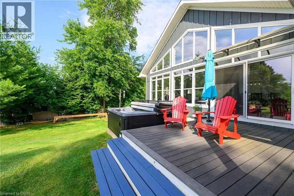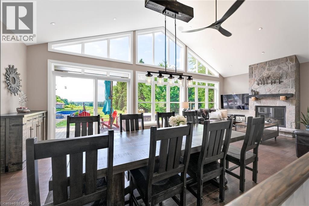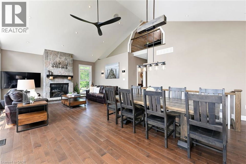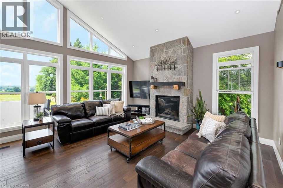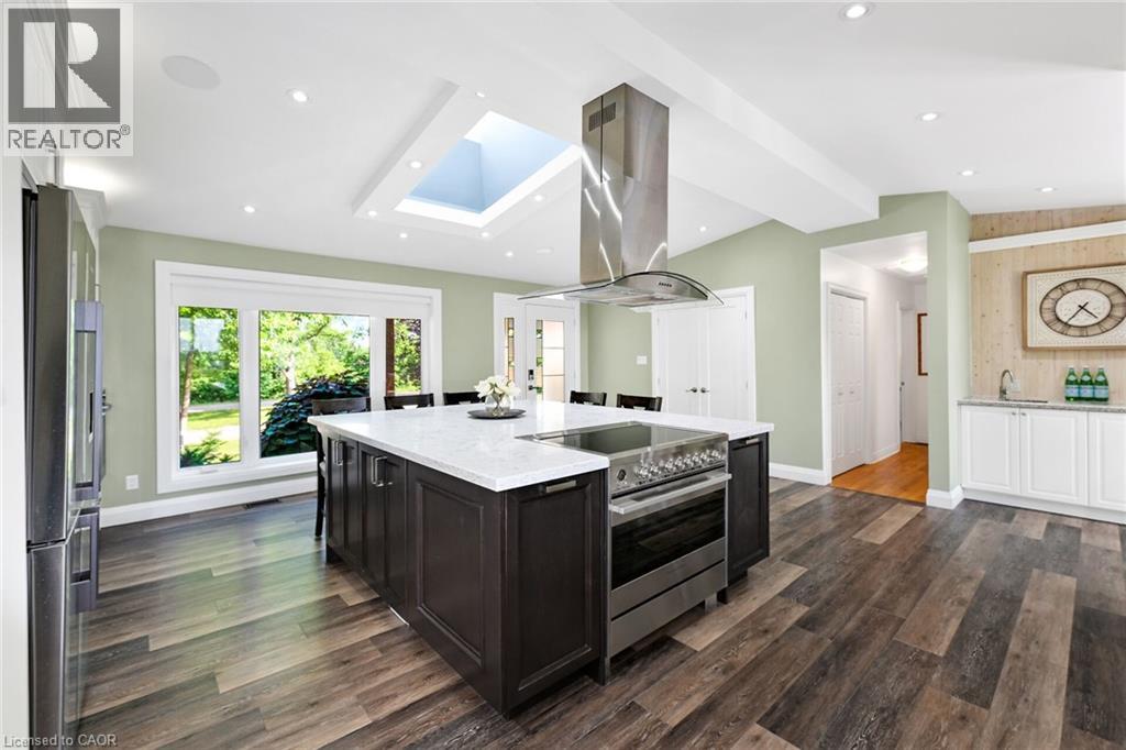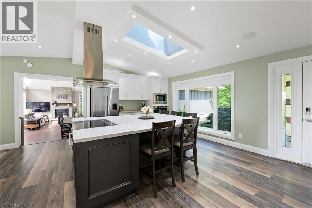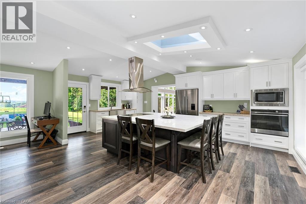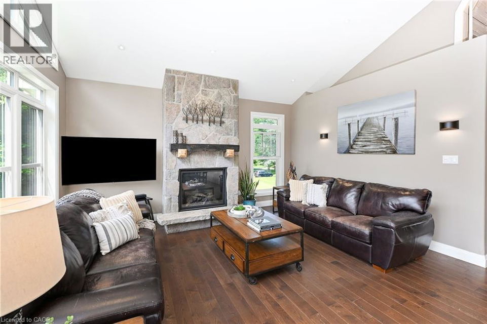 Discover the perfect blend of luxury & tranquility. Privately situated on a one acre lot in charming Carlisle, this 2150 sq ft bungalow was completely reimagined just 4 years ago. Seamlessly expanded to create an extraordinary space where every detail has been thoughtfully curated. Built with the innovative SIP (Structural Insulated Panel) system, this home is a harmonious blend of energy efficiency & beauty. The heart of the home is the gourmet kitchen, designed for both culinary enthusiasts & entertaining. It features a grand center island, professional Fisher & Paykel appliances (induction range, wall oven & quad fridge/freezer), a quiet Bosch dishwasher, wall-mounted microwave, & secondary refrigerator. Prepare to be captivated by the great room, where soaring vaulted ceilings meet floor-to-ceiling windows, offering panoramic views of your private retreat. The striking fireplace anchors this magnificent space, finished with Muskoka Granite & wooden mantel sourced from a tree on the property. Step outside & embrace the ultimate outdoor experience with a covered living area, an authentic clay pizza wood-oven, hot tub, & an inviting inground salt water pool. As twilight descends, gather around one of 2 fire-pits to witness the most incredible sunsets & bask under the stars. Back inside, the primary retreat, loft area & spa like bath are located at one end of the home, along with a home office. At the other end of the home, there are 2 additional bedrooms (one with a dressing room) & a 3 pc bath. The lower level offers a family room with a stone fireplace, additional bedroom, & 3-piece bath. Potential for an in-law or nanny suite, with separate entrance & egress windows. Another outstanding feature is the commercial UV water purification system for impeccable water quality. Updates in the past 4 years are extensive including a new septic, a full detailed list is available. This property isn’t just a home; it’s a lifestyle. You truly must experience it to believe it! (id:17834)