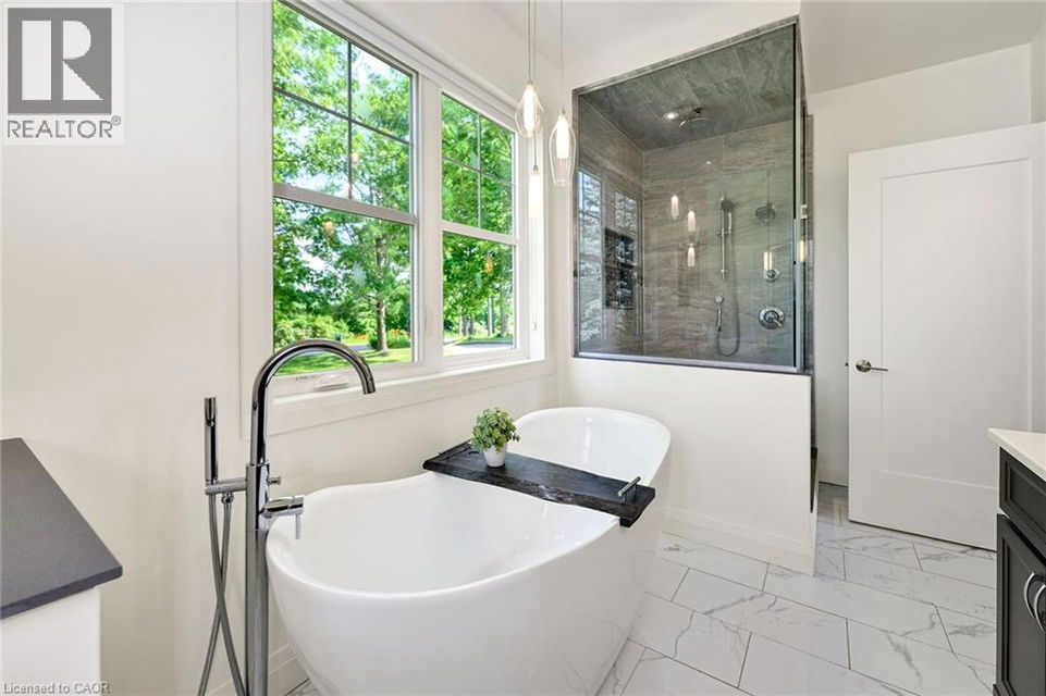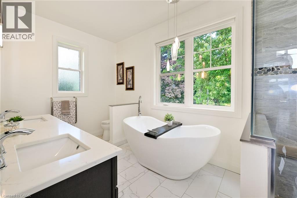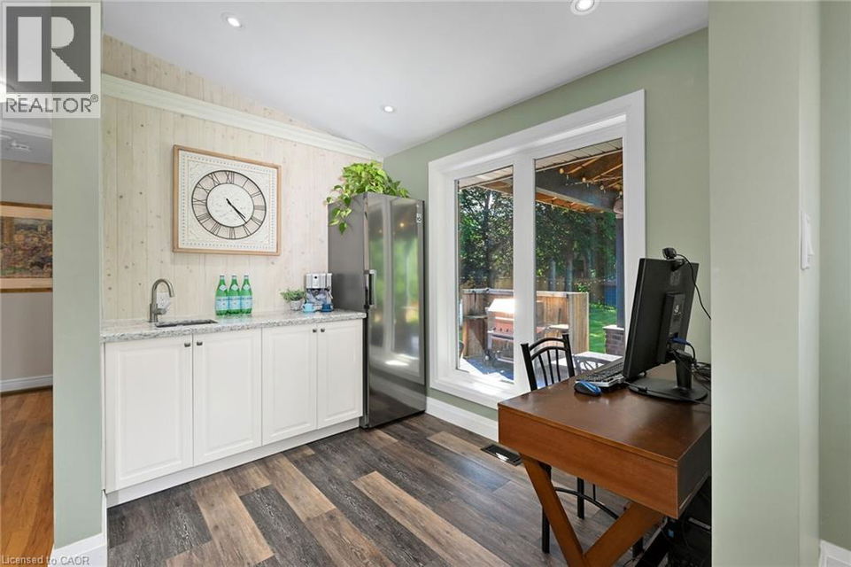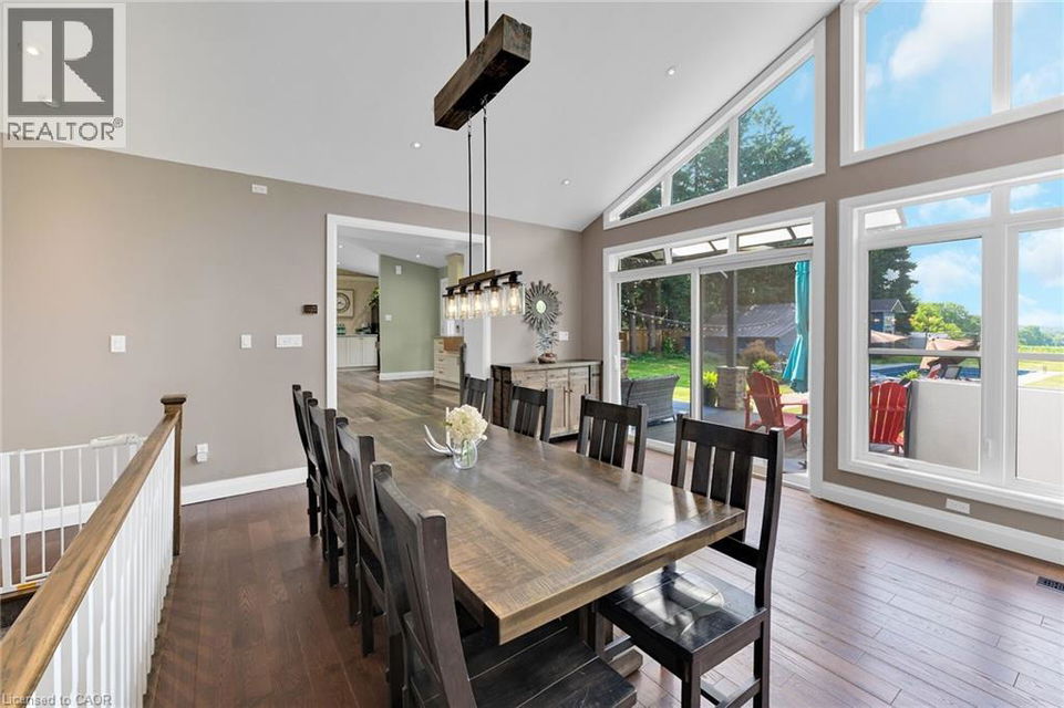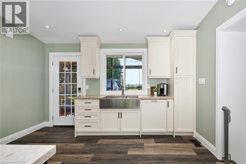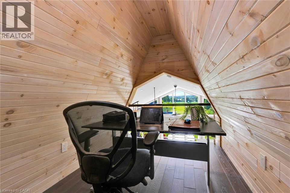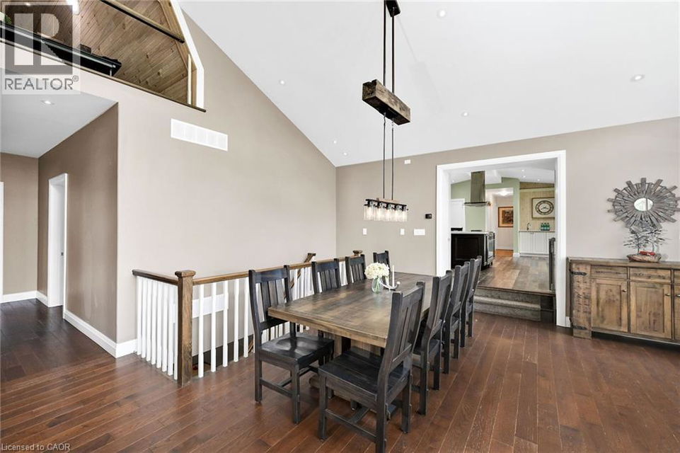 Discover the perfect blend of luxury & tranquility. Privately situated on a one acre lot in charming Carlisle, this 2150 sq ft bungalow was completely reimagined just 4 years ago. Seamlessly expanded to create an extraordinary space where every detail has been thoughtfully curated. Built with the innovative SIP (Structural Insulated Panel) system, this home is a harmonious blend of energy efficiency & beauty. The heart of the home is the gourmet kitchen, designed for both culinary enthusiasts & entertaining. It features a grand center island, professional Fisher & Paykel appliances (induction range, wall oven & quad fridge/freezer), a quiet Bosch dishwasher, wall-mounted microwave, & secondary refrigerator. Prepare to be captivated by the great room, where soaring vaulted ceilings meet floor-to-ceiling windows, offering panoramic views of your private retreat. The striking fireplace anchors this magnificent space, finished with Muskoka Granite & wooden mantel sourced from a tree on the property. Step outside & embrace the ultimate outdoor experience with a covered living area, an authentic clay pizza wood-oven, hot tub, & an inviting inground salt water pool. As twilight descends, gather around one of 2 fire-pits to witness the most incredible sunsets & bask under the stars. Back inside, the primary retreat, loft area & spa like bath are located at one end of the home, along with a home office. At the other end of the home, there are 2 additional bedrooms (one with a dressing room) & a 3 pc bath. The lower level offers a family room with a stone fireplace, additional bedroom, & 3-piece bath. Potential for an in-law or nanny suite, with separate entrance & egress windows. Another outstanding feature is the commercial UV water purification system for impeccable water quality. Updates in the past 4 years are extensive including a new septic, a full detailed list is available. This property isn’t just a home; it’s a lifestyle. You truly must experience it to believe it! (id:17834)