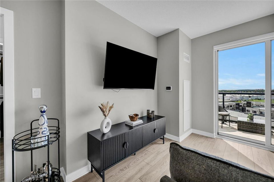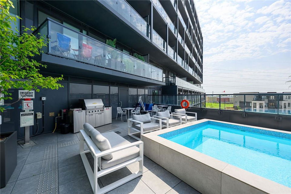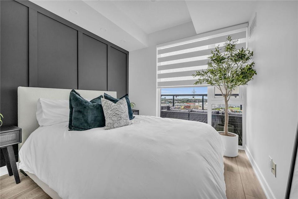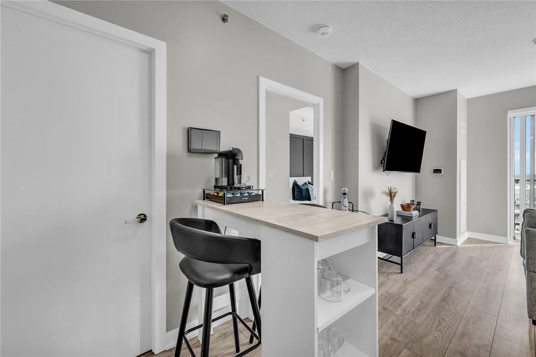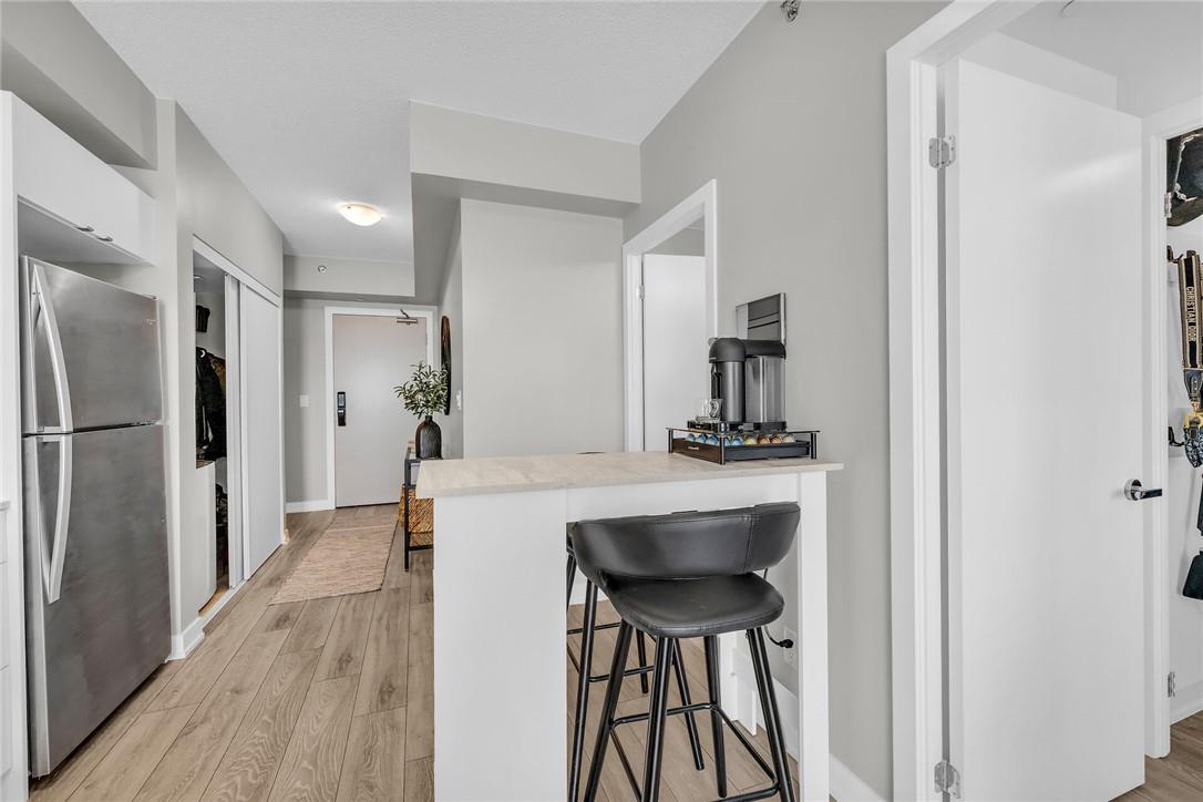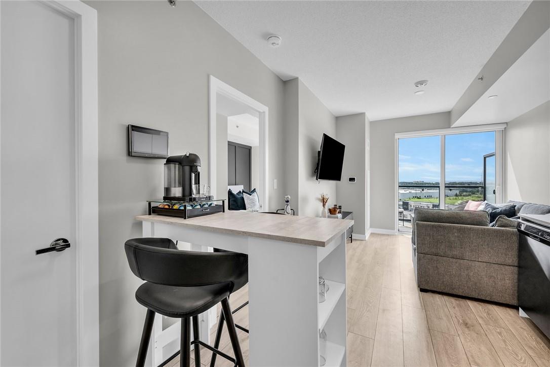 !! OPEN HOUSE ON SUNDAY AUG 4TH FROM 2-4PM !! GORGEOUS 1 BEDROOM SUB-PENTHOUSE SUITE WITH SOUTHERN VIEWS!! Newly built state of the art building in desirable Alton Village with amenities galore. Beautifully upgraded one bedroom, one bathroom, open concept suite with a huge balcony that spans the width of the suite. Kitchen with premium white cabinetry, breakfast bar, Frosty Carrina counters & backsplash, stainless steel appliances, microwave with hood vent & under-mount sink. Vienna Stone luxury laminate flooring. Primary retreat with stunning views, custom panelled feature wall, pot lights, walk-in closet with professionally installed organizers. Spacious living room with loads of natural light & walk out to your balcony, the ideal space for relaxing or entertaining. Full bathroom with a bathtub. In-suite stackable washer & dryer. Custom remote controlled blinds in the bedroom & living room. One owned underground parking spot. The building amenities are that of a 5 star hotel with a roof top patio, outdoor pool, BBQ & lounge area, gym, yoga studio, sauna, steam room, change rooms, party room, entertainment lounge, pet spa, 24 hour concierge & ample visitor parking. The units are equipped with Smart Suite access. Walk to a plethora of shops & restaurants. Close to the 407, QEW & public transit. Energy efficient. Pet friendly. Includes all appliances & furnishings are negotiable. Locker available for rent. High speed internet included in the condo fee! (id:17834)