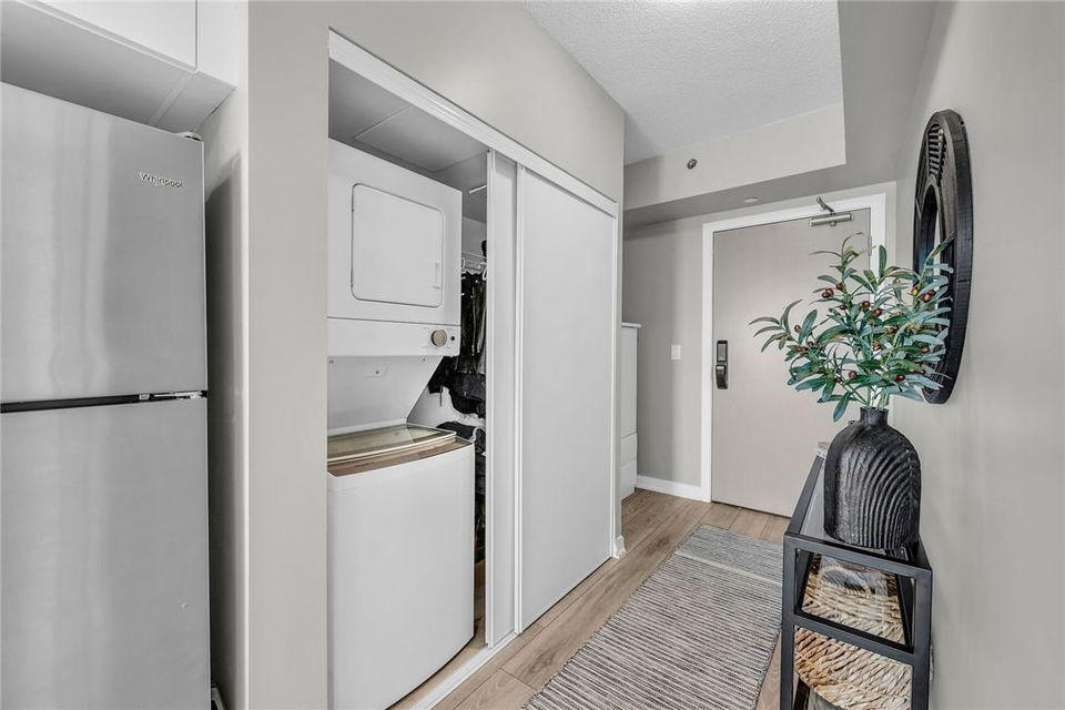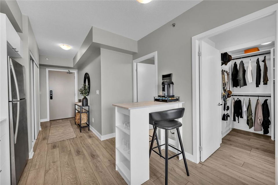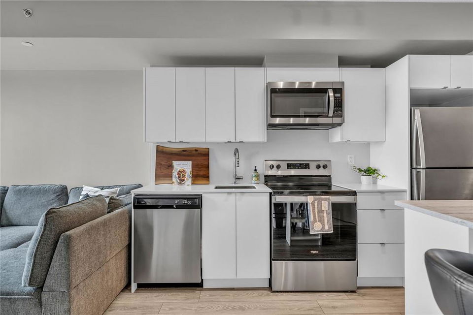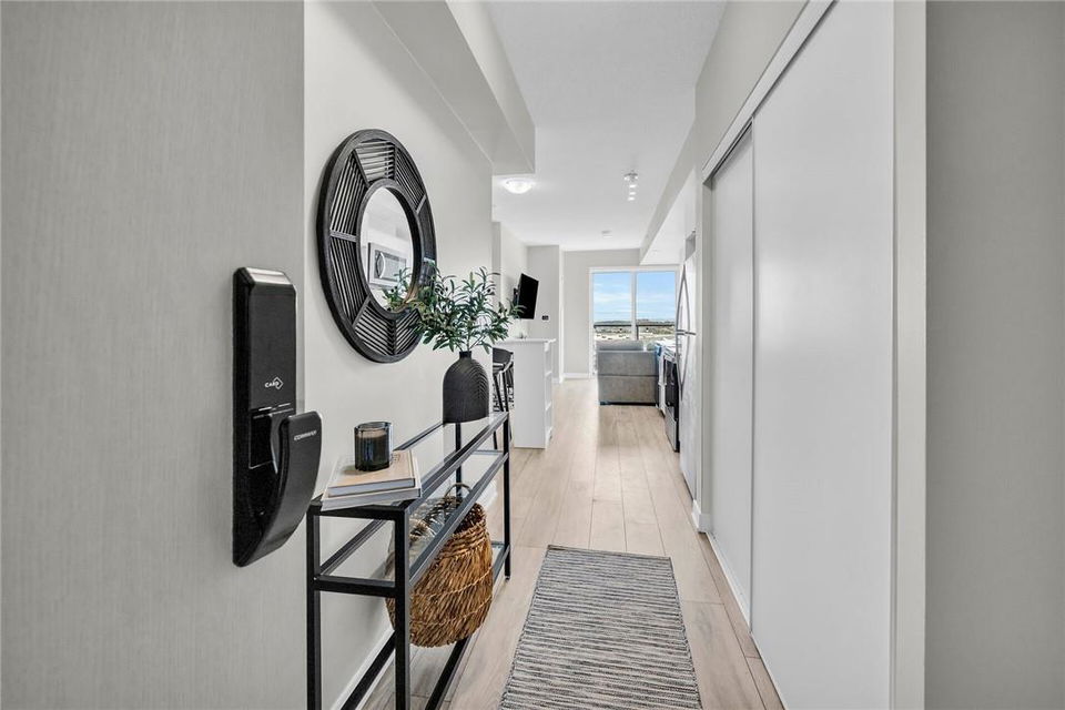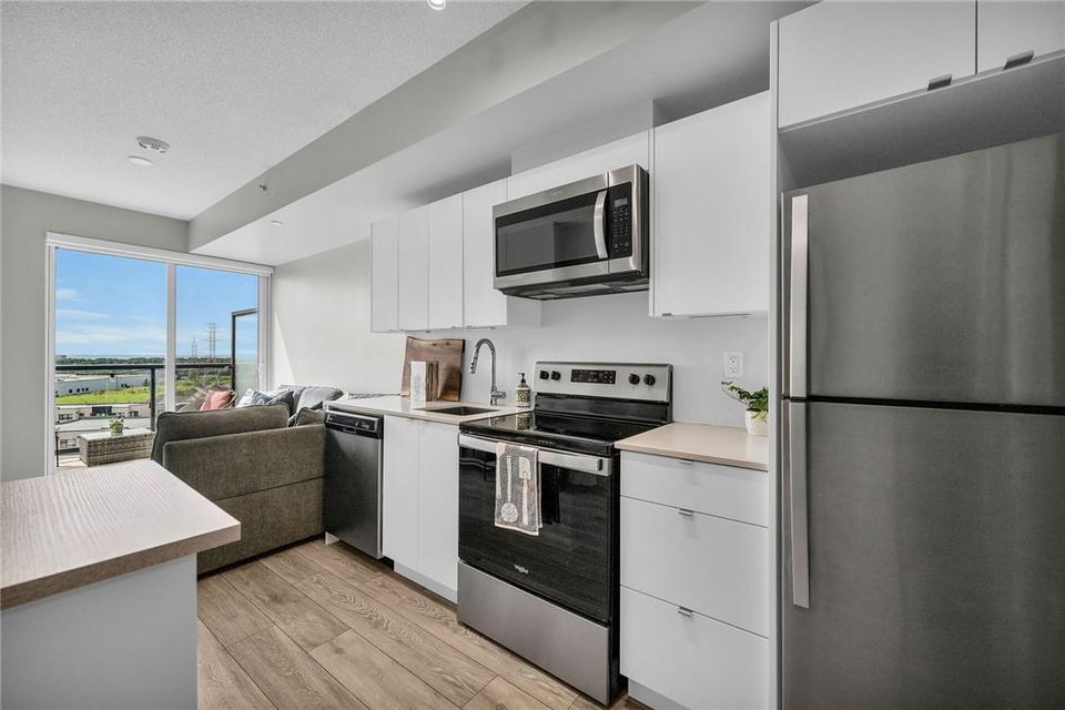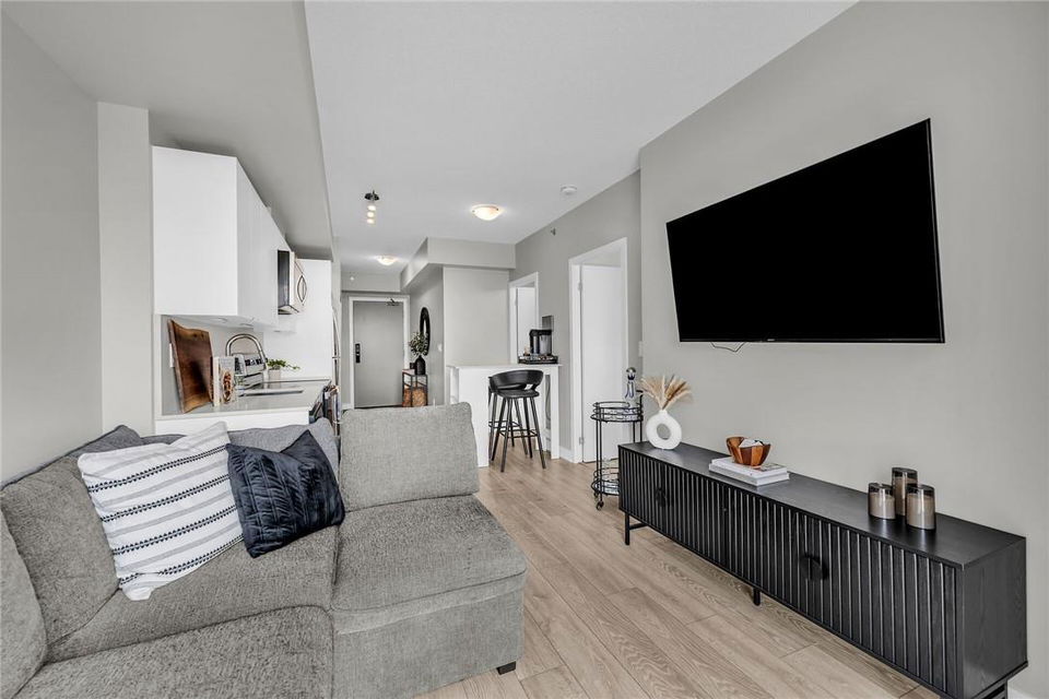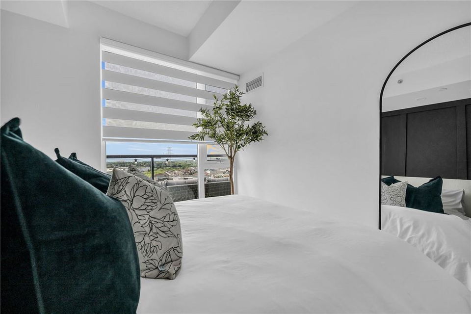 !! OPEN HOUSE ON SUNDAY AUG 4TH FROM 2-4PM !! GORGEOUS 1 BEDROOM SUB-PENTHOUSE SUITE WITH SOUTHERN VIEWS!! Newly built state of the art building in desirable Alton Village with amenities galore. Beautifully upgraded one bedroom, one bathroom, open concept suite with a huge balcony that spans the width of the suite. Kitchen with premium white cabinetry, breakfast bar, Frosty Carrina counters & backsplash, stainless steel appliances, microwave with hood vent & under-mount sink. Vienna Stone luxury laminate flooring. Primary retreat with stunning views, custom panelled feature wall, pot lights, walk-in closet with professionally installed organizers. Spacious living room with loads of natural light & walk out to your balcony, the ideal space for relaxing or entertaining. Full bathroom with a bathtub. In-suite stackable washer & dryer. Custom remote controlled blinds in the bedroom & living room. One owned underground parking spot. The building amenities are that of a 5 star hotel with a roof top patio, outdoor pool, BBQ & lounge area, gym, yoga studio, sauna, steam room, change rooms, party room, entertainment lounge, pet spa, 24 hour concierge & ample visitor parking. The units are equipped with Smart Suite access. Walk to a plethora of shops & restaurants. Close to the 407, QEW & public transit. Energy efficient. Pet friendly. Includes all appliances & furnishings are negotiable. Locker available for rent. High speed internet included in the condo fee! (id:17834)