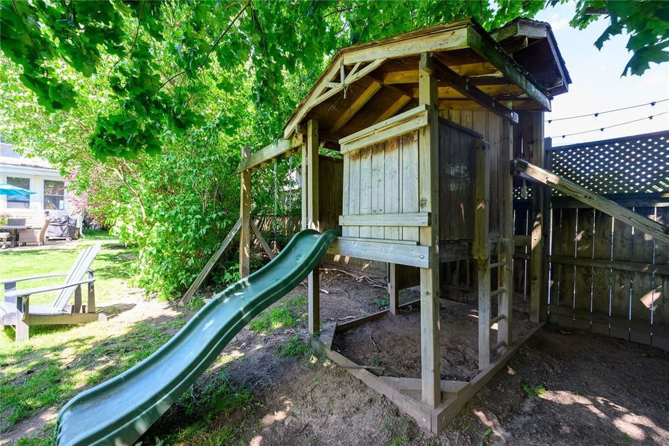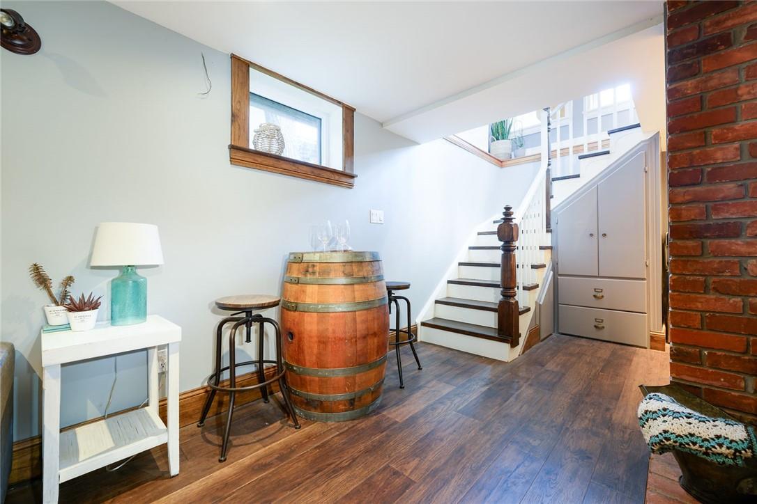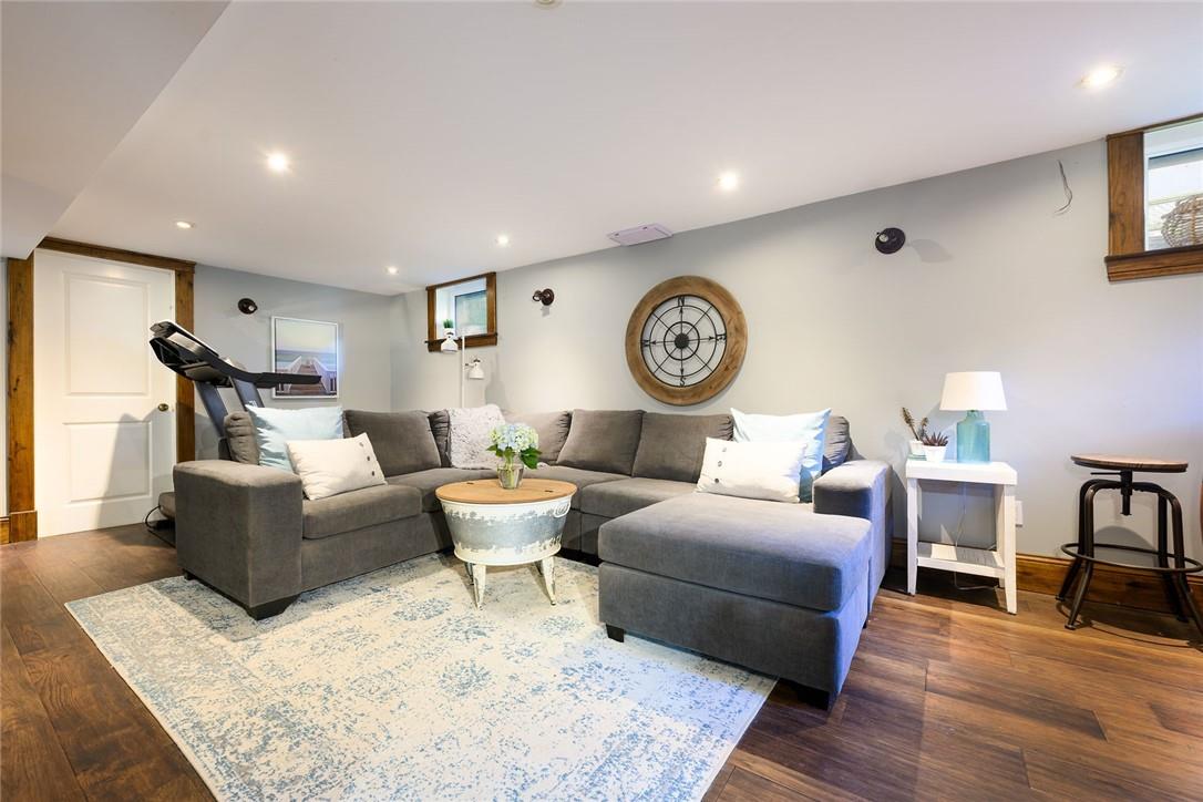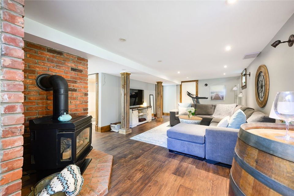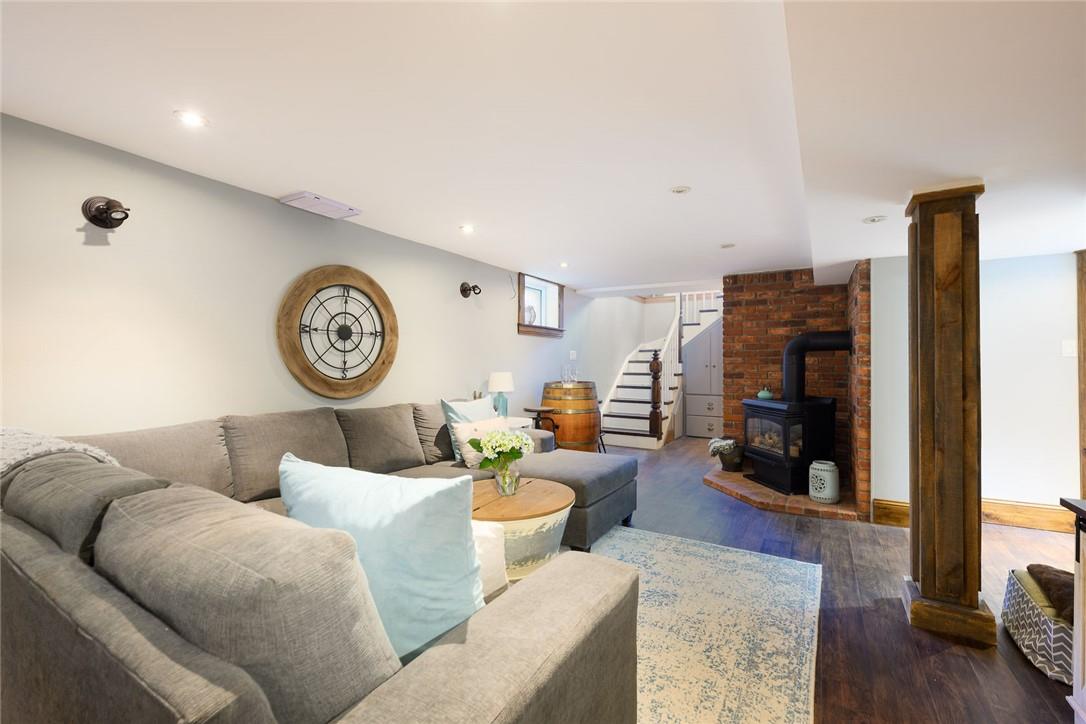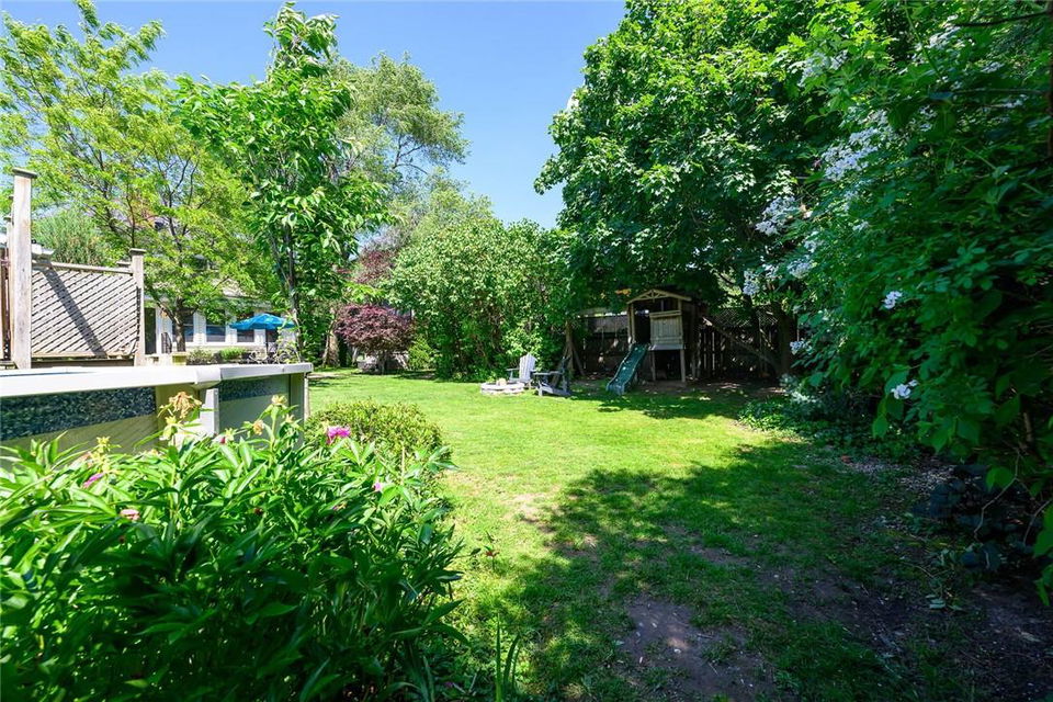 Love at first sight. You will walk through the door and fall head over heels with the character, charm, finishings and decor. Original detailing perfectly blended with tasteful updates. Grand entry way with heated tile floor, live edge wood bench, custom built in shelving and hidden shoe closet. Chefs kitchen with exposed brick, white cabinetry, granite counters, gas stove, breakfast bar, pantry, skylights and sitting area. Living and dining room with hardwood, gas fireplace, built in shelving, wood trim and crown moulding. Upstairs features 3 bedrooms and beautifully updated bathroom with heated floors, glass door and rain shower. The lower level has a 4th bedroom, full bathroom, loads of storage and huge rec room with fireplace. Perfect for entertaining, wine tasting or a cozy movie night. The private backyard is an oasis with stone patio, new hot tub, fire pit, play-set and above ground pool with deck. Gorgeous mature gardens and in-ground sprinkler system. Detached double garage. Parking for 8+ cars. Curb appeal is 10+. Grimsby Beach location close to the lake, all amenities and hwy. This is the dream. (id:17834)