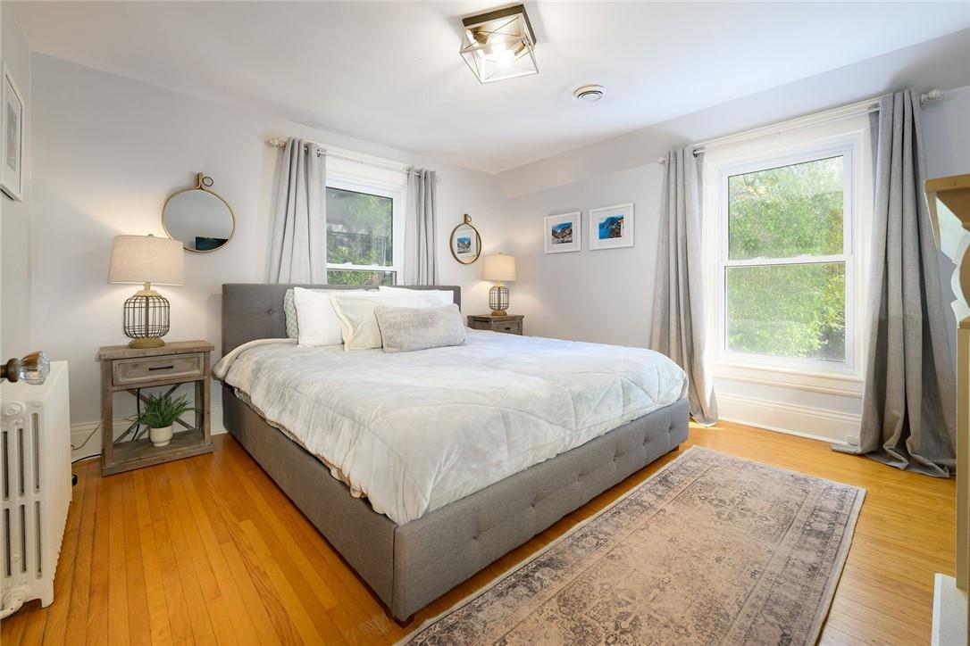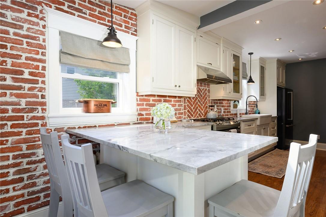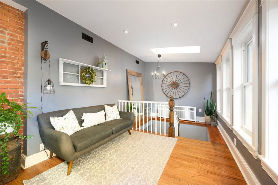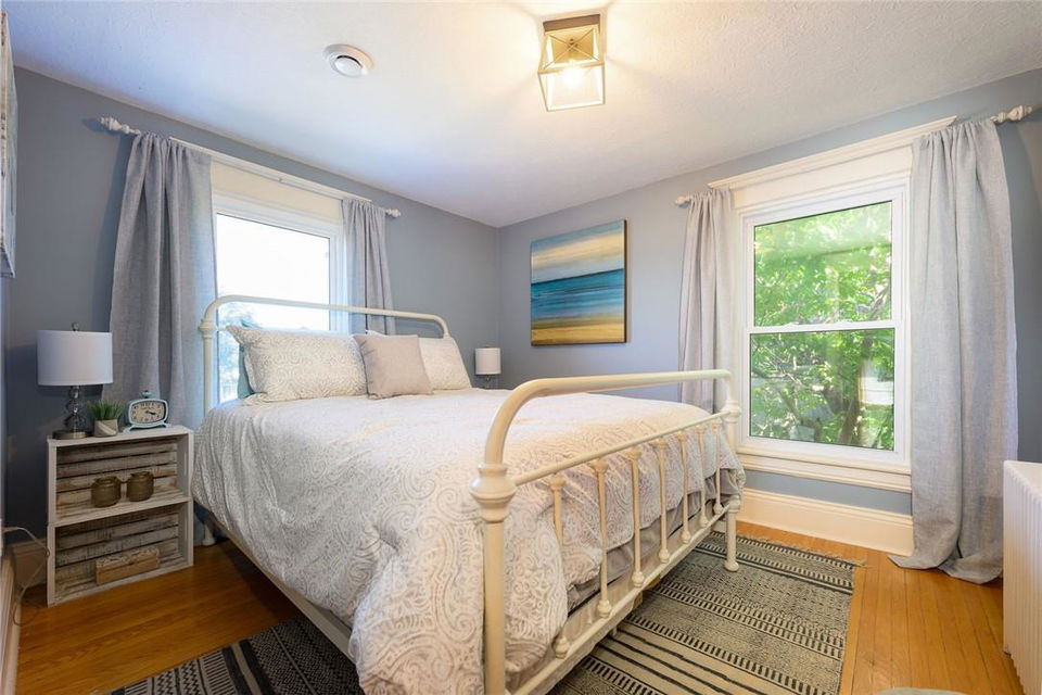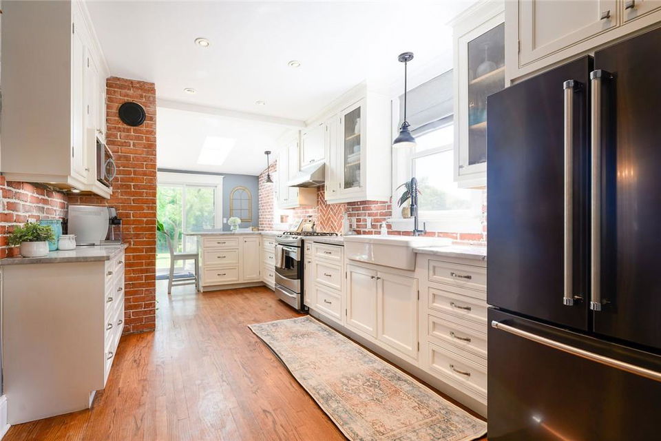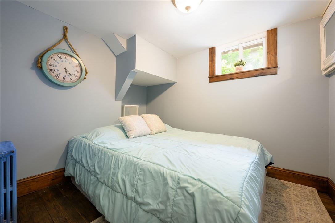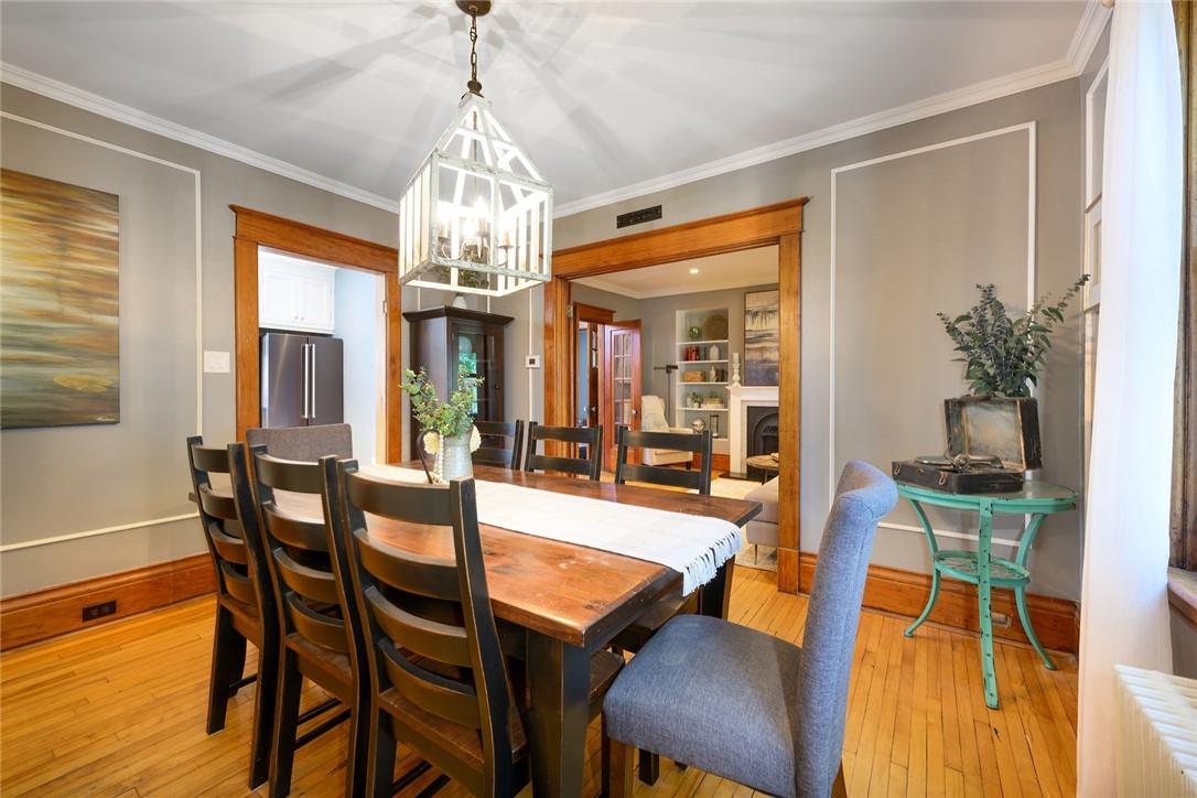 Love at first sight. You will walk through the door and fall head over heels with the character, charm, finishings and decor. Original detailing perfectly blended with tasteful updates. Grand entry way with heated tile floor, live edge wood bench, custom built in shelving and hidden shoe closet. Chefs kitchen with exposed brick, white cabinetry, granite counters, gas stove, breakfast bar, pantry, skylights and sitting area. Living and dining room with hardwood, gas fireplace, built in shelving, wood trim and crown moulding. Upstairs features 3 bedrooms and beautifully updated bathroom with heated floors, glass door and rain shower. The lower level has a 4th bedroom, full bathroom, loads of storage and huge rec room with fireplace. Perfect for entertaining, wine tasting or a cozy movie night. The private backyard is an oasis with stone patio, new hot tub, fire pit, play-set and above ground pool with deck. Gorgeous mature gardens and in-ground sprinkler system. Detached double garage. Parking for 8+ cars. Curb appeal is 10+. Grimsby Beach location close to the lake, all amenities and hwy. This is the dream. (id:17834)