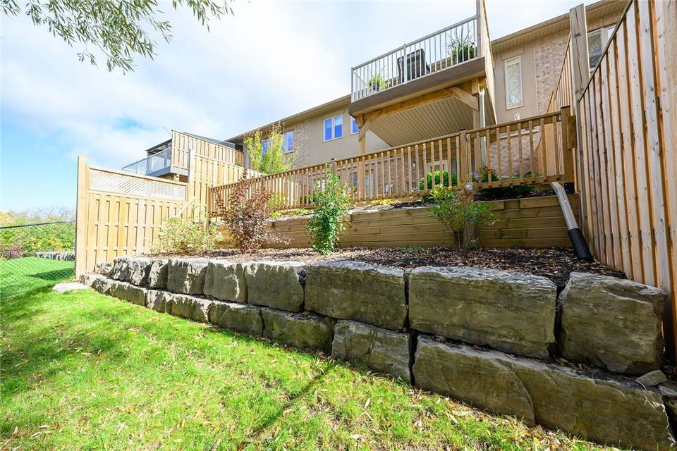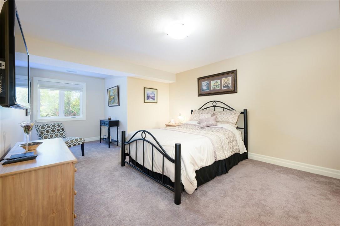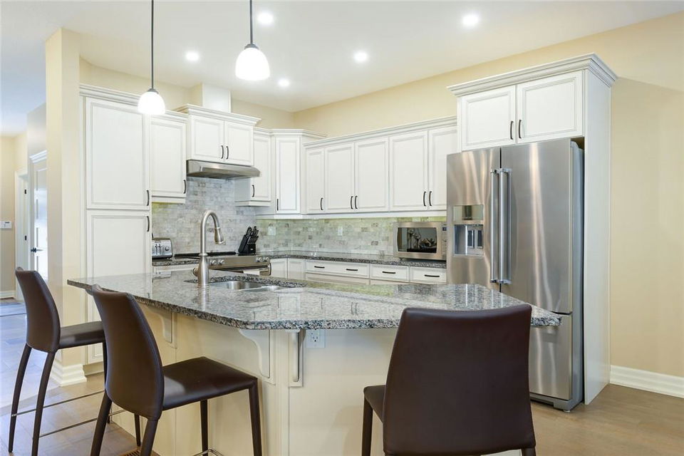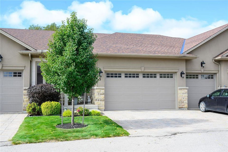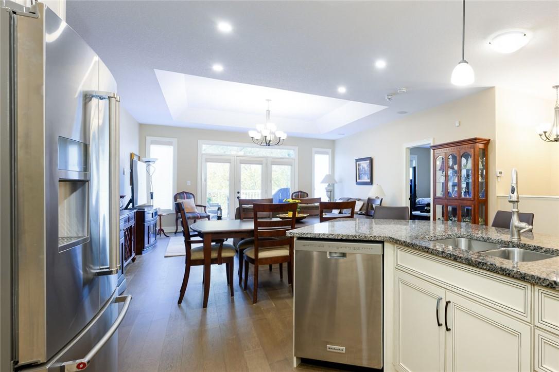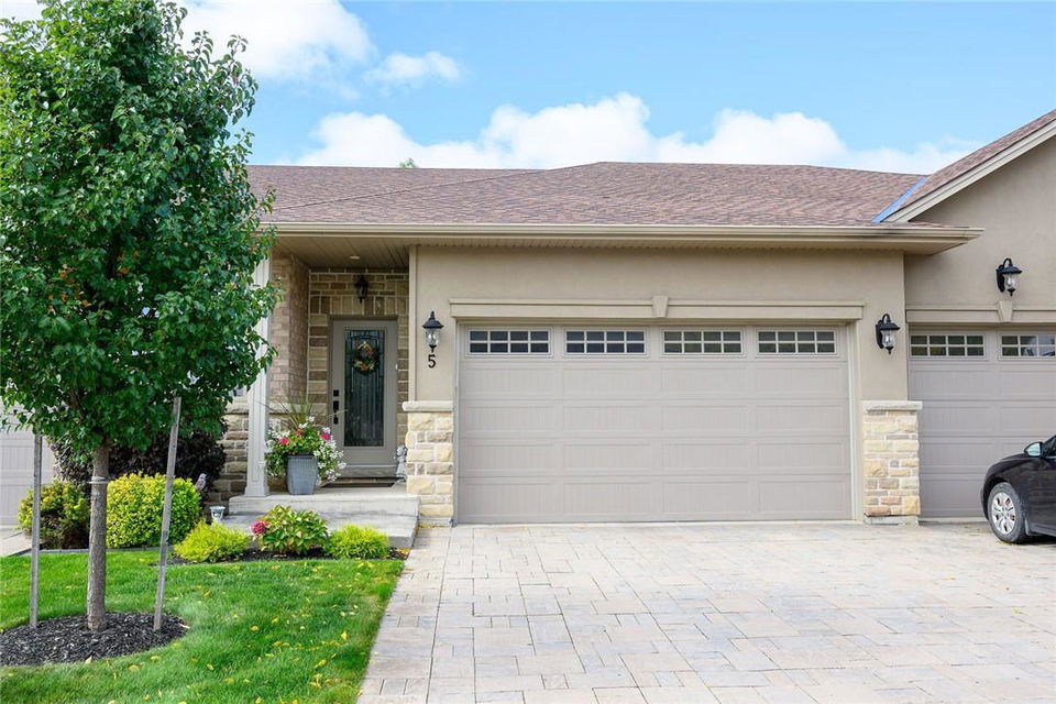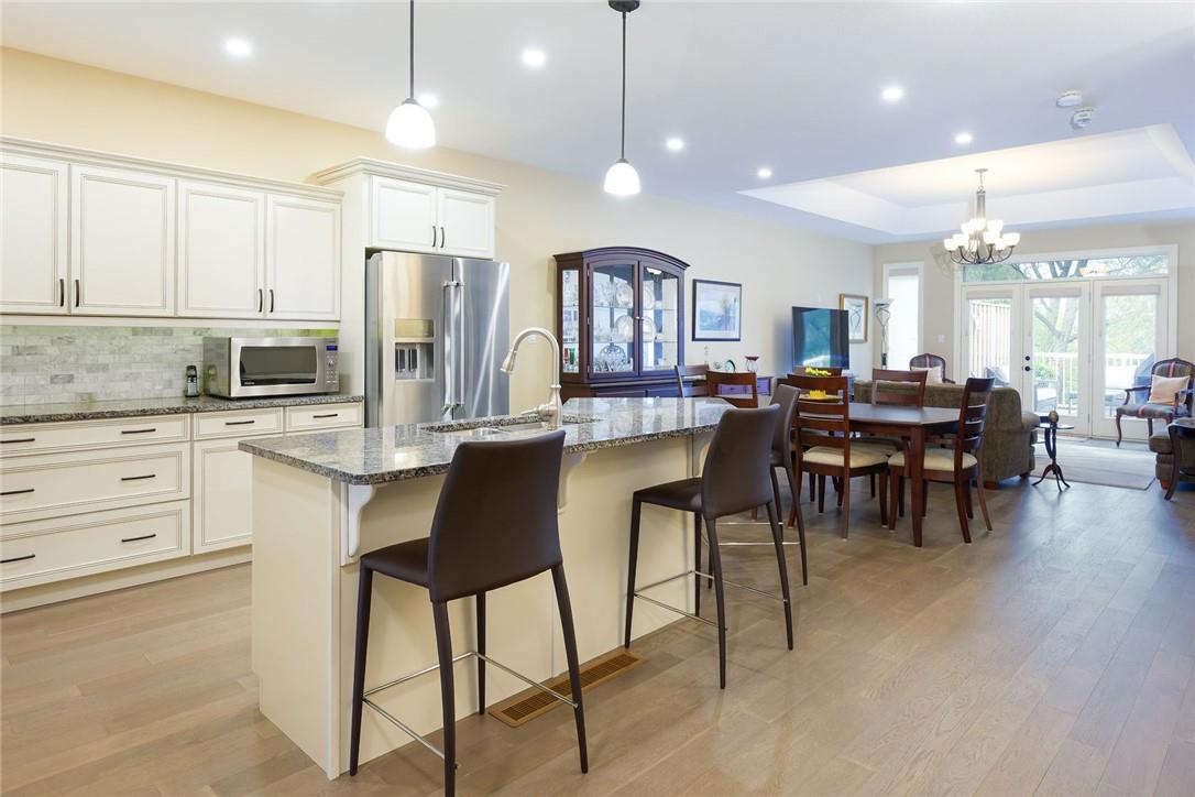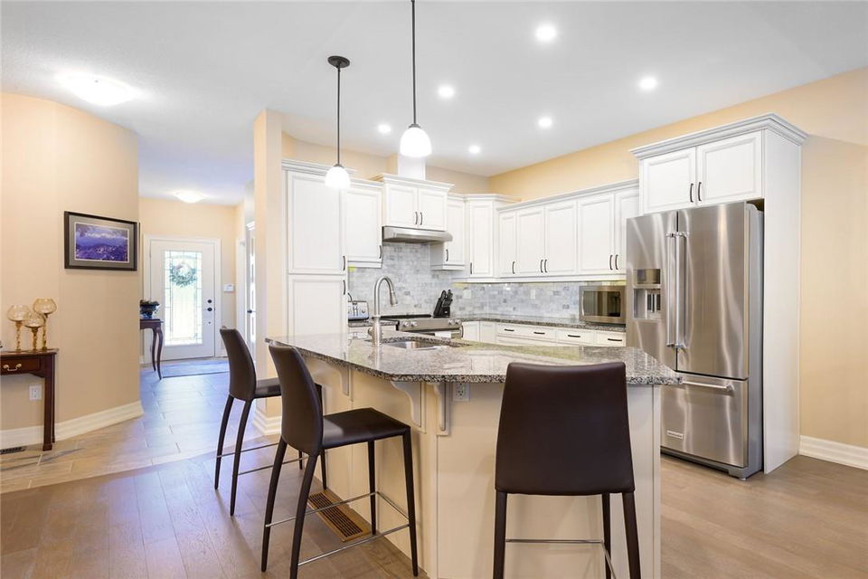 STUNNING Executive Bungalow Townhome In Private Enclave Backing Onto Conservation Land!! If you’re looking for move in ready, fully upgraded, low maintenance with incredible views, look no further. Over 2900 sq ft of total interior space. Grand entry way with gorgeous tile flooring. Open concept main level features a huge chef’s kitchen with breakfast bar, granite counters, high-end stainless steel appliances, pot lights & soft close upgraded cabinetry. Bright & spacious living / dining area with engineered hardwood flooring & coffered ceiling. Walk-out to the large deck with direct gas hook up for the BBQ & expansive views of the lush surroundings. Main floor primary suite with double closets & 5 pc ensuite bath including double sinks, granite counters, glass enclosed tile shower & bathtub. A second bedroom makes the perfect home office. Main floor laundry room & powder room. Beautiful wooden staircase leads to the lower level with walk-out to your own sanctuary. Covered seating area, stone patio, manicured gardens, armour stone retaining wall & green-space. Lower level has a huge bedroom with 3 pc ensuite bathroom. Massive rec room with luxury vinyl flooring & gas fireplace. Tons of storage space including an exterior storage room with access from the backyard. Stone driveway & double garage with inside entry. Professionally landscaped. Low common element fee includes snow removal & front lawn care. Neutral designer decor. Move in ready. All you need to do is unpack! (id:17834)