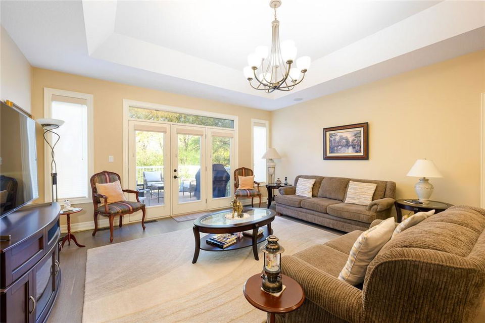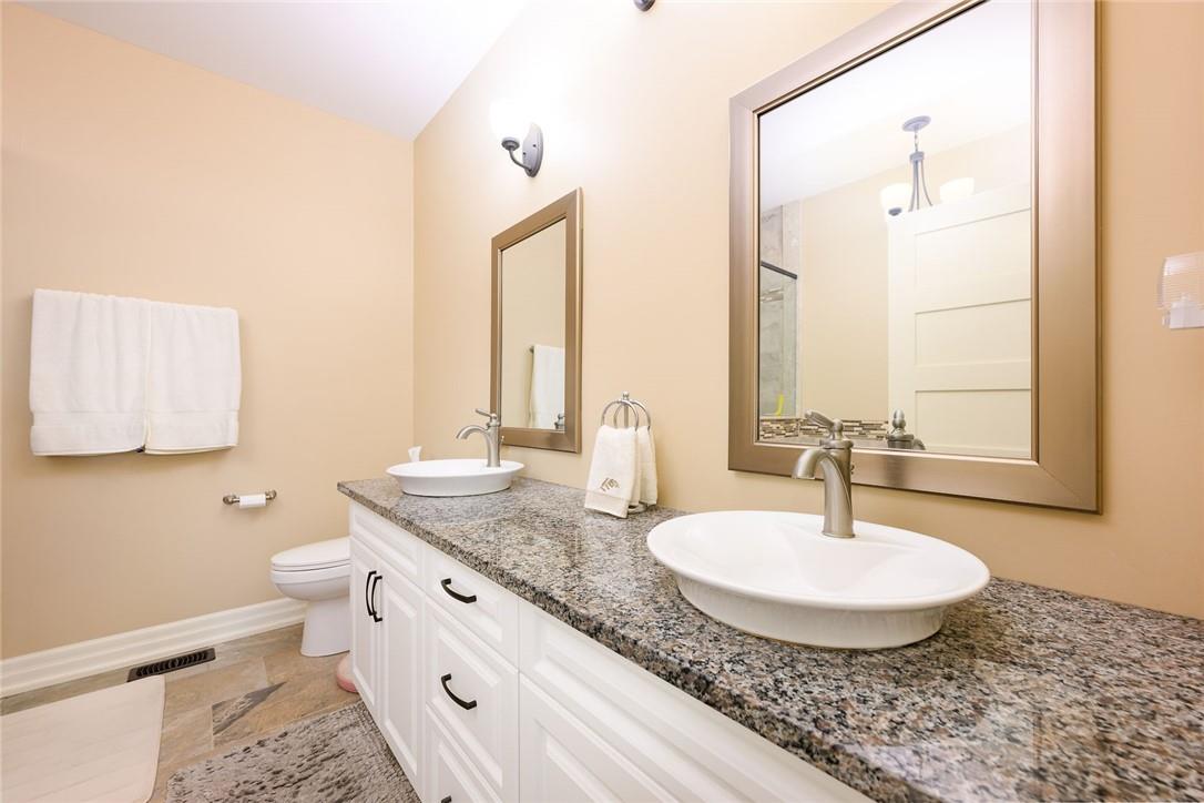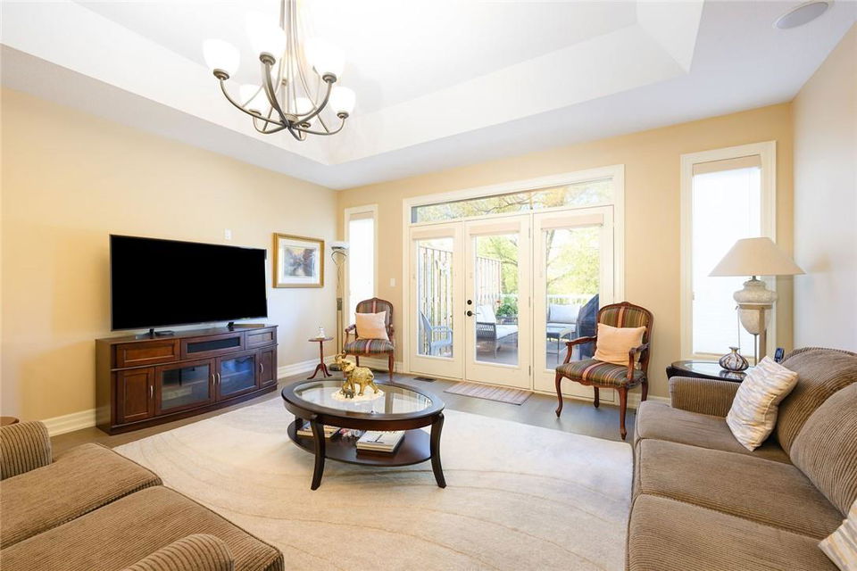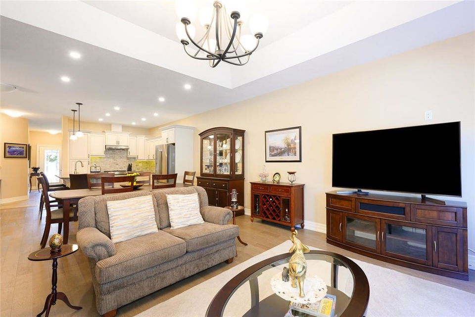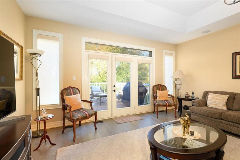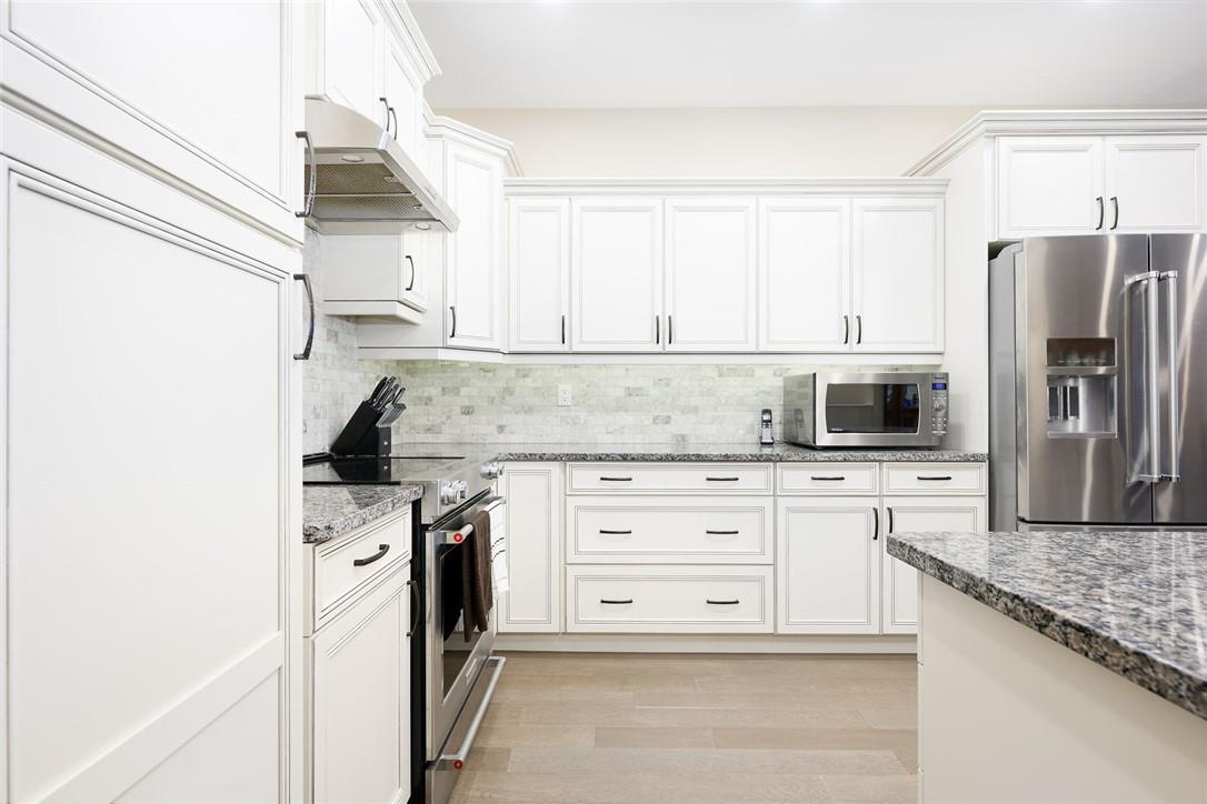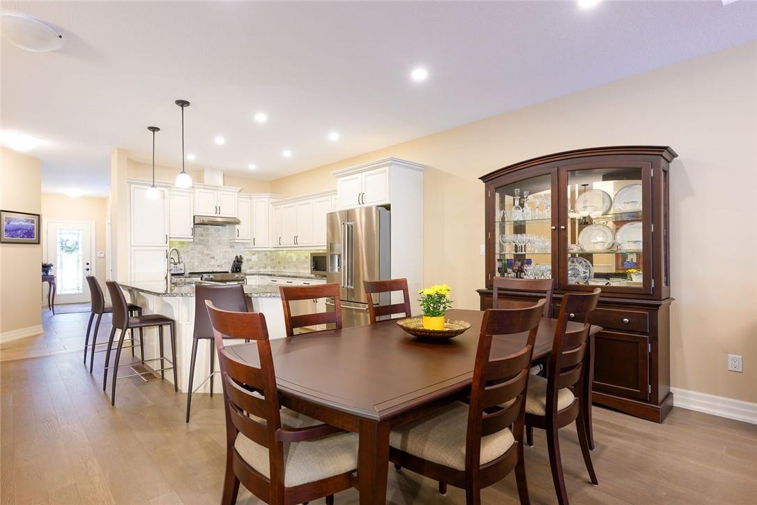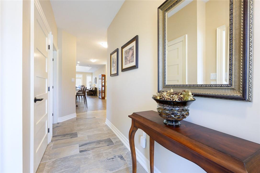 STUNNING Executive Bungalow Townhome In Private Enclave Backing Onto Conservation Land!! If you’re looking for move in ready, fully upgraded, low maintenance with incredible views, look no further. Over 2900 sq ft of total interior space. Grand entry way with gorgeous tile flooring. Open concept main level features a huge chef’s kitchen with breakfast bar, granite counters, high-end stainless steel appliances, pot lights & soft close upgraded cabinetry. Bright & spacious living / dining area with engineered hardwood flooring & coffered ceiling. Walk-out to the large deck with direct gas hook up for the BBQ & expansive views of the lush surroundings. Main floor primary suite with double closets & 5 pc ensuite bath including double sinks, granite counters, glass enclosed tile shower & bathtub. A second bedroom makes the perfect home office. Main floor laundry room & powder room. Beautiful wooden staircase leads to the lower level with walk-out to your own sanctuary. Covered seating area, stone patio, manicured gardens, armour stone retaining wall & green-space. Lower level has a huge bedroom with 3 pc ensuite bathroom. Massive rec room with luxury vinyl flooring & gas fireplace. Tons of storage space including an exterior storage room with access from the backyard. Stone driveway & double garage with inside entry. Professionally landscaped. Low common element fee includes snow removal & front lawn care. Neutral designer decor. Move in ready. All you need to do is unpack! (id:17834)