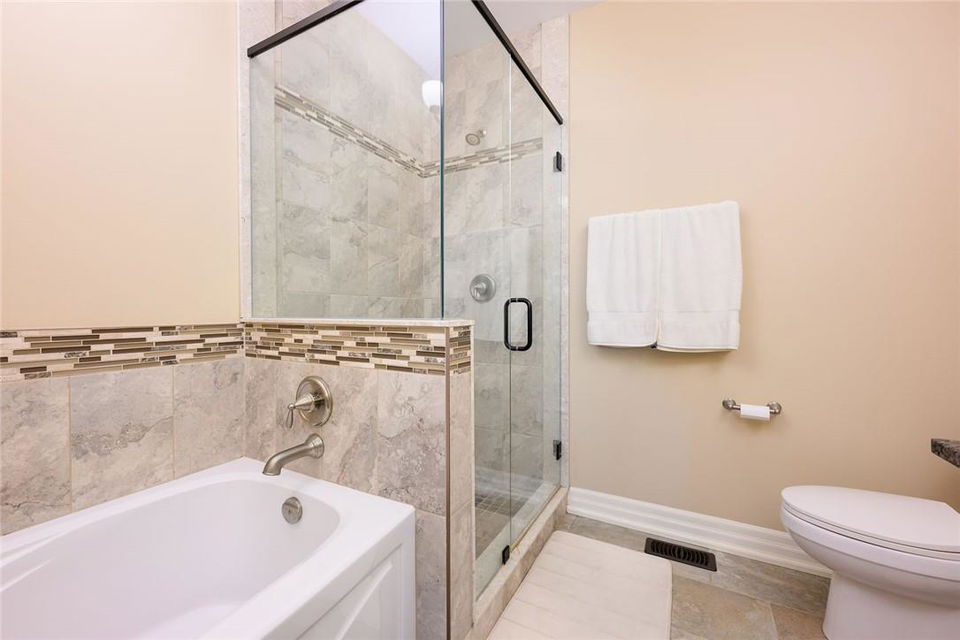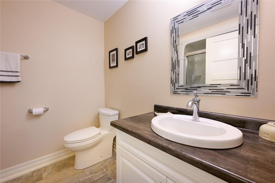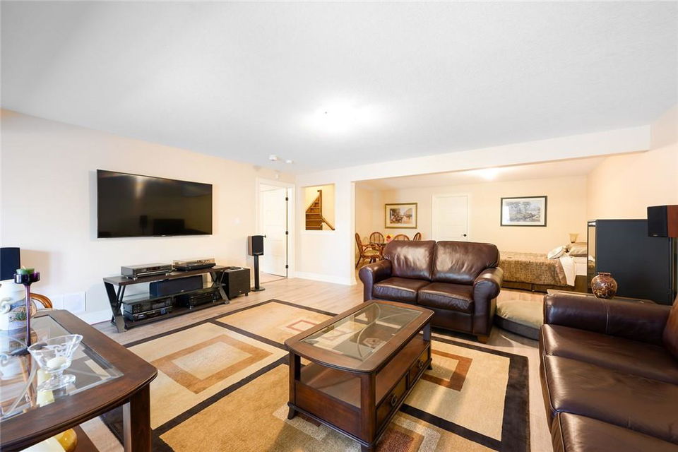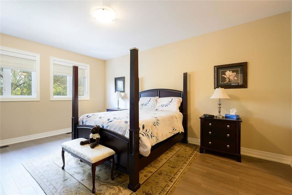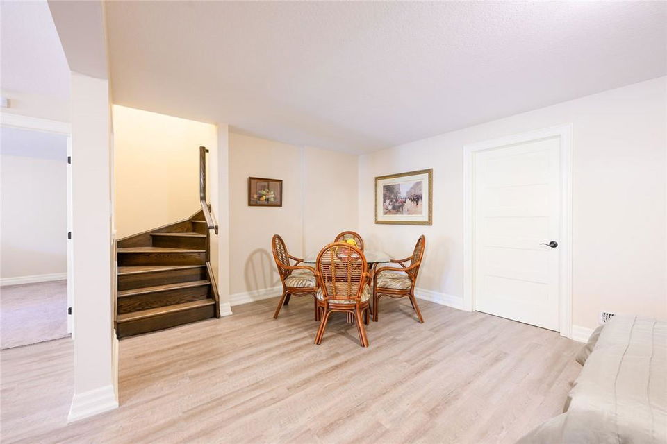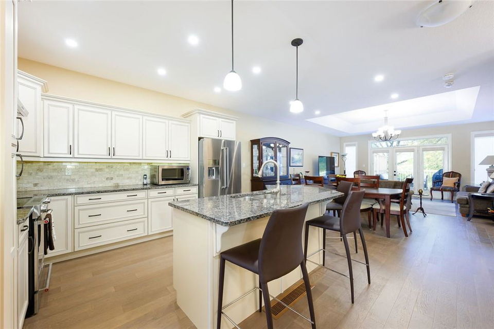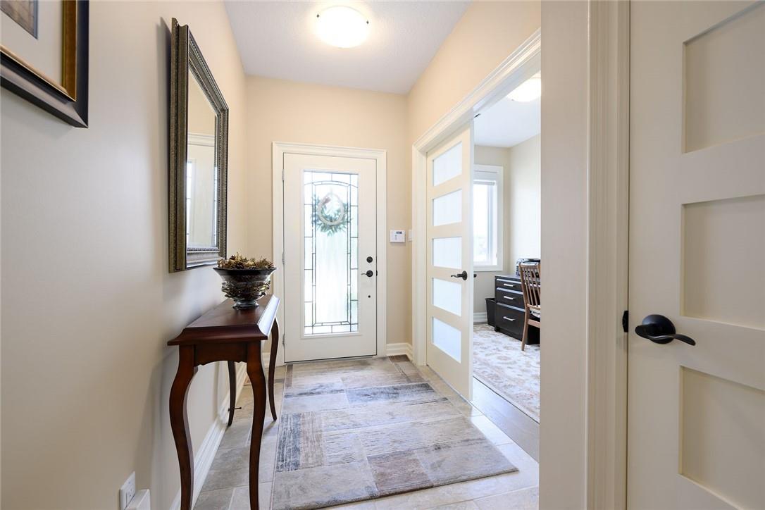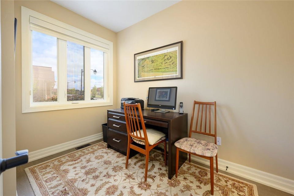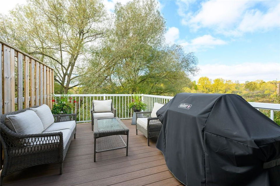 STUNNING Executive Bungalow Townhome In Private Enclave Backing Onto Conservation Land!! If you’re looking for move in ready, fully upgraded, low maintenance with incredible views, look no further. Over 2900 sq ft of total interior space. Grand entry way with gorgeous tile flooring. Open concept main level features a huge chef’s kitchen with breakfast bar, granite counters, high-end stainless steel appliances, pot lights & soft close upgraded cabinetry. Bright & spacious living / dining area with engineered hardwood flooring & coffered ceiling. Walk-out to the large deck with direct gas hook up for the BBQ & expansive views of the lush surroundings. Main floor primary suite with double closets & 5 pc ensuite bath including double sinks, granite counters, glass enclosed tile shower & bathtub. A second bedroom makes the perfect home office. Main floor laundry room & powder room. Beautiful wooden staircase leads to the lower level with walk-out to your own sanctuary. Covered seating area, stone patio, manicured gardens, armour stone retaining wall & green-space. Lower level has a huge bedroom with 3 pc ensuite bathroom. Massive rec room with luxury vinyl flooring & gas fireplace. Tons of storage space including an exterior storage room with access from the backyard. Stone driveway & double garage with inside entry. Professionally landscaped. Low common element fee includes snow removal & front lawn care. Neutral designer decor. Move in ready. All you need to do is unpack! (id:17834)