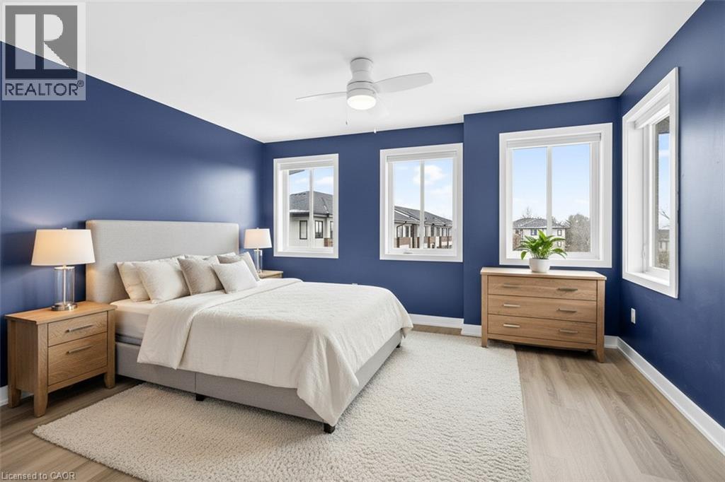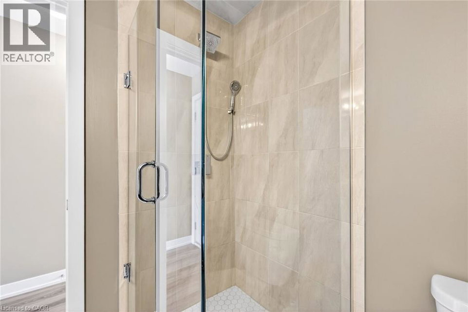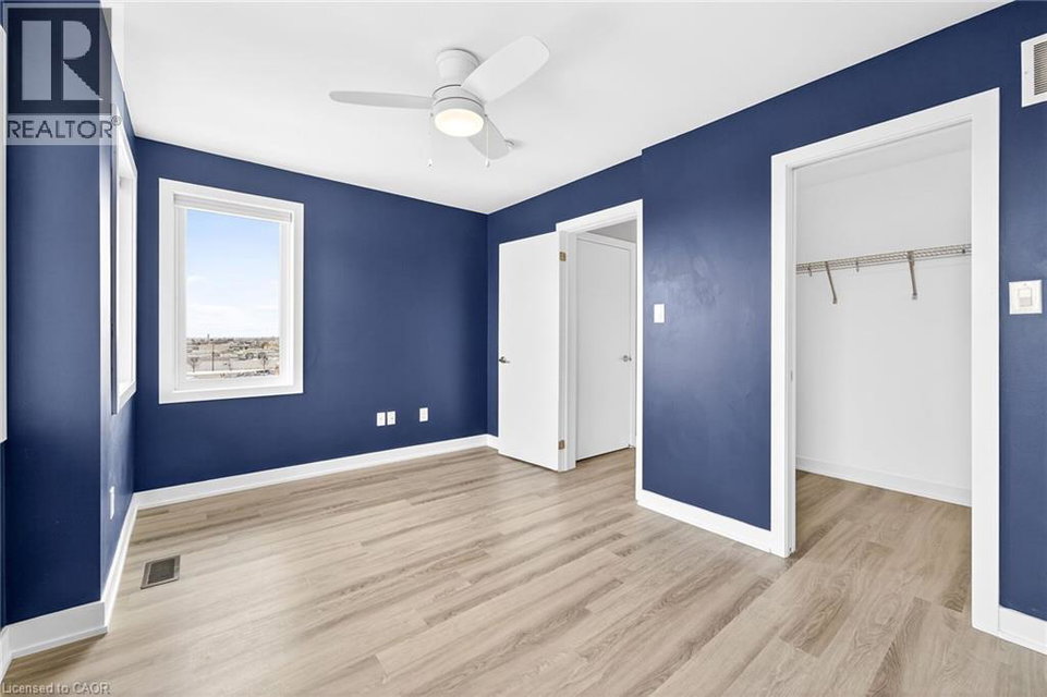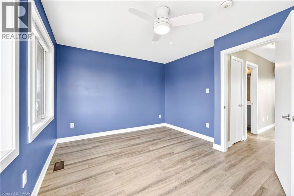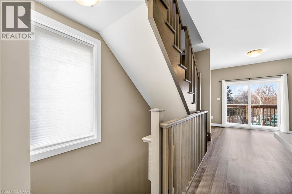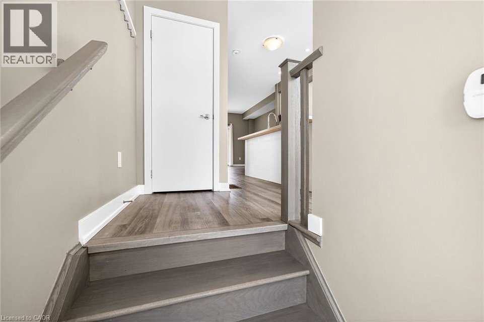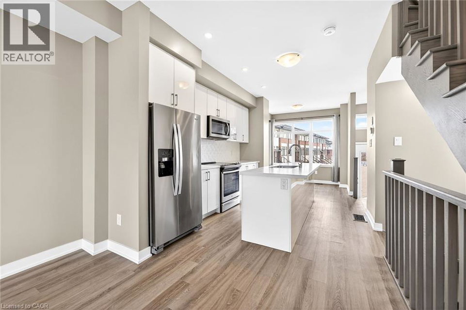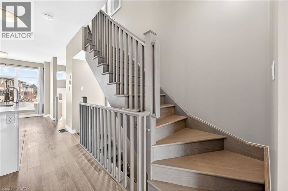 Modern 3-storey end-unit townhouse in most desirable Ancaster neighbourhood. Located minutes to Hwy 403, shopping, public transit and all amenities. This bright, carpet-free home features 3 bedrooms, 2 full bathrooms, primary bedroom with walk-in closet, and bedroom level laundry. Gourmet kitchen with quartz countertops, eat-in area, breakfast-bar island and stainless steel appliances. Spacious living area with gas fireplace, and walk out to your private balcony. Lower level offers amazing flexibility as a 3rd bedroom with 3 pc bathroom, or a cozy family room, home gym or a private office space. Walk out from the lower level to the large, fenced, private yard. Enjoy 9′ ceilings on the main level. Attached garage with storage area and inside entry. Extra long driveway. Ample visitor parking. Flexible possession. Move in ready. All you need to do is unpack and enjoy! (id:17834)