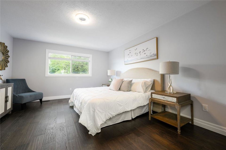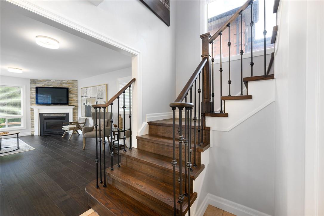 Beautifully Updated & Move in Ready!! Meticulously Maintained Family Home Featuring 3 bedrooms, 2.5 Bathrooms With Professionally Finished Basement. Located in Most Desirable South East Burlington. Close to schools, shops, restaurants & lake. Easy access to QEW, 403 & GO train. Bright & open main floor layout. Large foyer with access to the double car garage. Spacious eat-in kitchen with new granite counters, glass tile backsplash & walk out to the huge cedar deck. Kitchen overlooks the living / dining room with new hardwood flooring & gas fireplace. Stunning wood staircase with rod iron spindles leads to the upper level. Huge primary retreat with walk in closet & gorgeous ensuite bathroom with glass shower. Two additional generous sized bedrooms & 4 pc bathroom complete the 2nd floor. Lower level offers a large rec room with luxury vinyl floors, built-in shelving & pot lights. Additional room could be a 4th bedroom or office. Loads of storage space. Freshly painted throughout. Extensive list of new updates include hardwood flooring, hardwood staircase & rod iron spindles, light fixtures, bathroom fixtures, granite counter, interiors doors, hardware & trim. Other recent updates include roof, A/C, fibreglass double front door with multi point locking, cedar deck & more. Full list of updates available. All you need to do is unpack! (id:17834)
