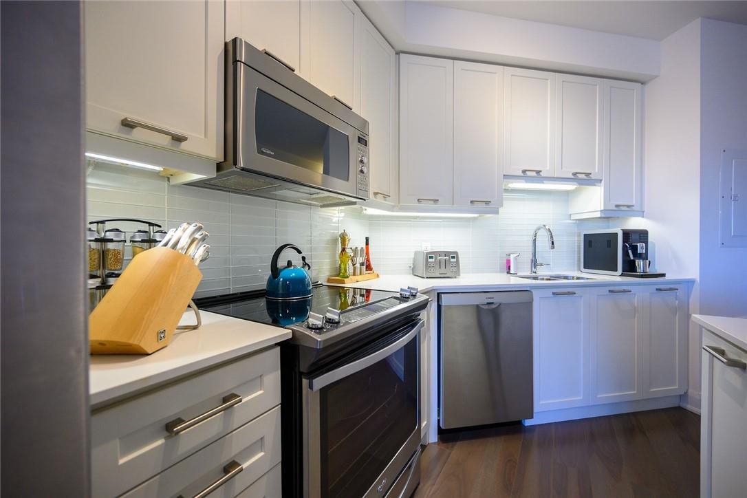 !!SHOW STOPPER!! Absolutely Stunning One Bedroom Suite Located in Most Desirable Oakville Neighbourhood. Bright & Open with Engineered Hardwood Throughout. Upgraded Kitchen with White Cabinets, Quartz Counters, Under Cabinet Lighting, Breakfast Bar & High End Appliances. Living Room with Gorgeous Views & Walk Out to Private Balcony. Master Suite with Wall to Wall Mirrored Closet. Beautiful 4 Pc Bath with Quartz Counters & Custom Vanity. Gorgeous Upgraded Lighting. Underground Parking & Locker. Resort Like Amenities in Exceptionally Maintained Building With Security Guard, Indoor Pool, Hot Tub, Sauna, Gym, Media & Games Room, Guest Suite, Party Room, Outdoor Patio. Walk to Shops & Restaurants. Close to Oakville Hospital & Major Highways. Custom Furniture is Negotiable. Pets Permitted. (id:17834)