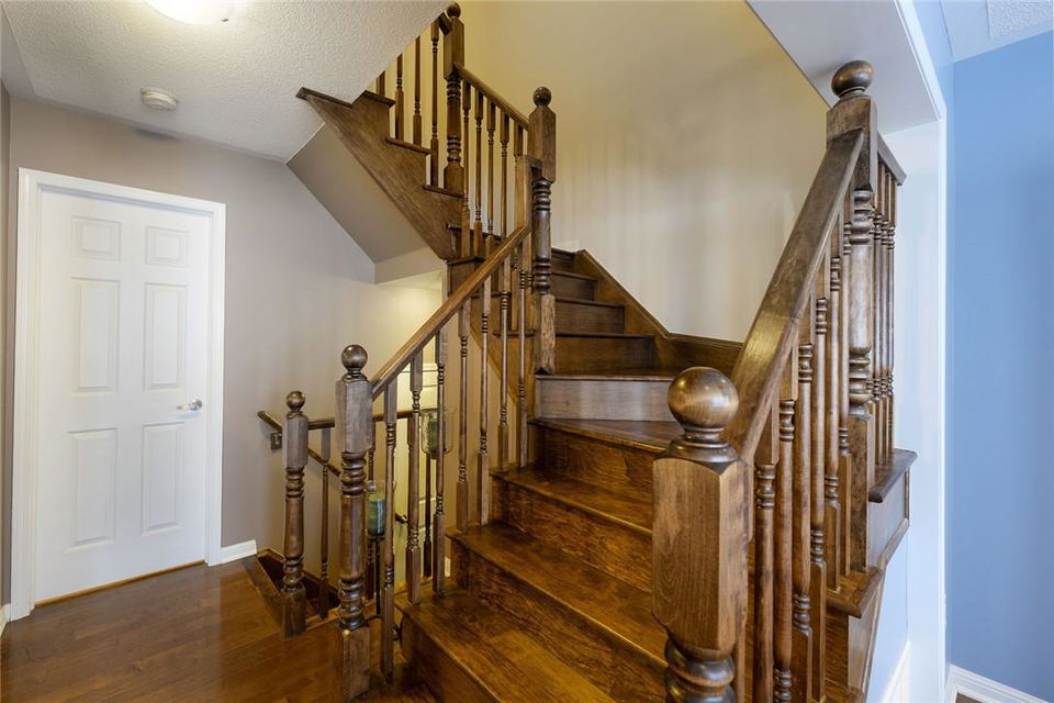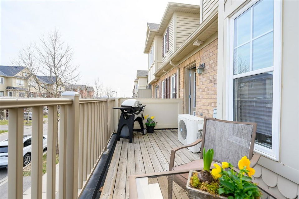 This is THE ONE!! Stunning 2 bedroom, 2.5 bathroom freehold townhome with built-in garage. Open concept layout. Huge kitchen with loads of storage and breakfast bar. Spacious living and dining area with a walkout to the largest terrace available on any unit. Perfect for the BBQ, a patio set and soaking up the sun. Upgraded hardwood flooring and hardwood staircase. Main floor laundry and powder room. Entry way has ample space for a home office or workout area. Upstairs boasts 2 large bedrooms and 2 full bathrooms including the master retreat with walk-in closet and 3 pc ensuite. Aggregate stone walkway. Neutral designer decor. Highly coveted family friendly neighbourhood. Close to all amenities, highways, schools and parks. (id:17834)