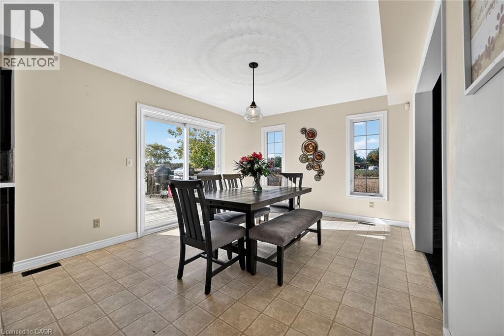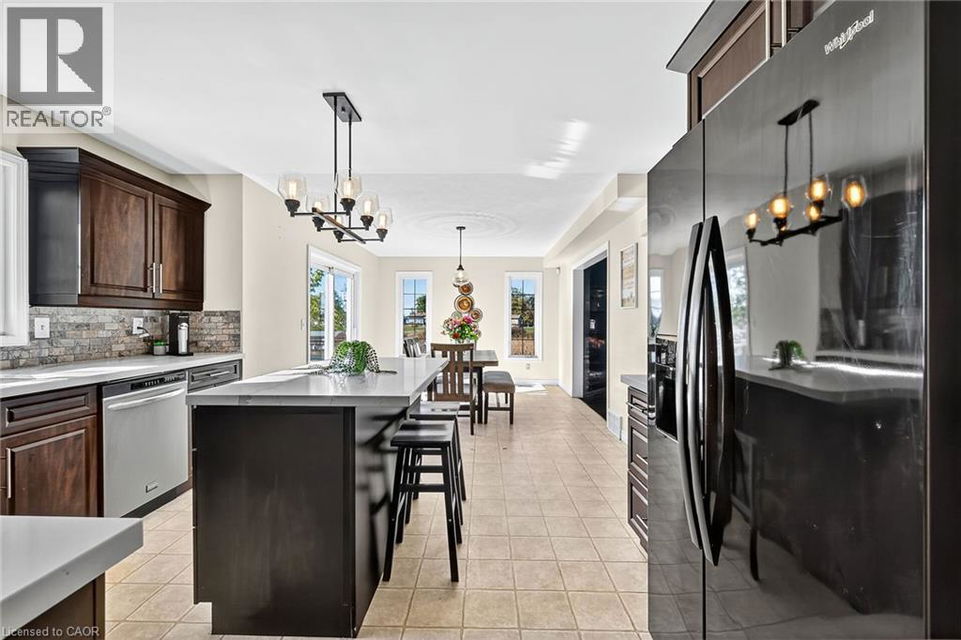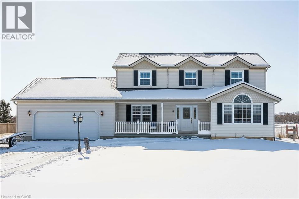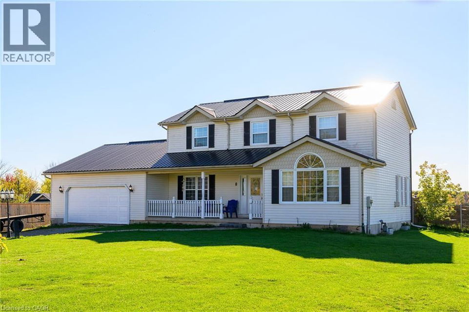 This STUNNING 4-bedroom, 2.5-bath, 2-storey home is situated on a sought-after 1.07 acre country lot, offering over 2,190 sq. ft. of beautifully finished living space. Set back from the road, the home’s curb appeal impresses with a welcoming covered porch, premium vinyl siding, steel roof, and an entertainer’s dream backyard complete with a two-tiered deck, hot tub area, bar, and fire-pit, perfect for relaxing or hosting family and friends. Inside, the functional layout features a gourmet eat-in kitchen with quartz countertops, stone backsplash, island, and pantry drawers. The bright and open dining area features patio doors to the gorgeous fully fenced rear yard. The spacious family room offers a gas fireplace with stone hearth and vaulted ceiling, while the separate living room could be an ideal playroom or executive home office. Convenient main floor laundry and mudroom with garage access and a 2-pc bath complete this level. Upstairs, you’ll find 4 generous bedrooms, all with hardwood floors, including a primary suite with walk-in closet and 4-pc ensuite. The full basement offers unlimited potential to expand your living space further. Major updates include the furnace & A/C, steel roof, the kitchen, powder room, fully fenced backyard and a cistern with bypass and UV/filter system. Oversized and heated 2+ car garage and large driveway offering ample parking for your cars and recreational vehicles! Enjoy peaceful country living with convenient access to Cayuga, Binbrook, and just 25 minutes to Hamilton with highway access to the 403, QEW, and GTA. Just move in and enjoy! (id:17834)