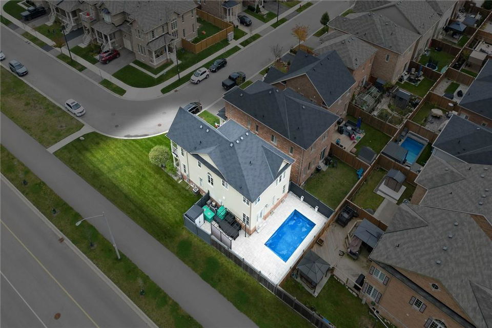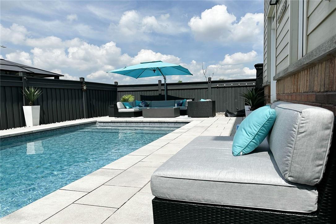 THE ONE you have been waiting for!! EXQUISITE 4-bed, 3.5 bath family home on a premium 50′ lot with an in-ground pool. Nestled at the end of a quiet crescent, just a short walk to schools, all amenities, parks & nature trails. You will be impressed from the moment you step inside this impeccable home. The 9 ft ceilings create an open & bright atmosphere. Hardwood floors grace the main & 2nd level. California shutters offer privacy & sophistication. The heart of this home is the chef’s kitchen with upgraded white cabinetry, breakfast bar, pantry, quartz counters, subway tile backsplash, valence lighting & ss appliances including gas range & pot filler. The family room with gas f/p is a cozy haven, perfect for movie nights. The living / dining room is an ideal space for entertaining. The large primary bedroom is a luxurious retreat with 5-pc ensuite including soaker tub, double sinks & glass shower. The walk-in closet offers ample storage. The 2nd level continues with 3 additional generous bedrooms, 4 pc bath & balcony; the perfect spot for enjoying a morning coffee. 2nd floor laundry. Fully finished basement with a rec room & an office, den or 5th bedroom with 3-pc bath. The fully fenced yard is the ultimate sunny oasis with heated in-ground salt water pool, maintenance free stone patio, direct hook up for the BBQ & lots of space for summer fun. In-ground sprinkler system. Garage with inside entry. Don’t miss your opportunity to make this remarkable property your own! (id:17834)